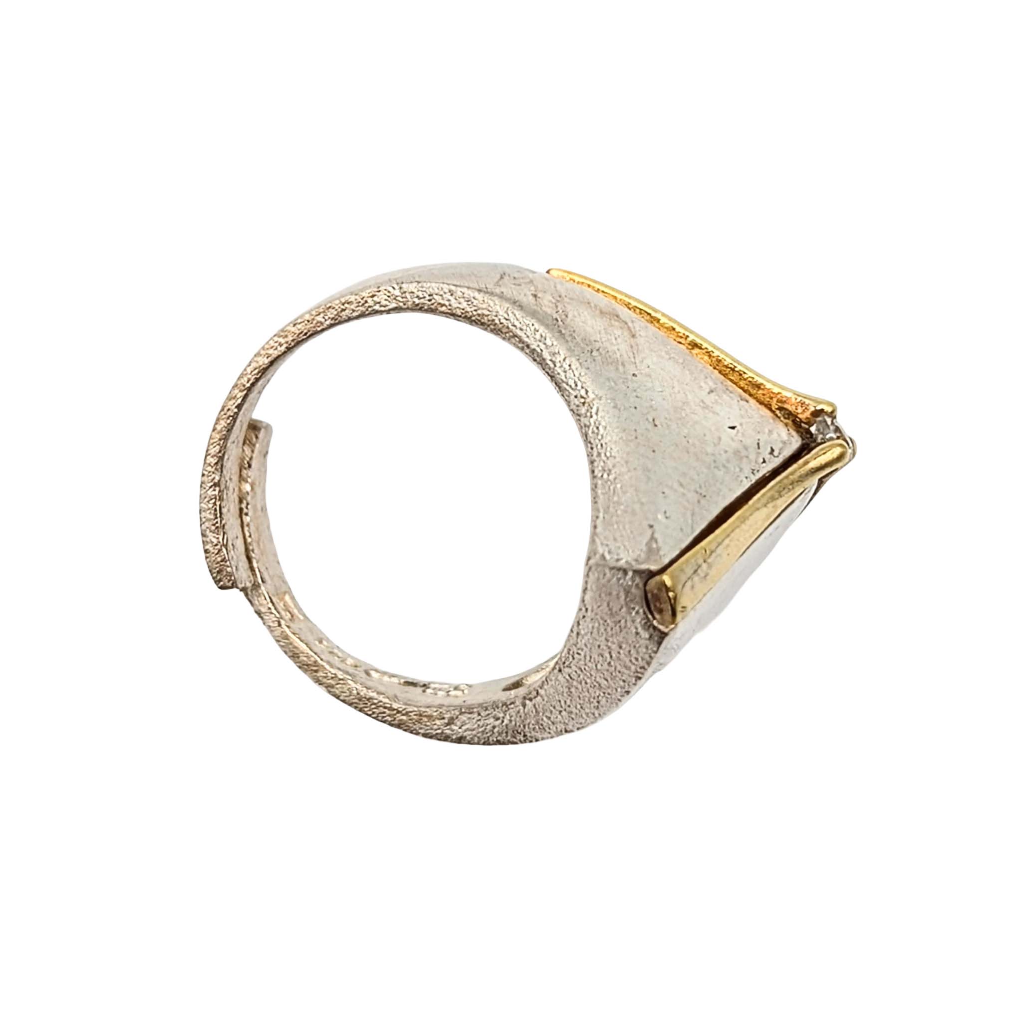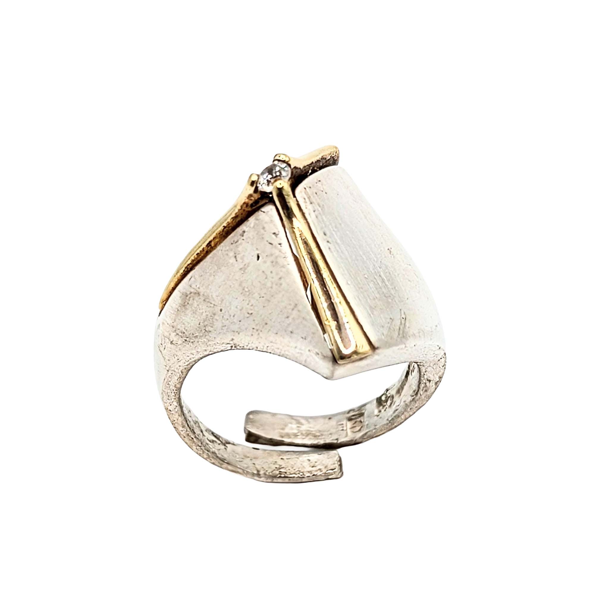 Sterling Silver Brass CZ Adjustable Ring Signed 9.2g