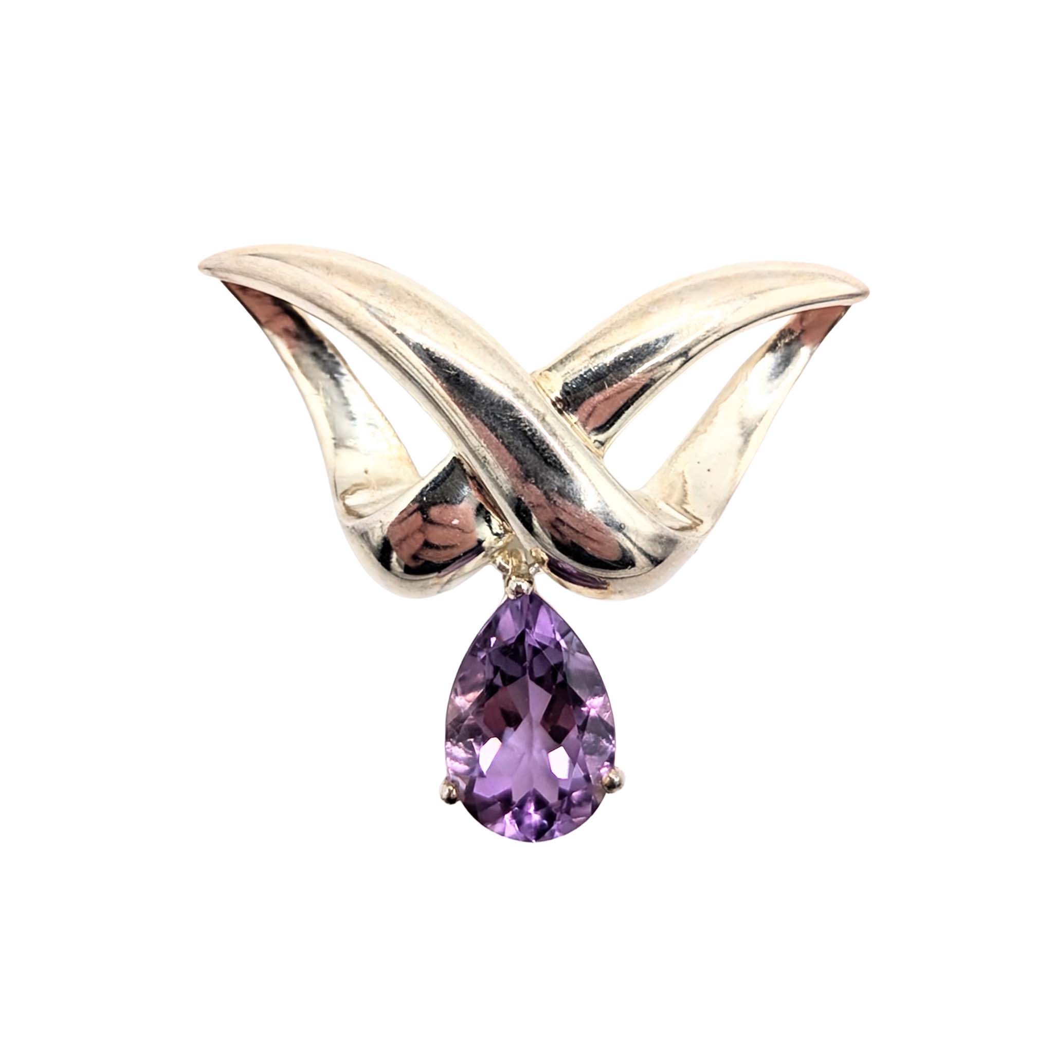 Sterling Silver Amethyst Drop Slide Pendant Signed 10g