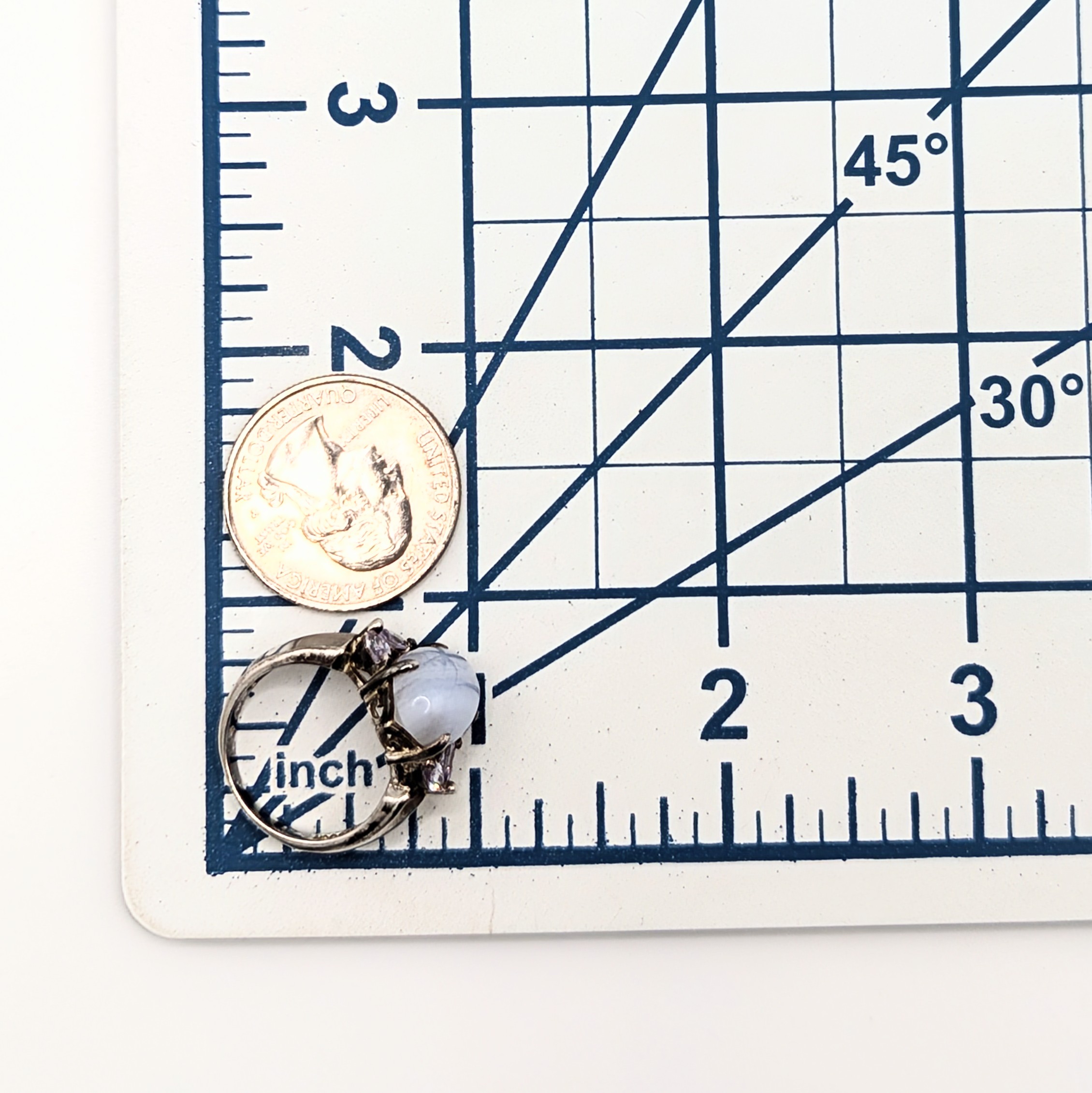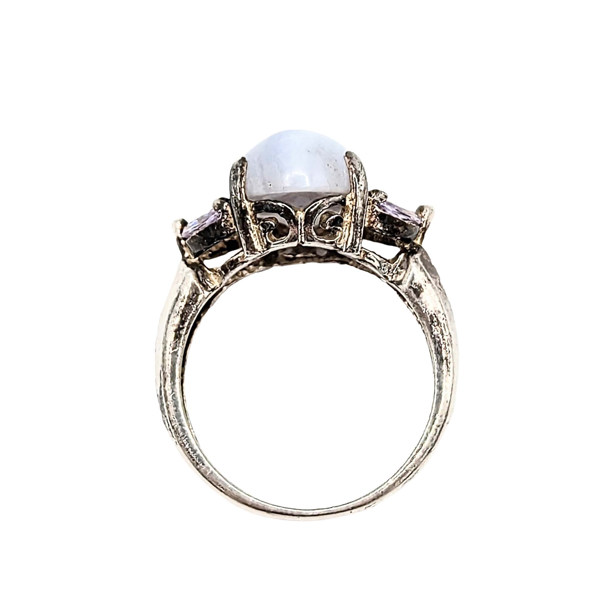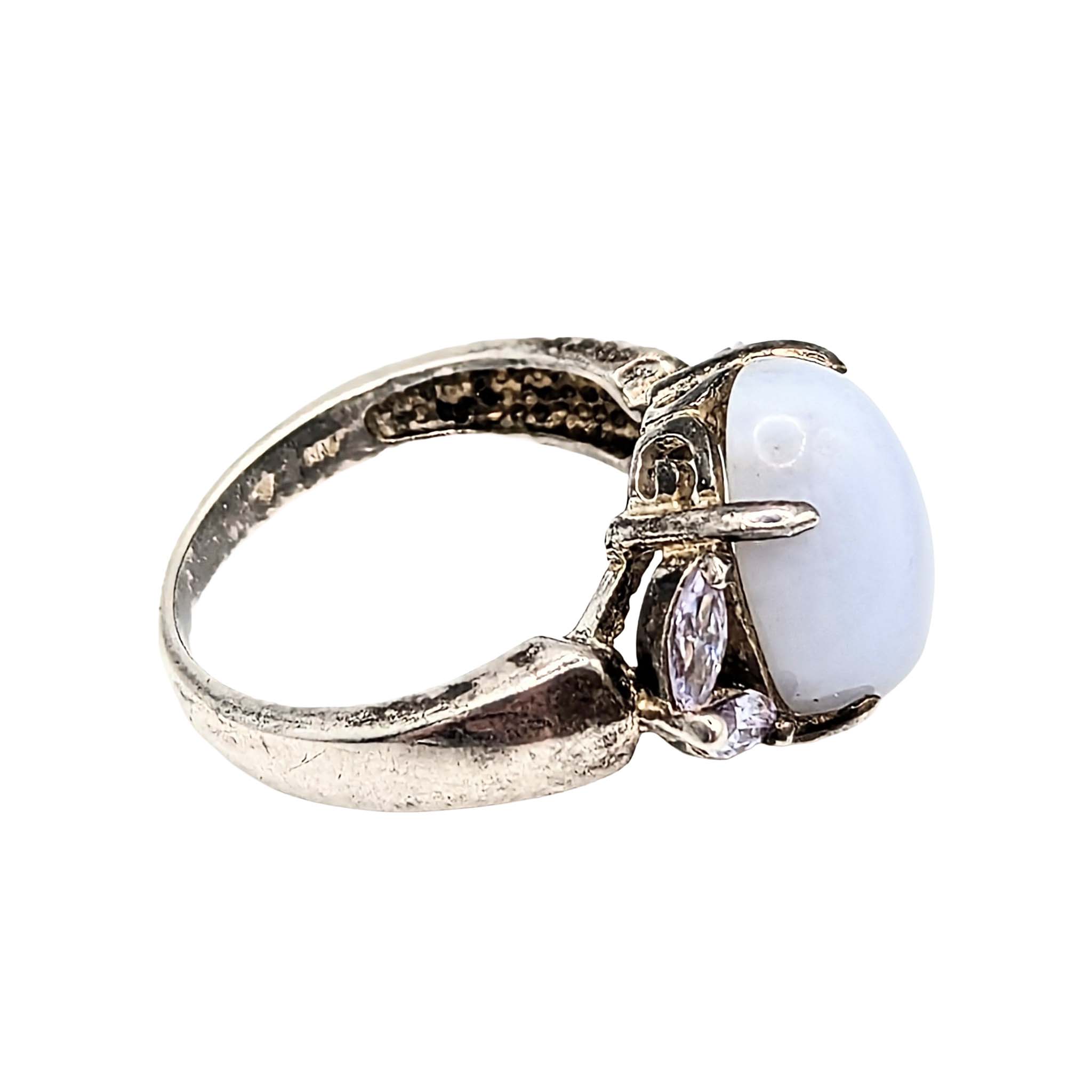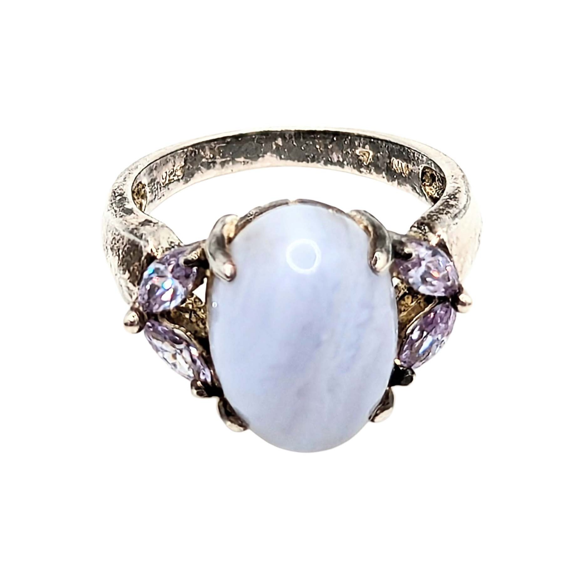 Sterling Silver Blue Lace Agate Topaz Ring Signed NV .925 Size 7 4.9g
