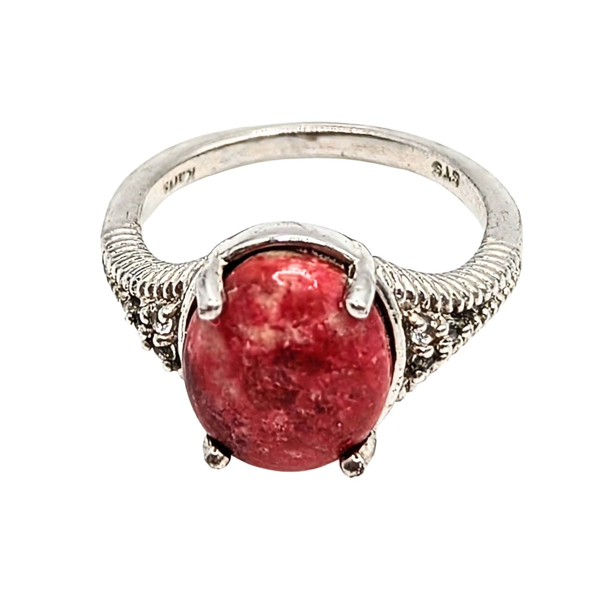 Karis Sterling Silver Coral CZ Ring Signed STS Karis .925 Size 6.75 4g