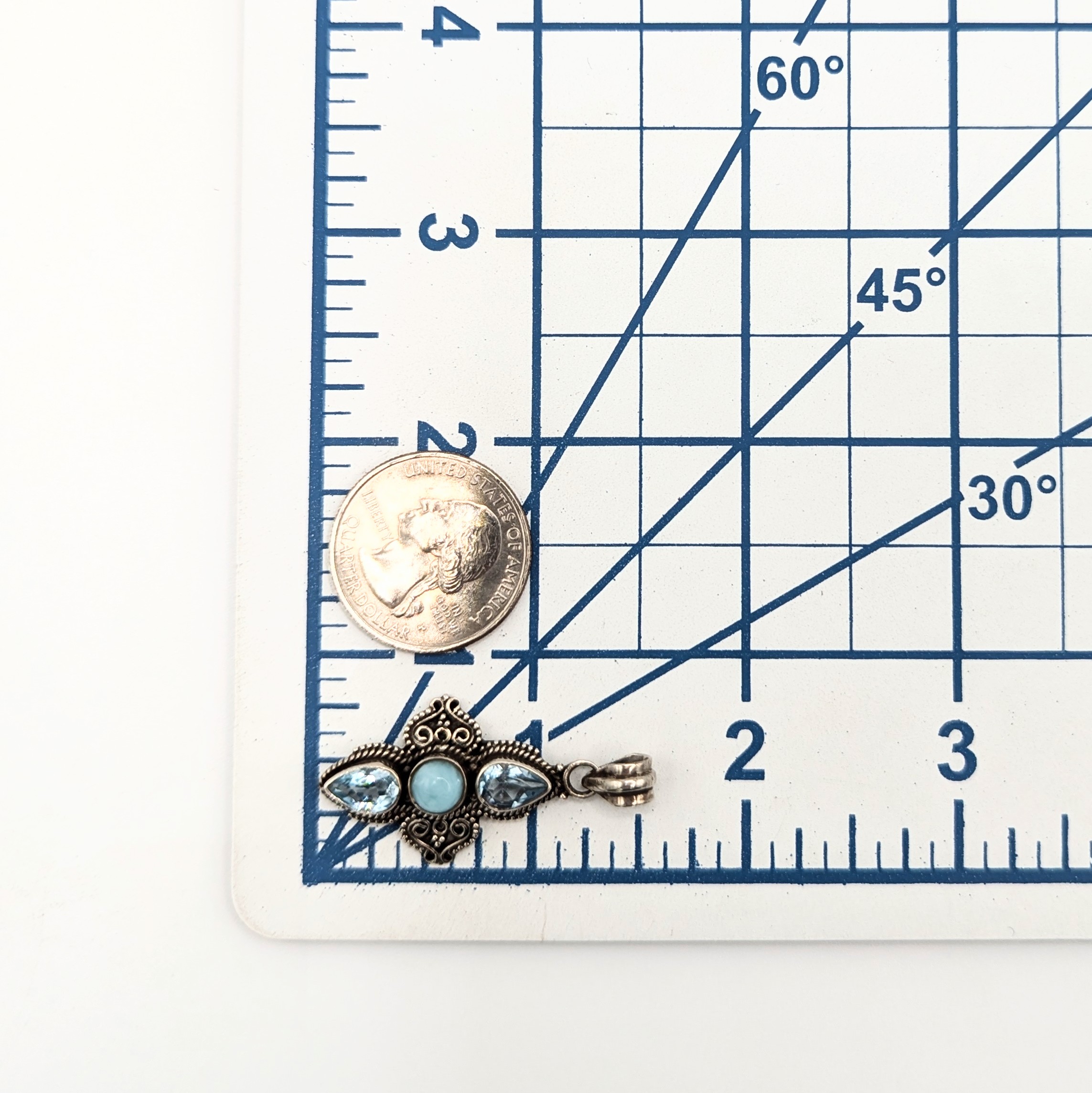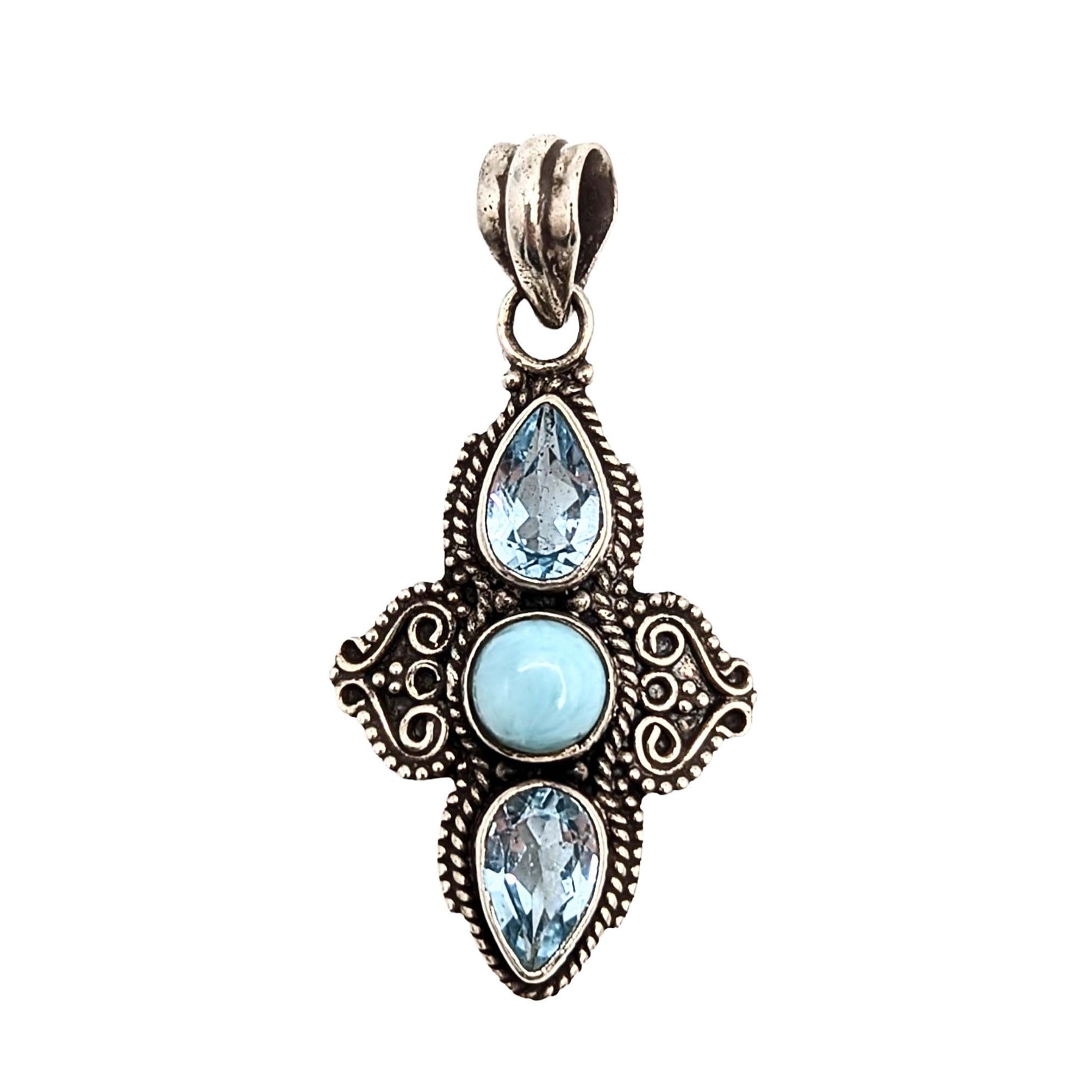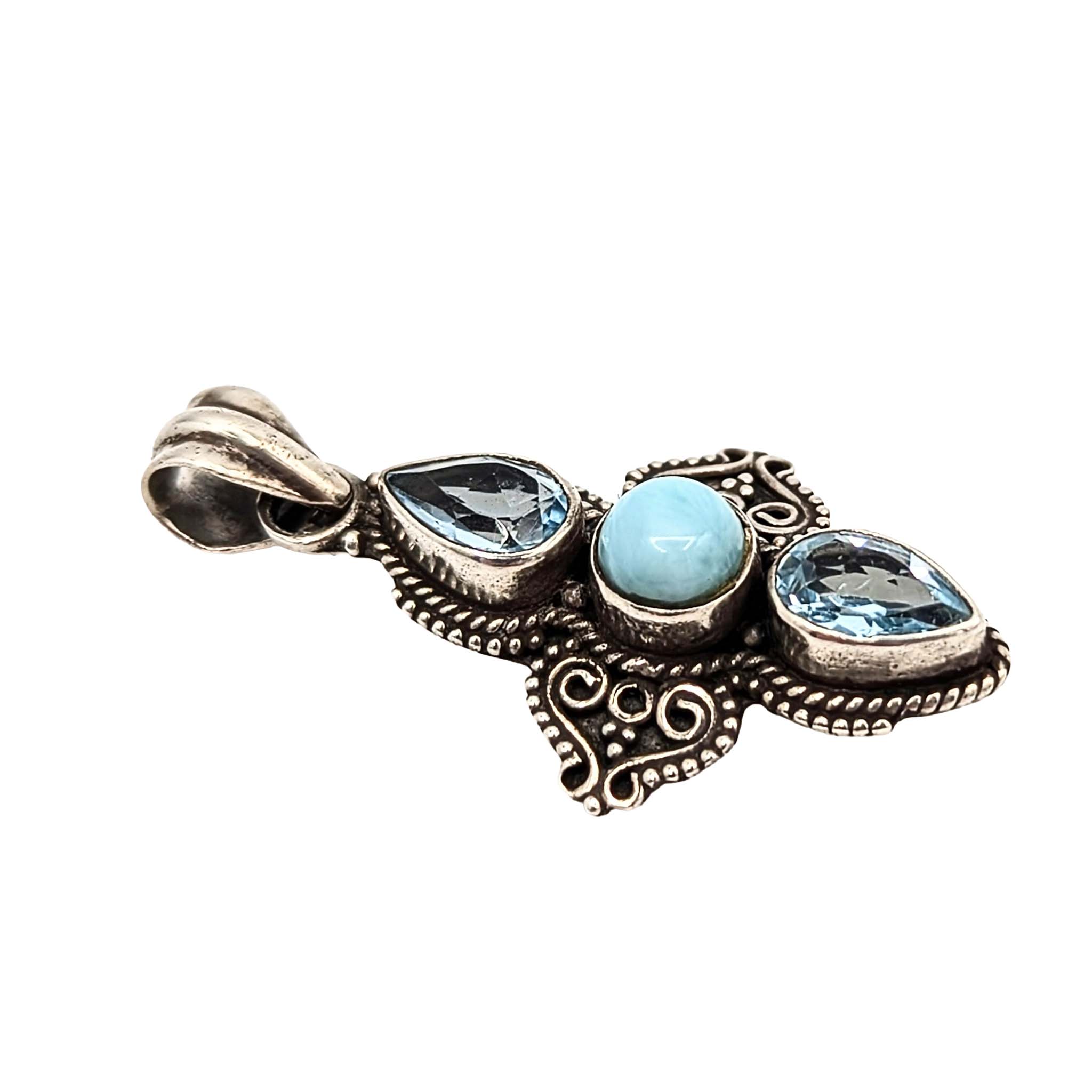 Sterling Silver Topaz Larimar Pendant Signed PTI .925 India 4.7g