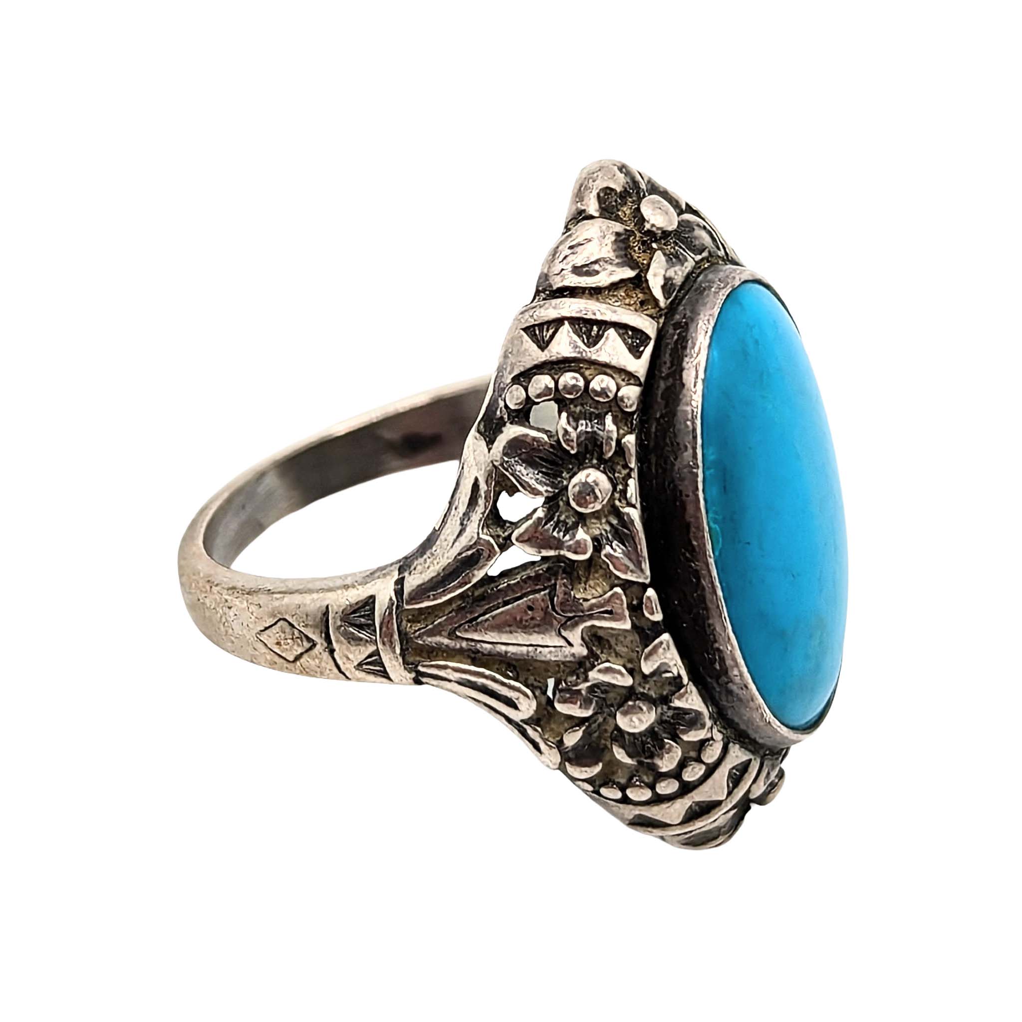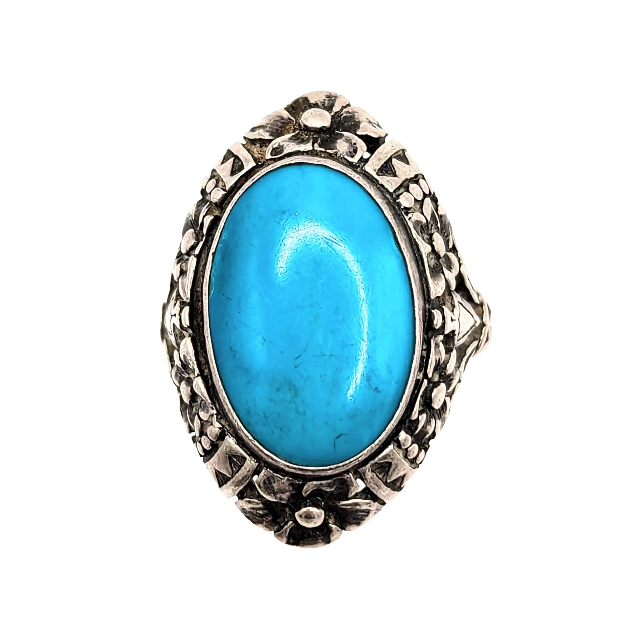 Southwestern Sterling Silver Turquoise Floral Ring Size 4.75 6.3g