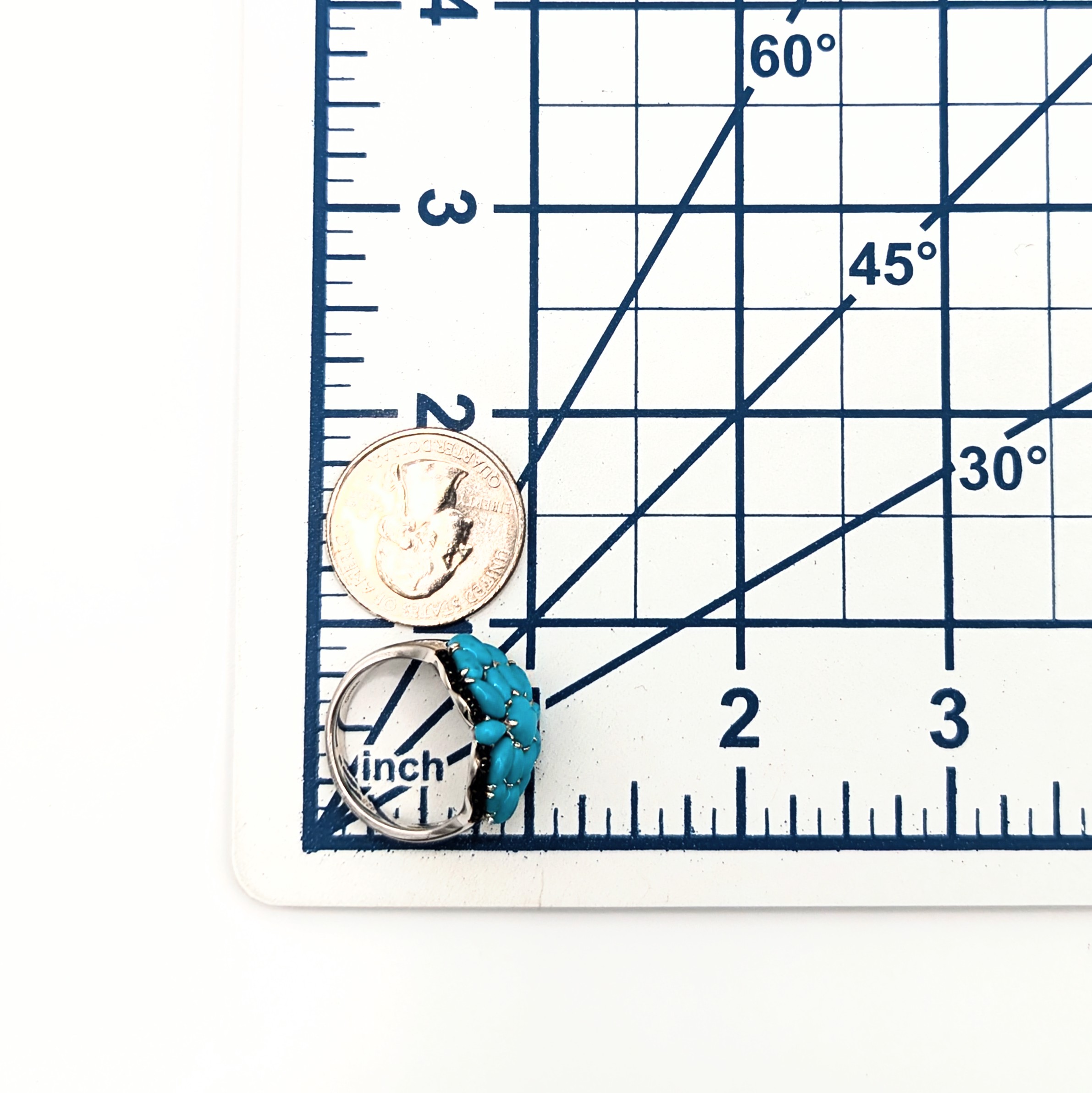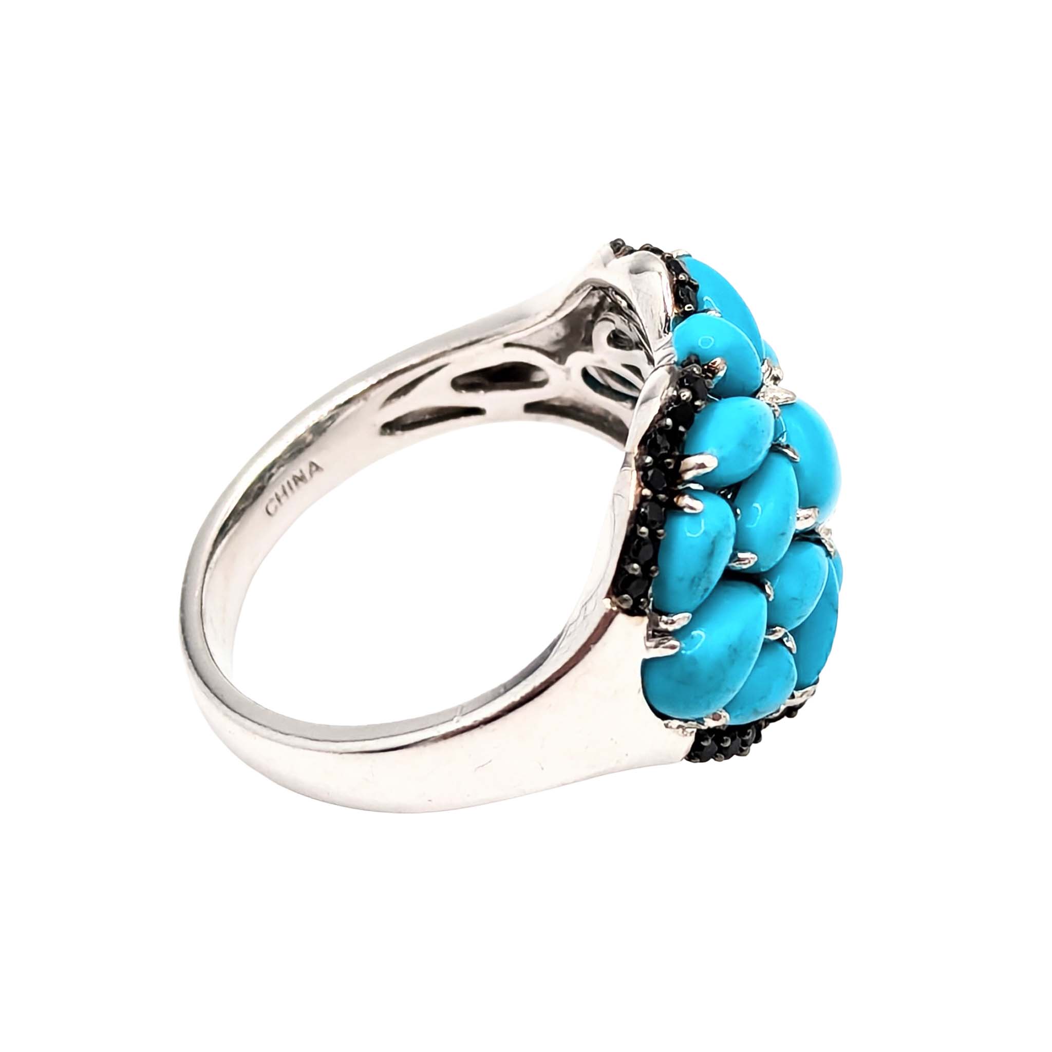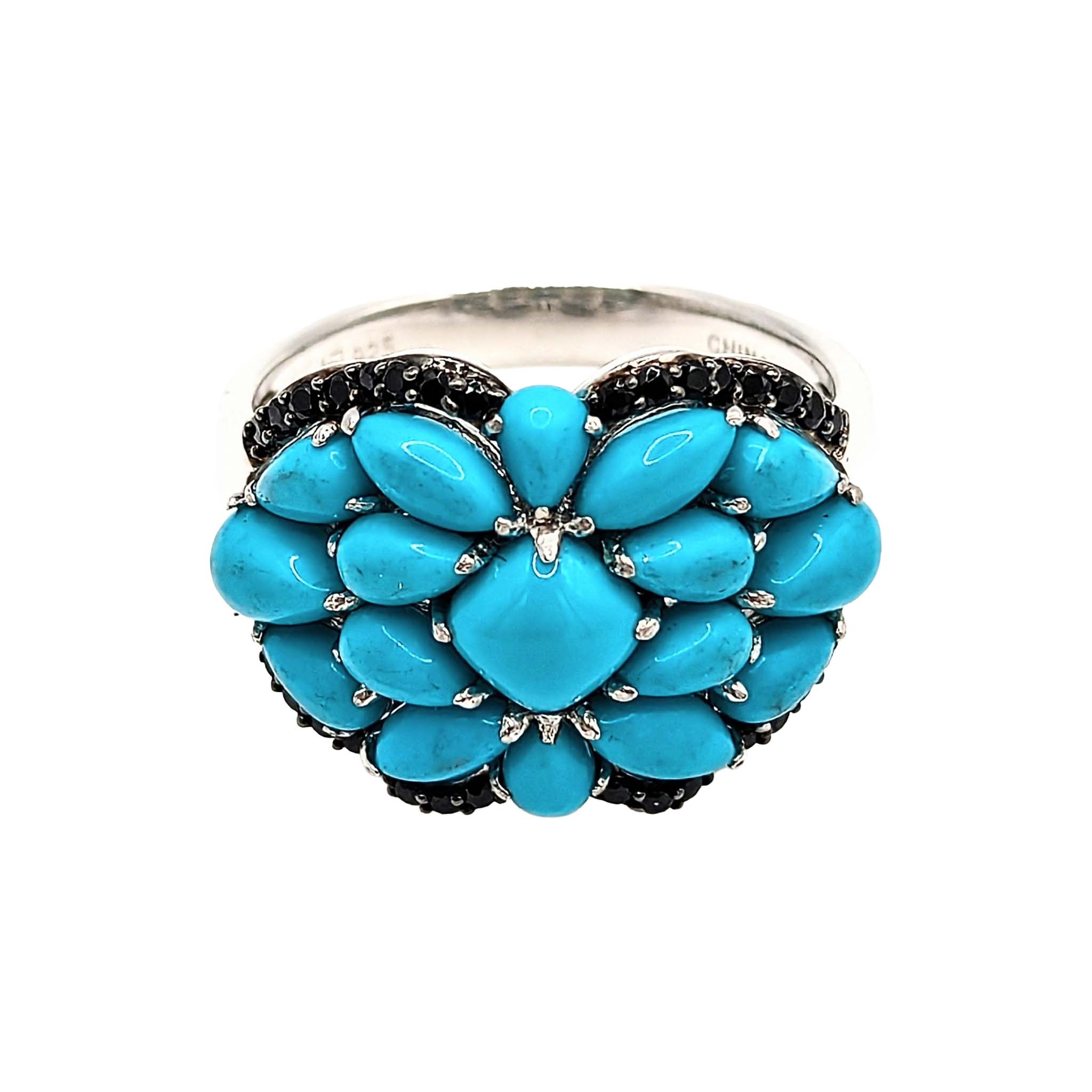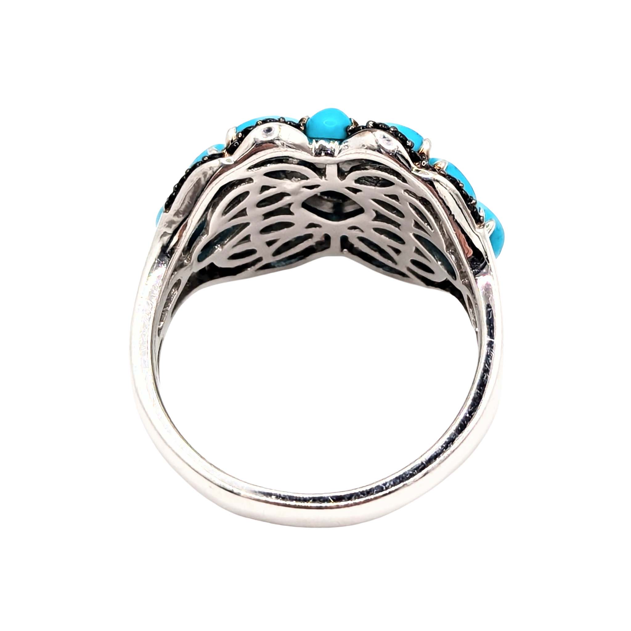 Sterling Silver Turquoise Tourmaline Cluster Ring Size 9.5 6.7g
