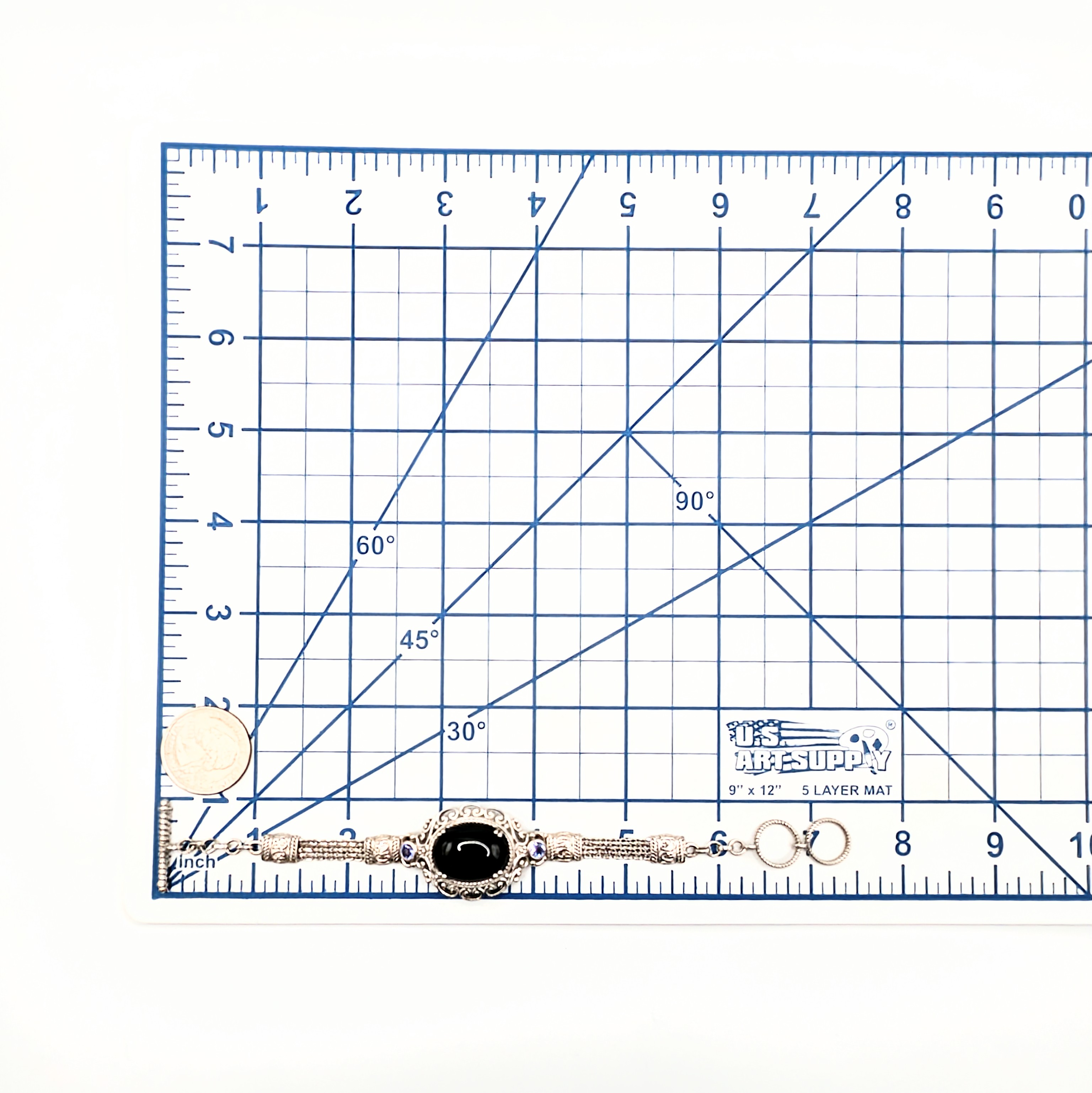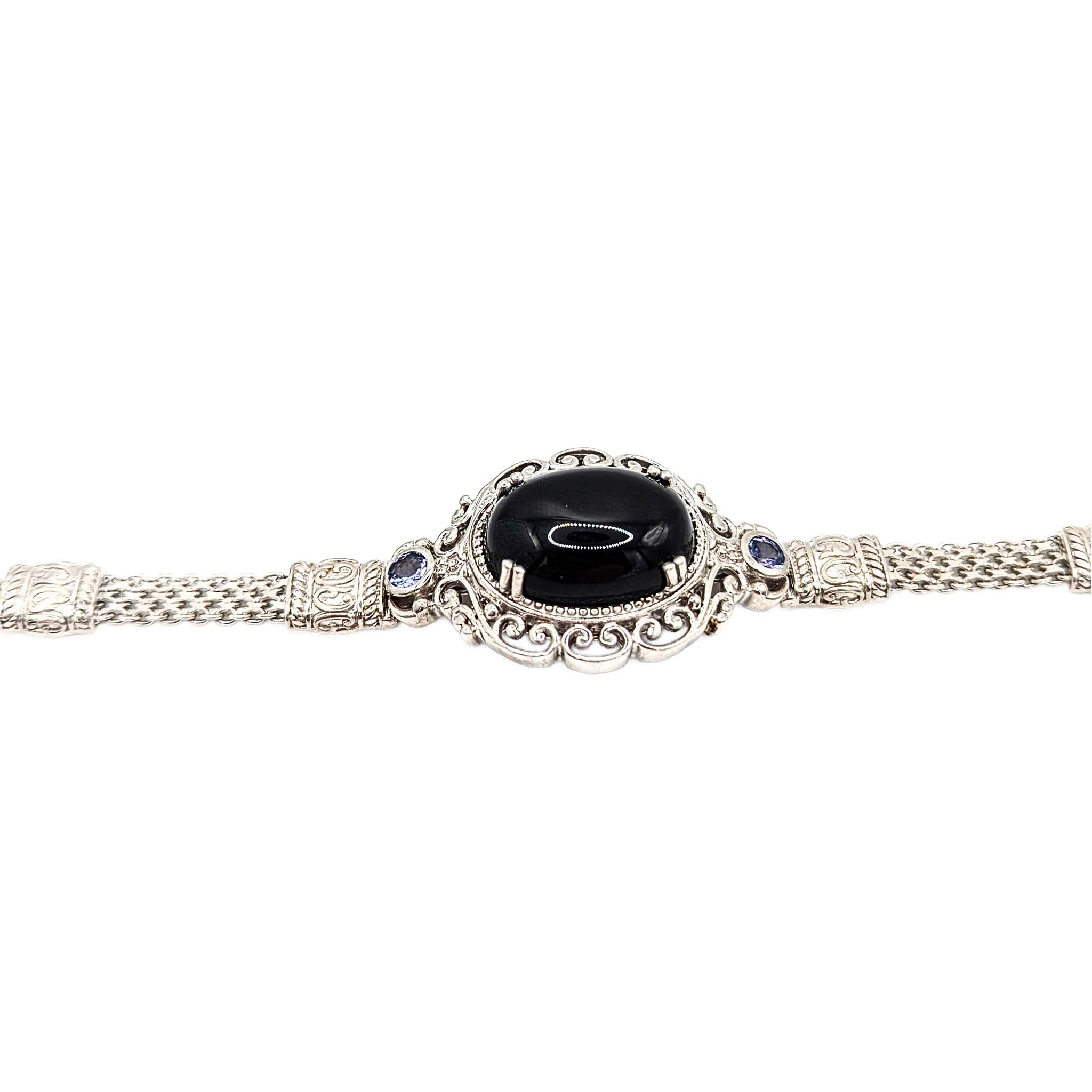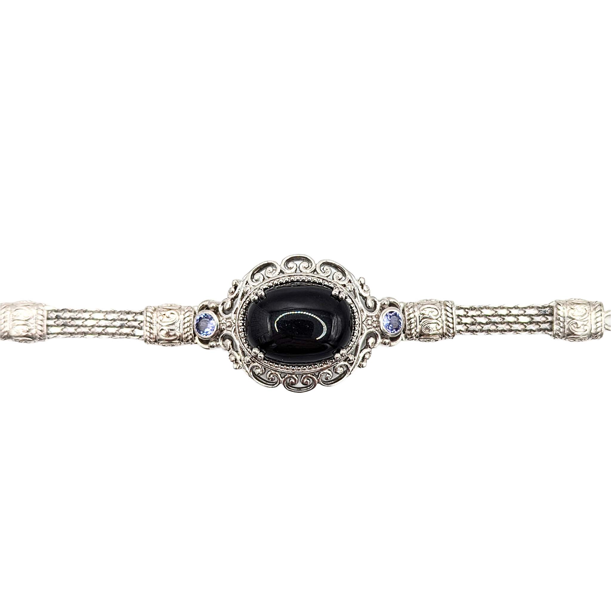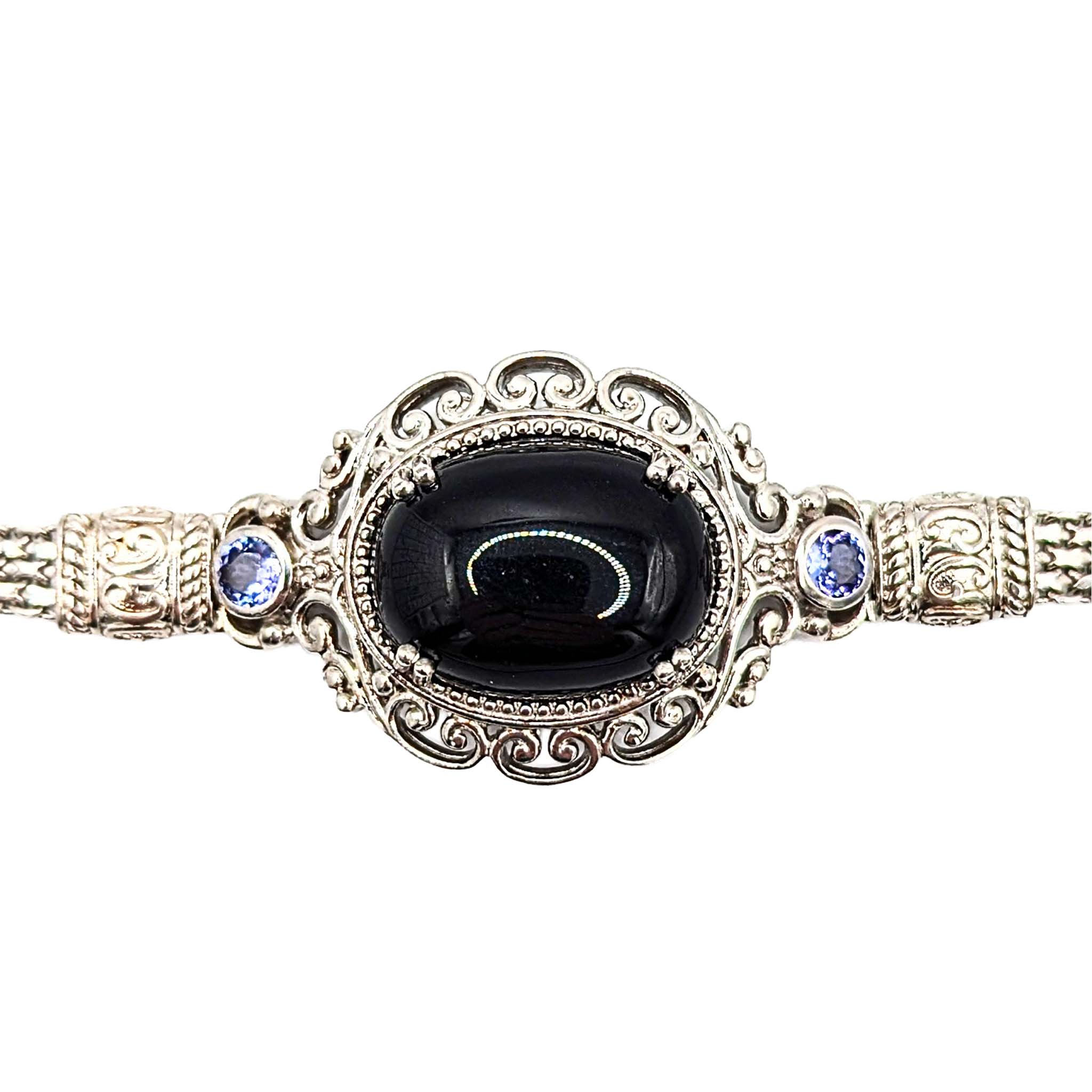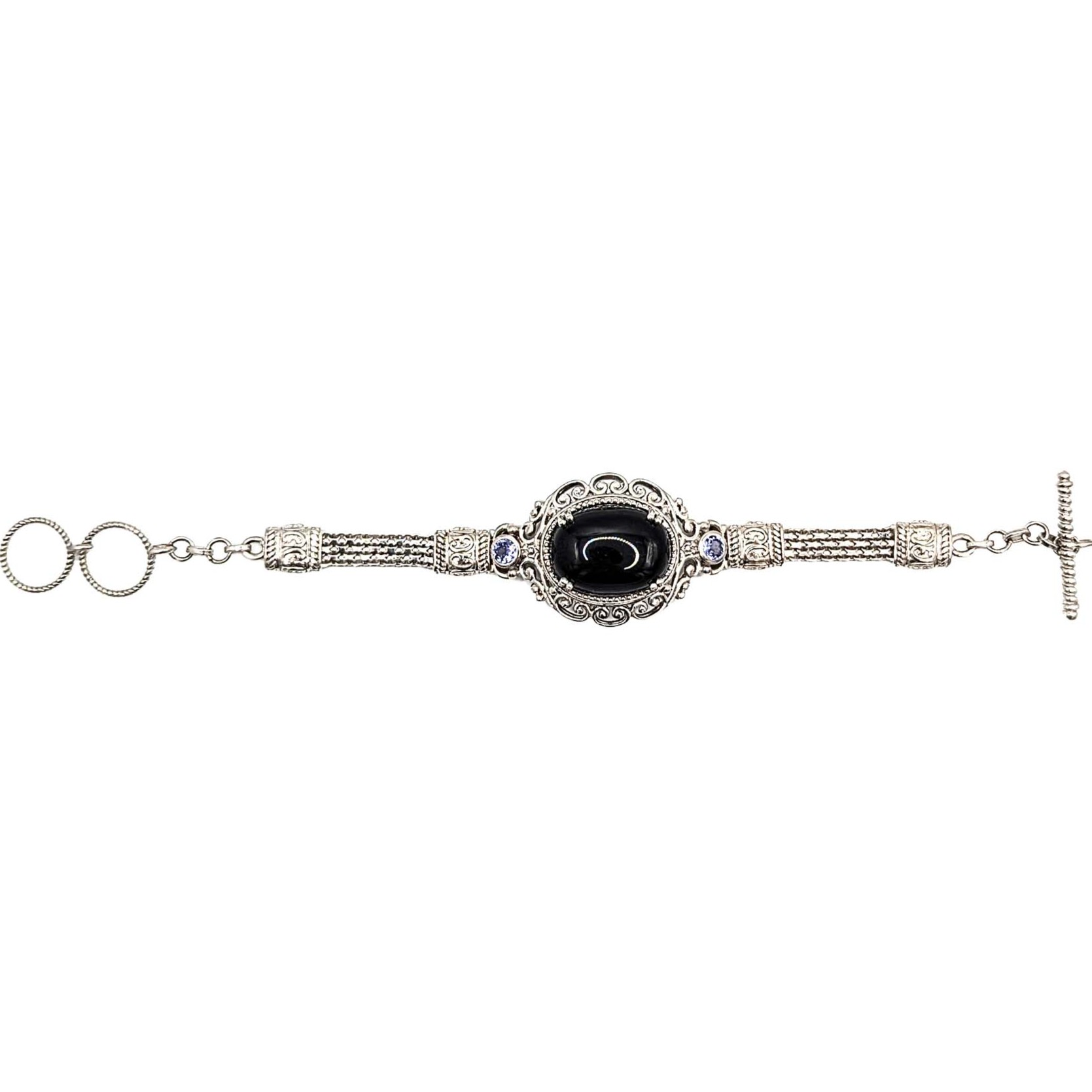 Sterling Silver Onyx Tanzanite Toggle Bracelet Signed STS .925 20g