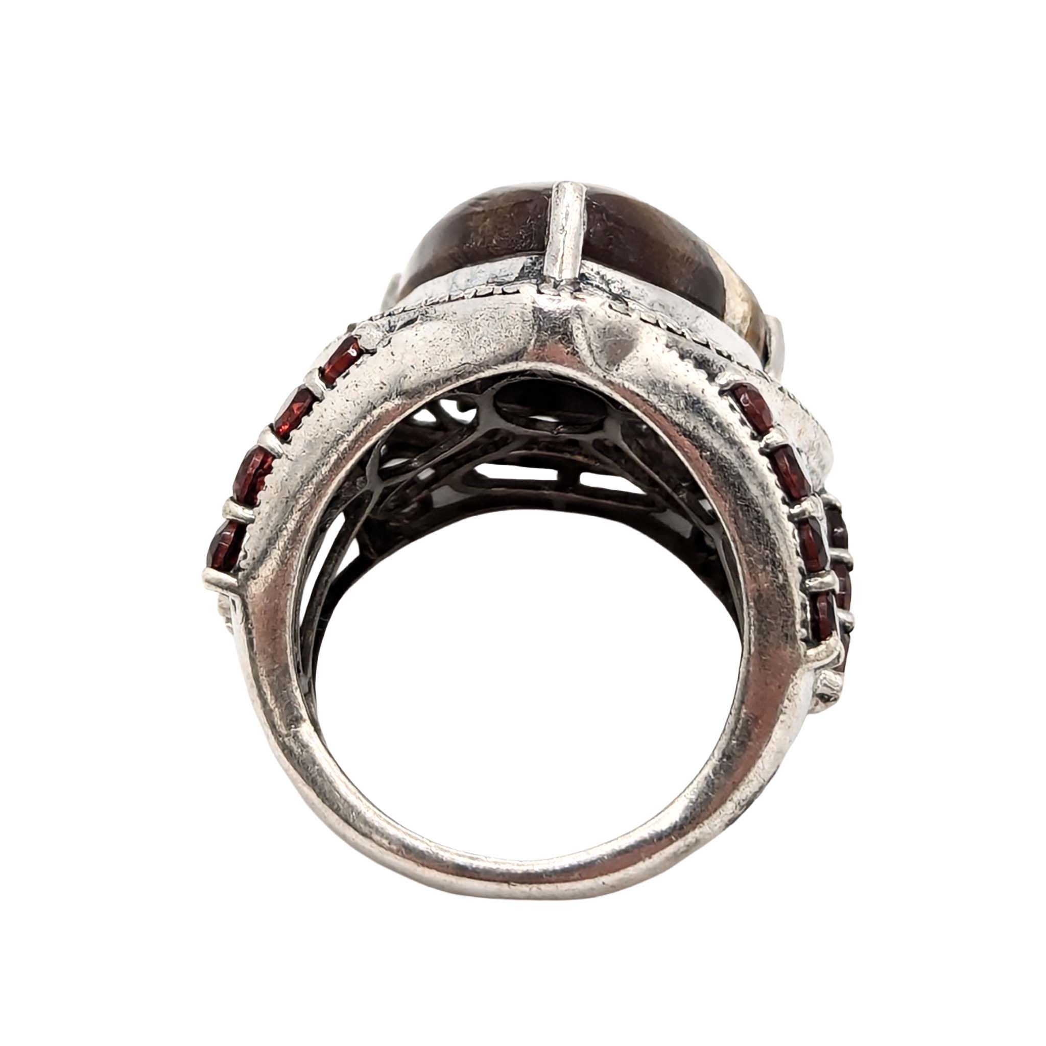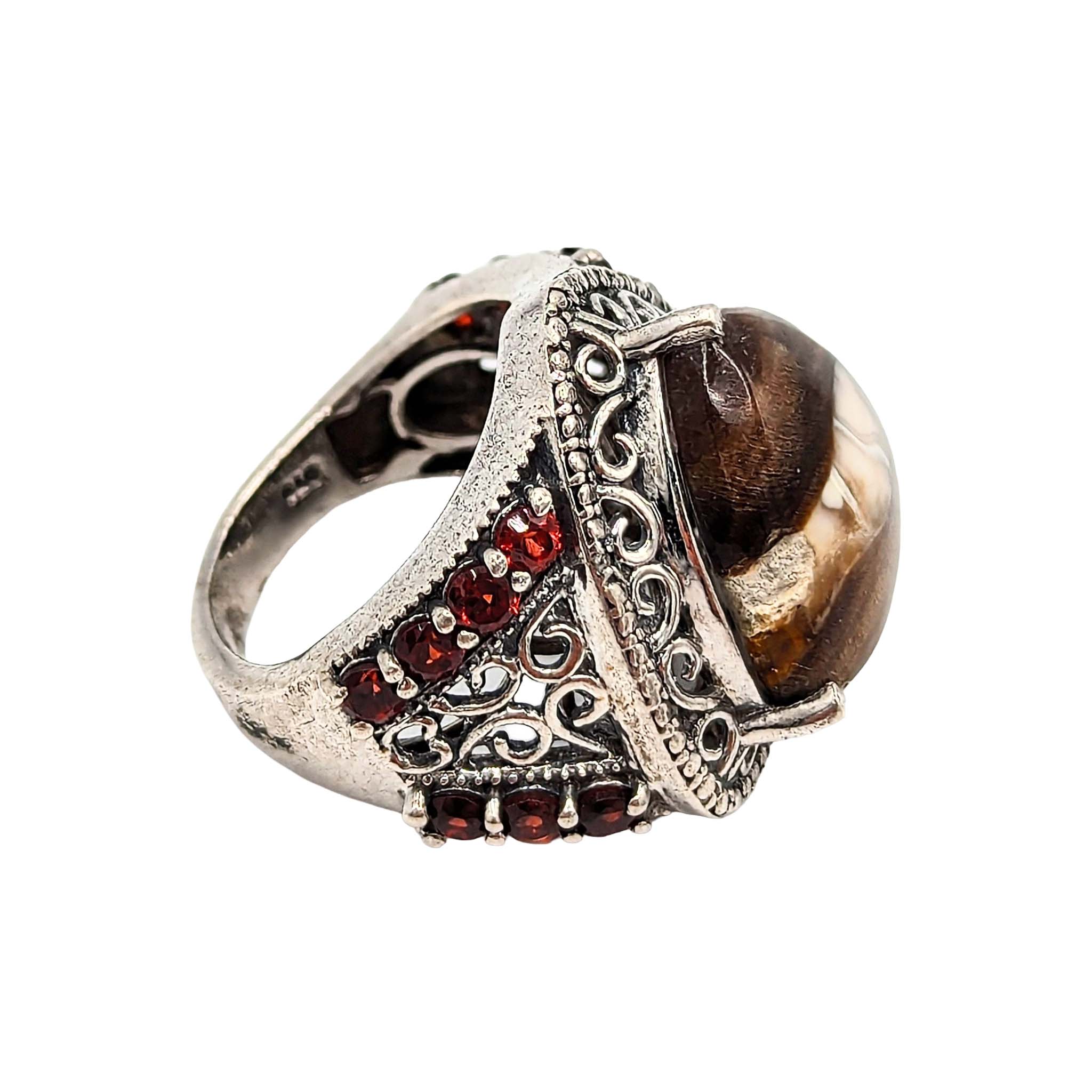 Sterling Silver Agate Red Accent Stone Ring Signed STS .925 Size 6.5 10.8g