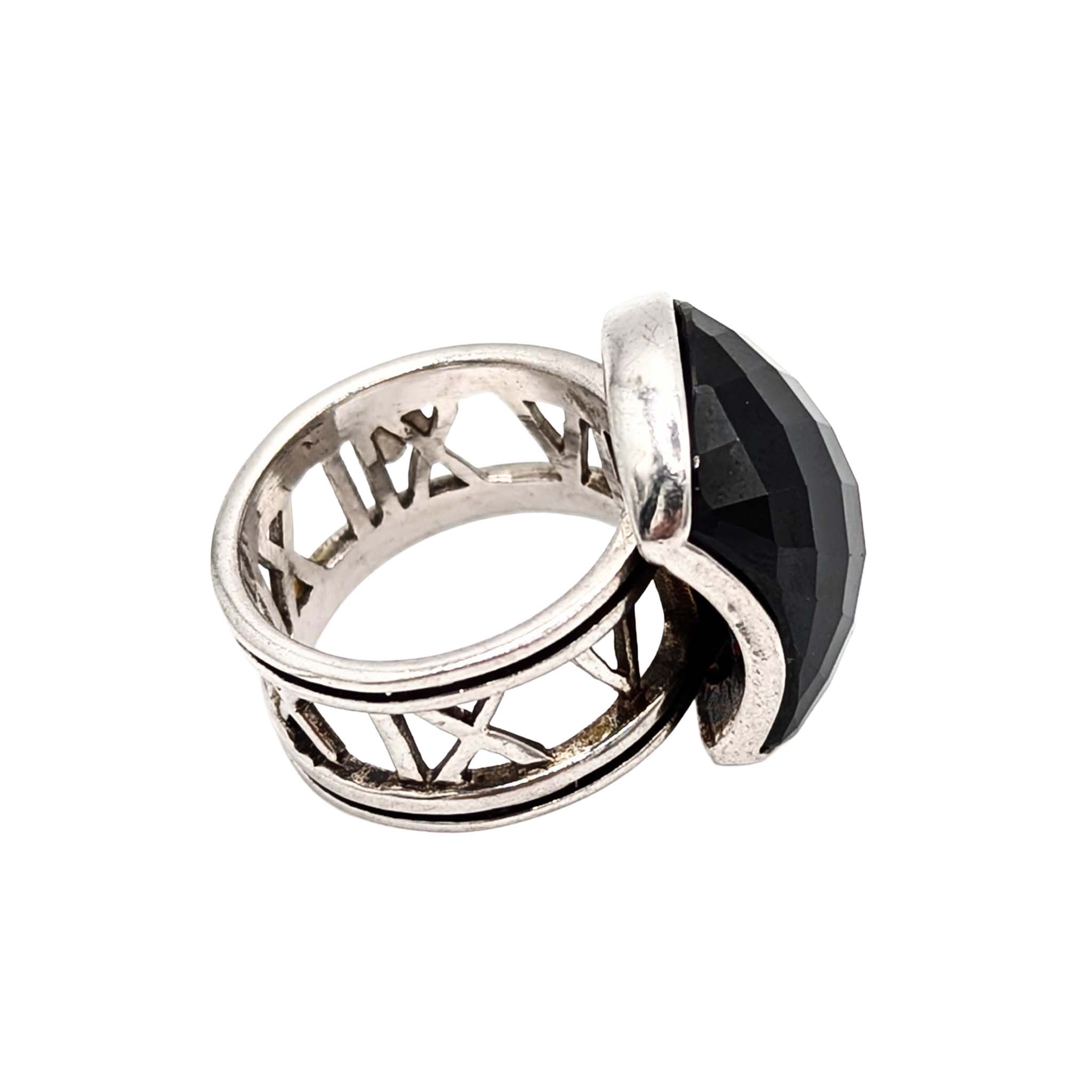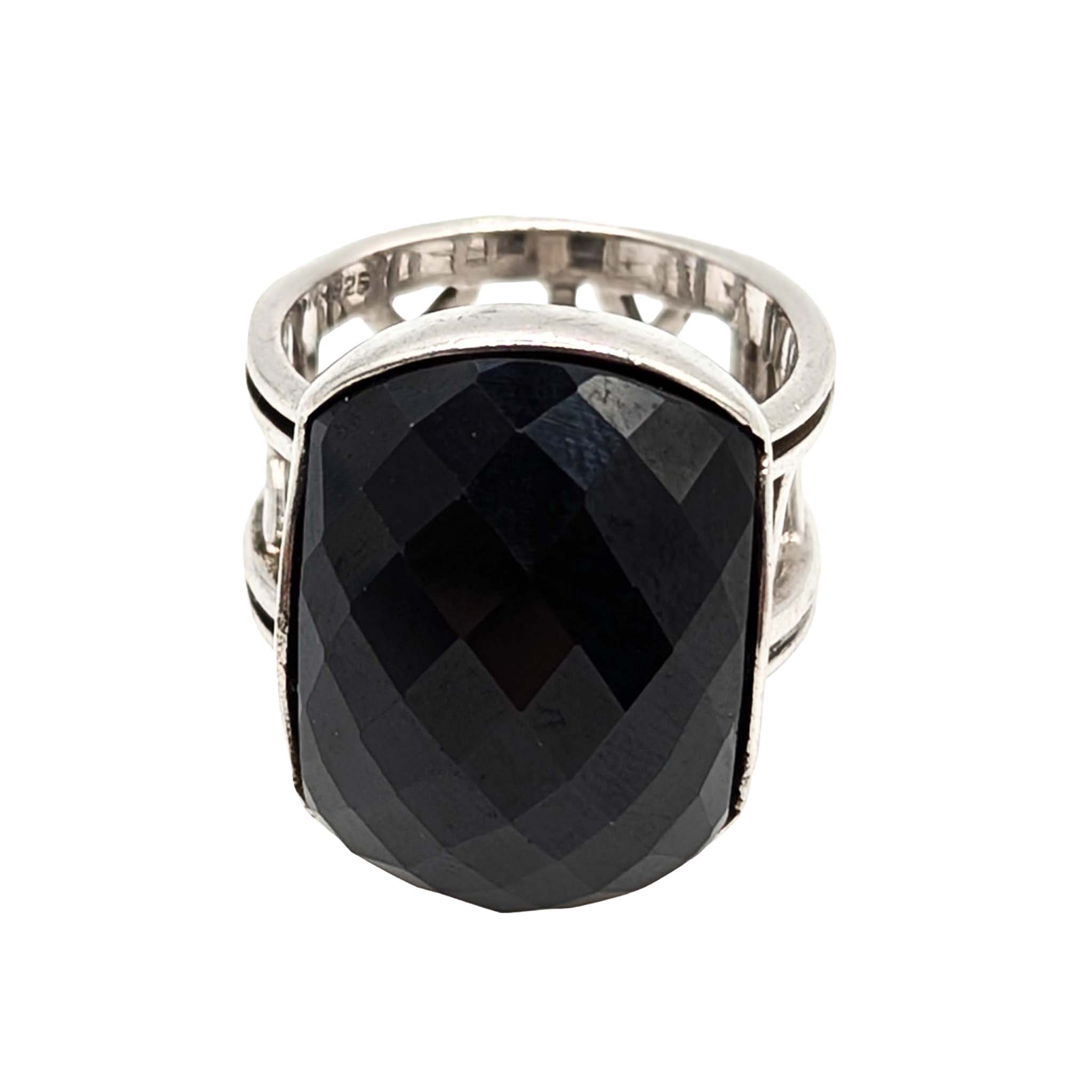 Sterling Silver Cushion Cut Black Tourmaline Ring Signed NF .925 Size 6.5 11.6g