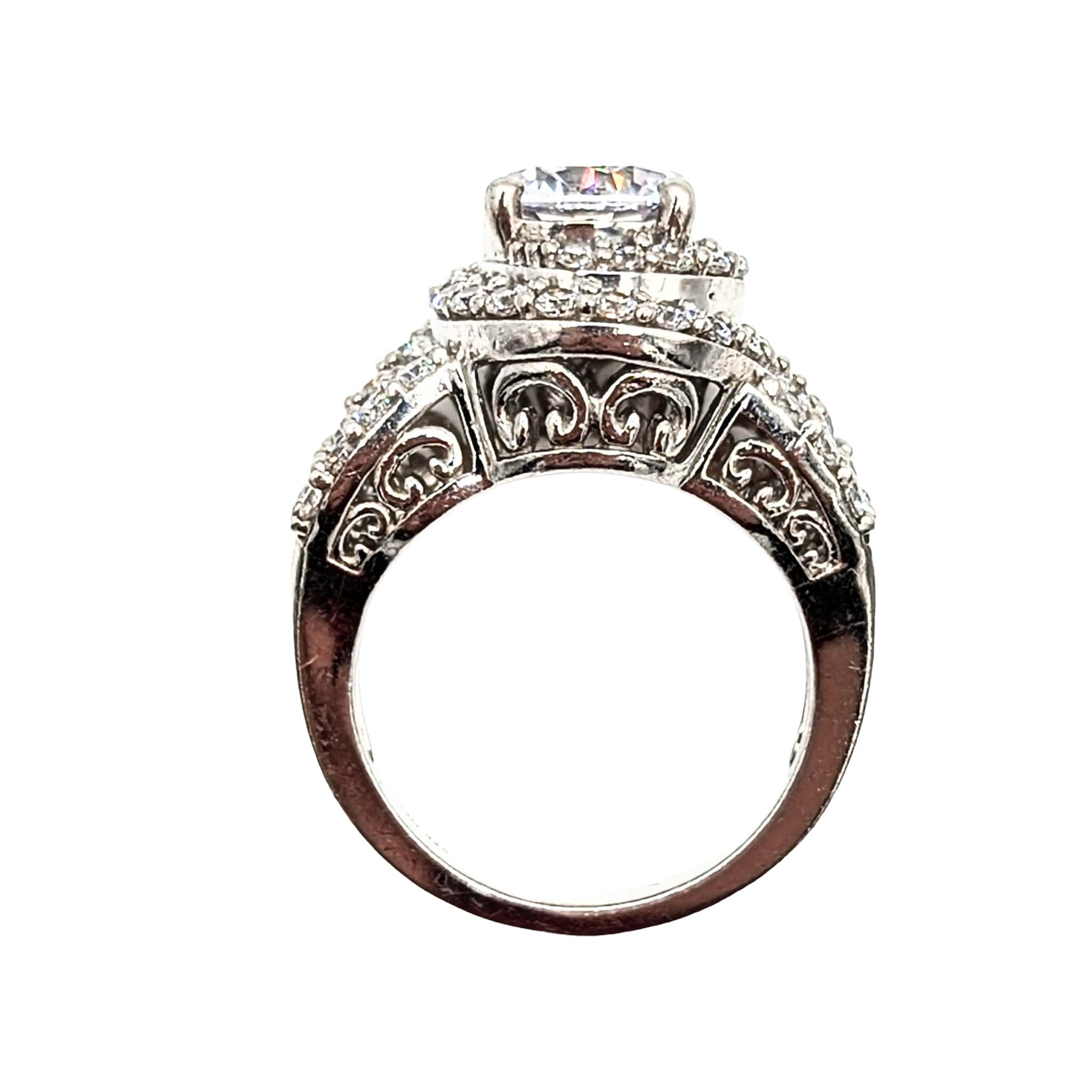 Sterling Silver CZ Scroll Ring Signed SJD .925 Size 6.5 8.3g