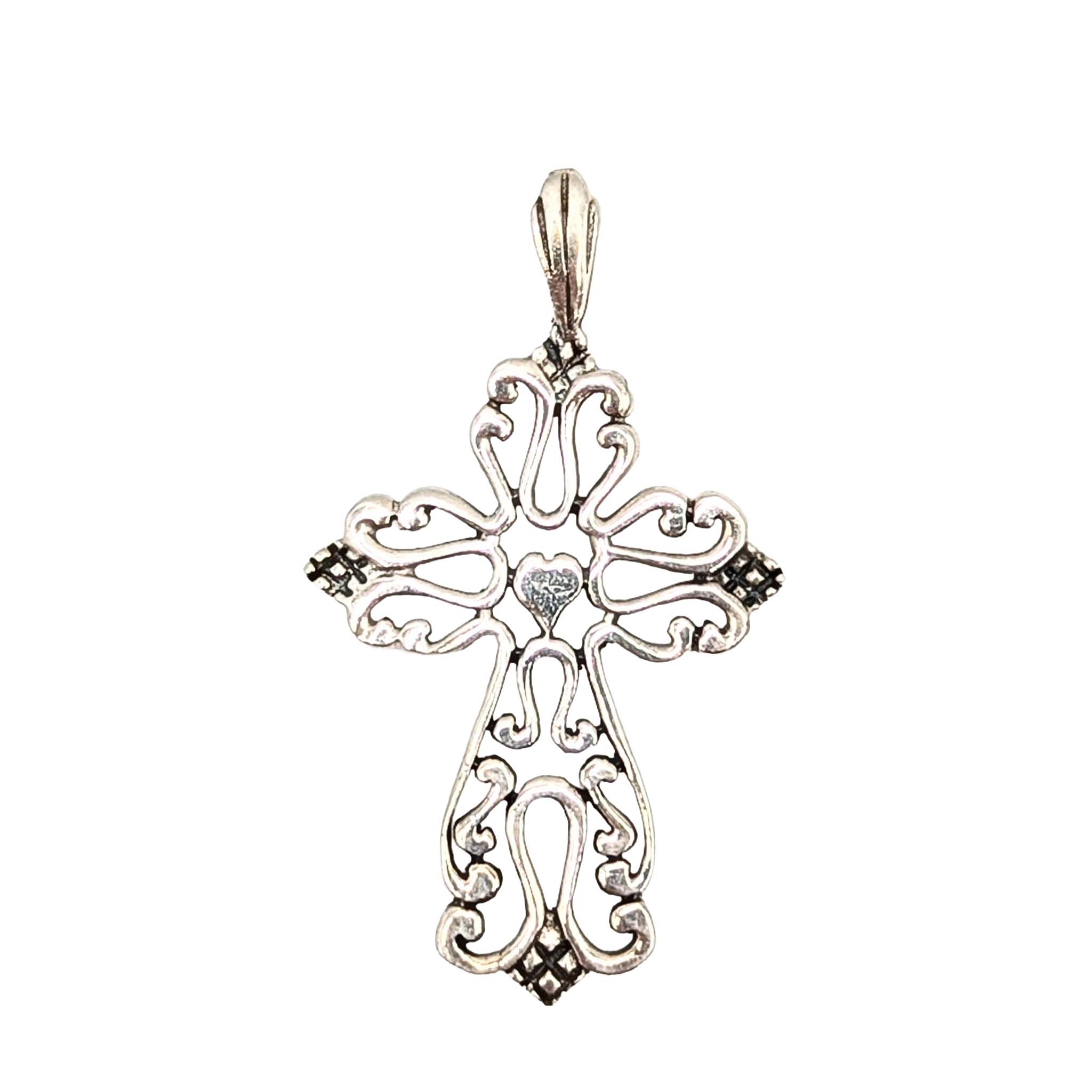 Sterling Silver Heart Cross Pendant Signed MA .925 2.4g