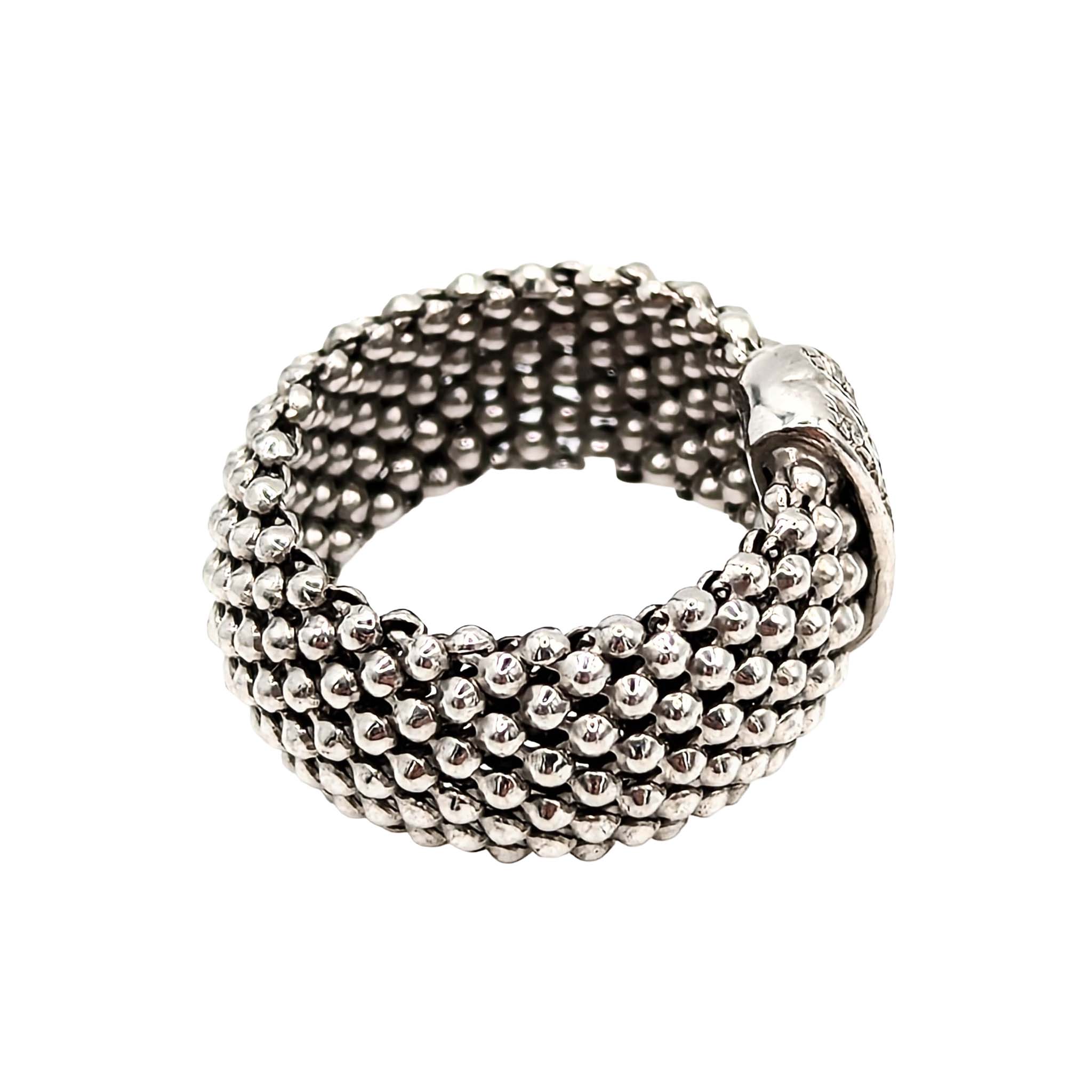 Italy Sterling Silver Diamond Mesh Ring Signed Italy .925 Size 6.75 5.1g