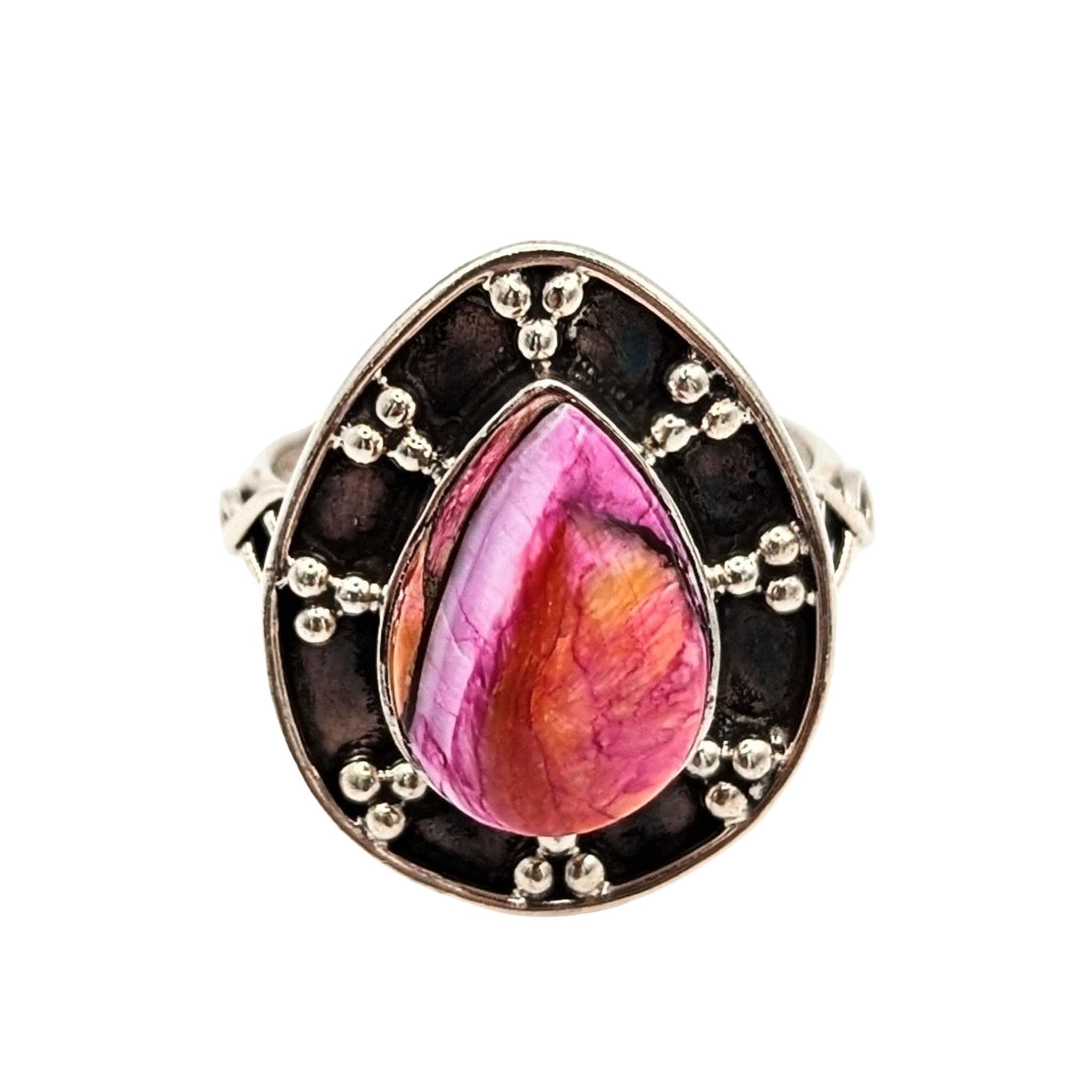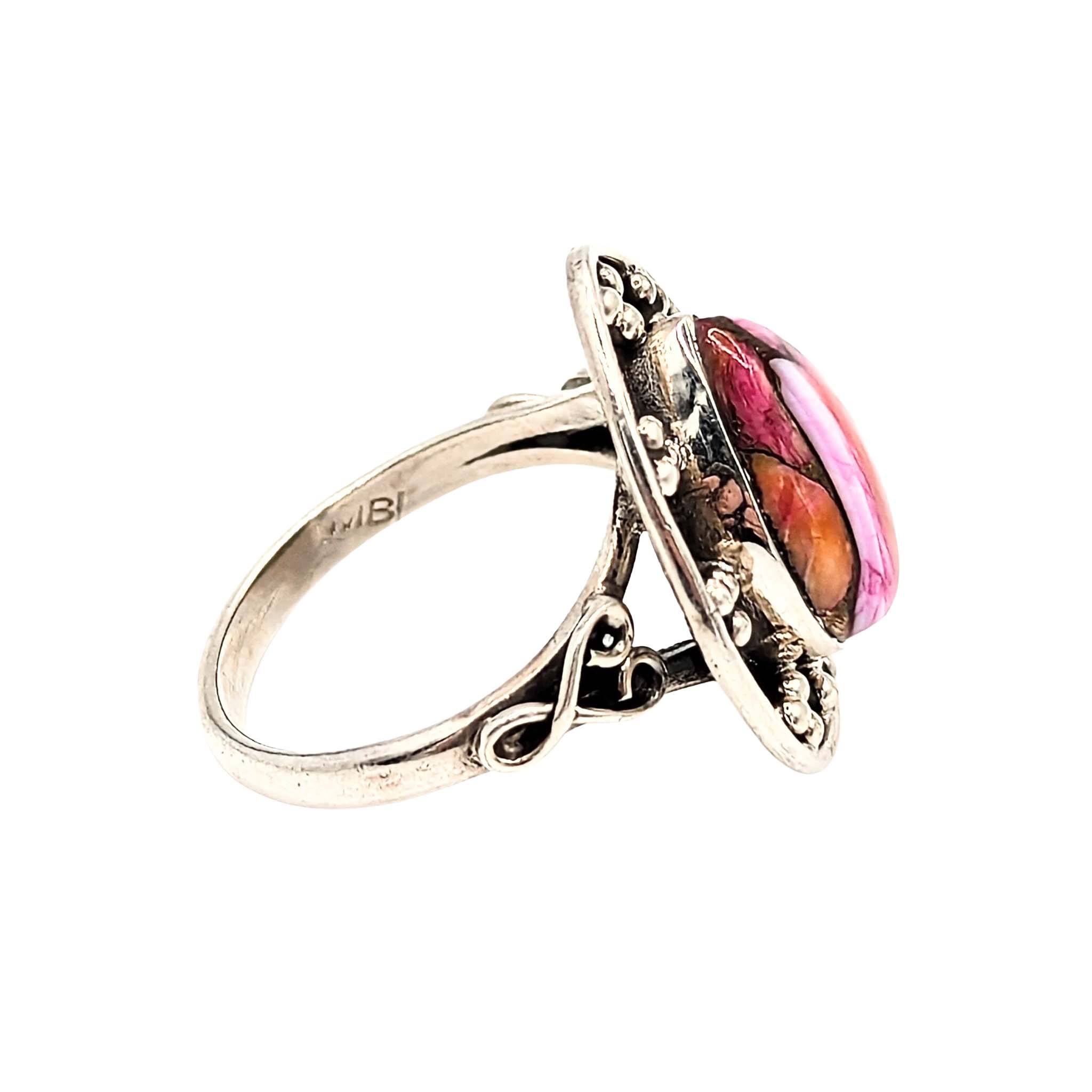 Sterling Silver Pink Dhalia Turquoise Teardrop Ring Signed MB .925 Size 7.75 5.4g