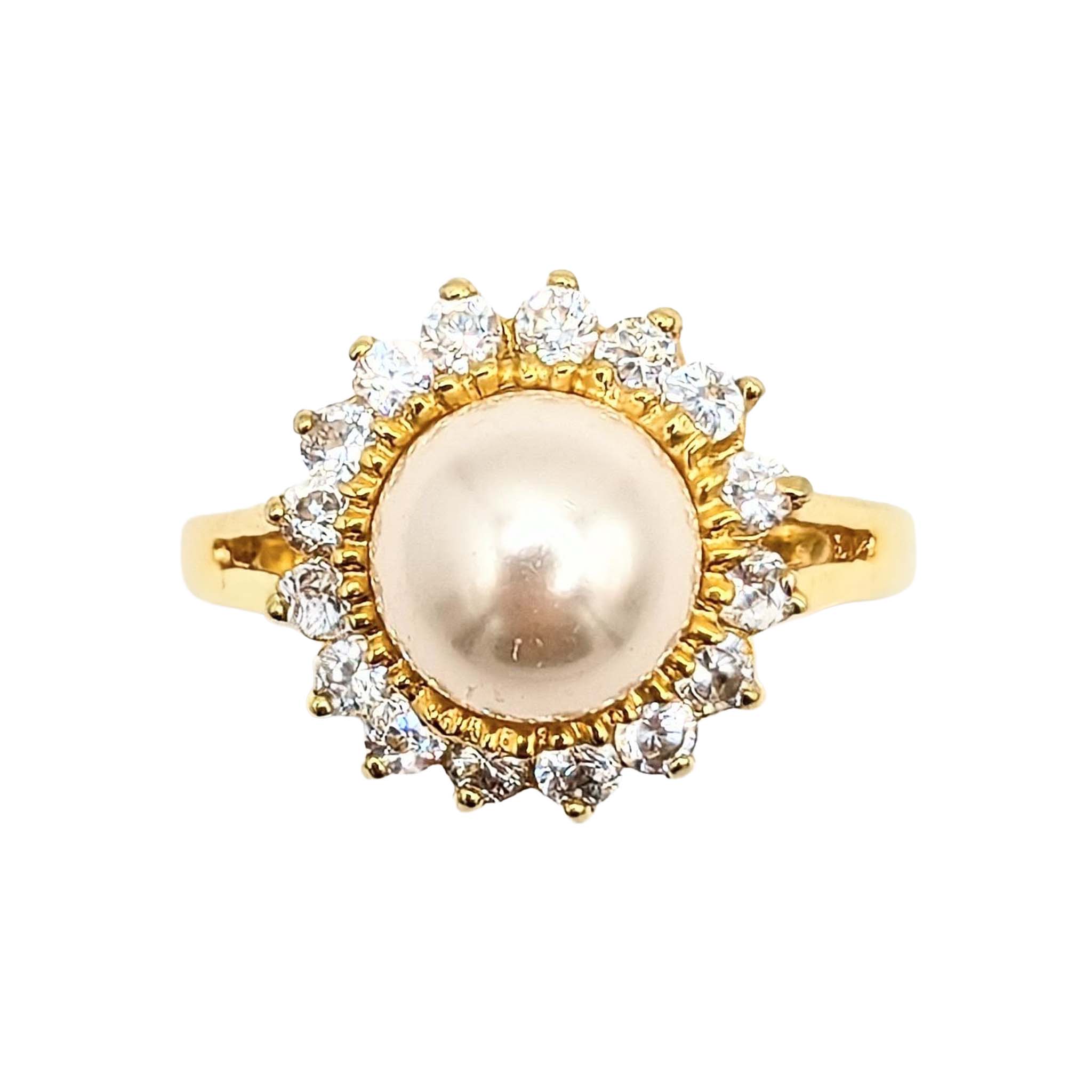 Sterling Silver Gold Over Pearl Ring Signed TCA .925 Size 8.25 4.9g