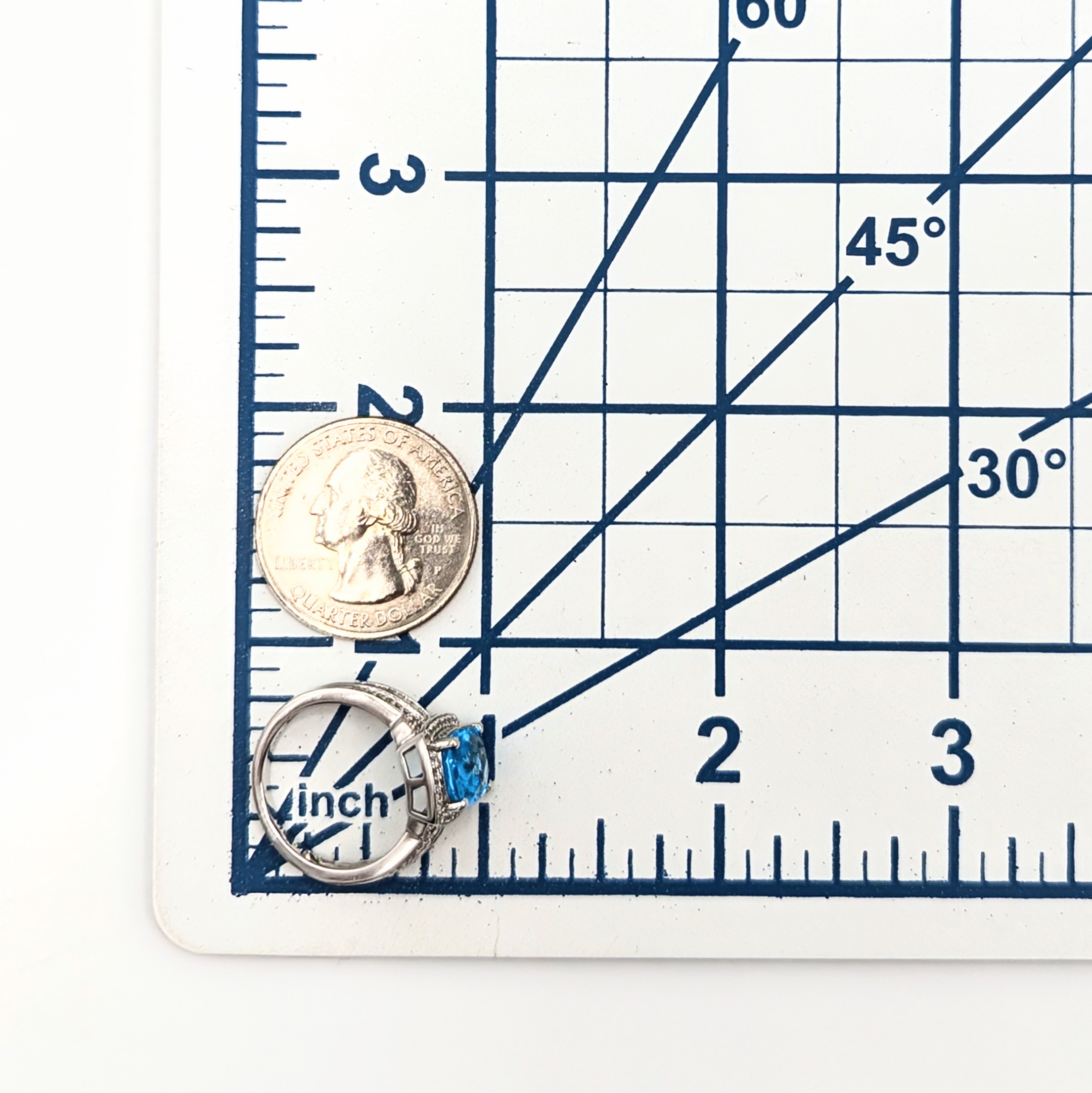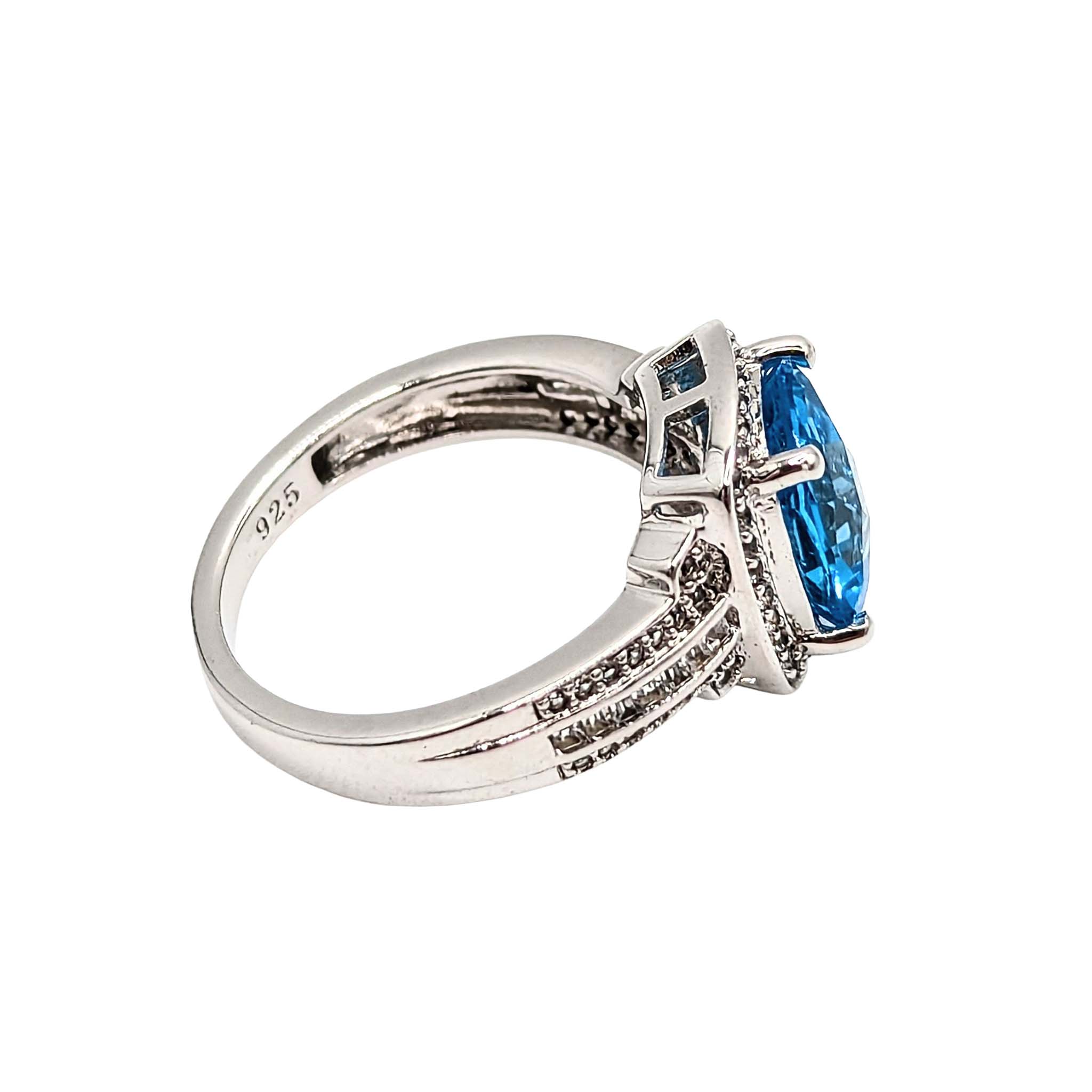 Sterling Silver Topaz Diamond Ring Signed PM .925 Size 6.75 4.2g
