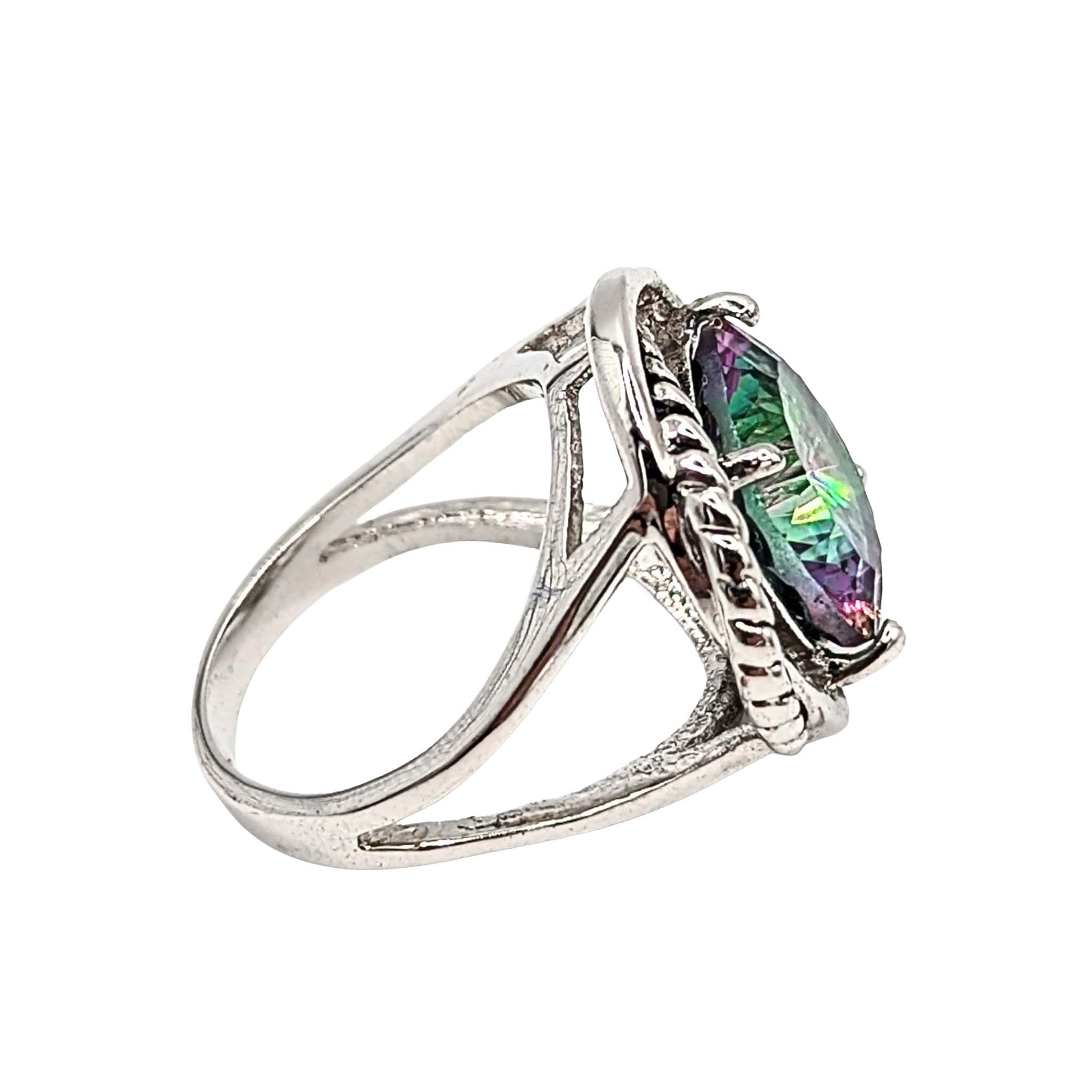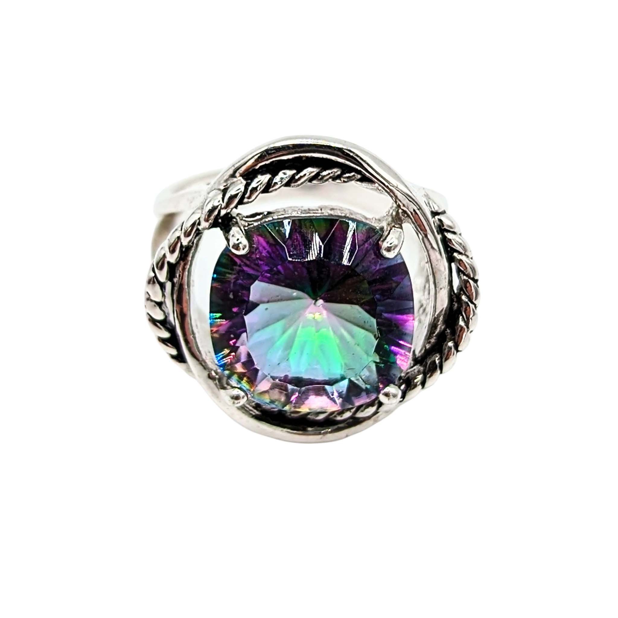 Sterling Silver Iridescent Crystal Double Hoop Ring Size 8.5 8.6g
