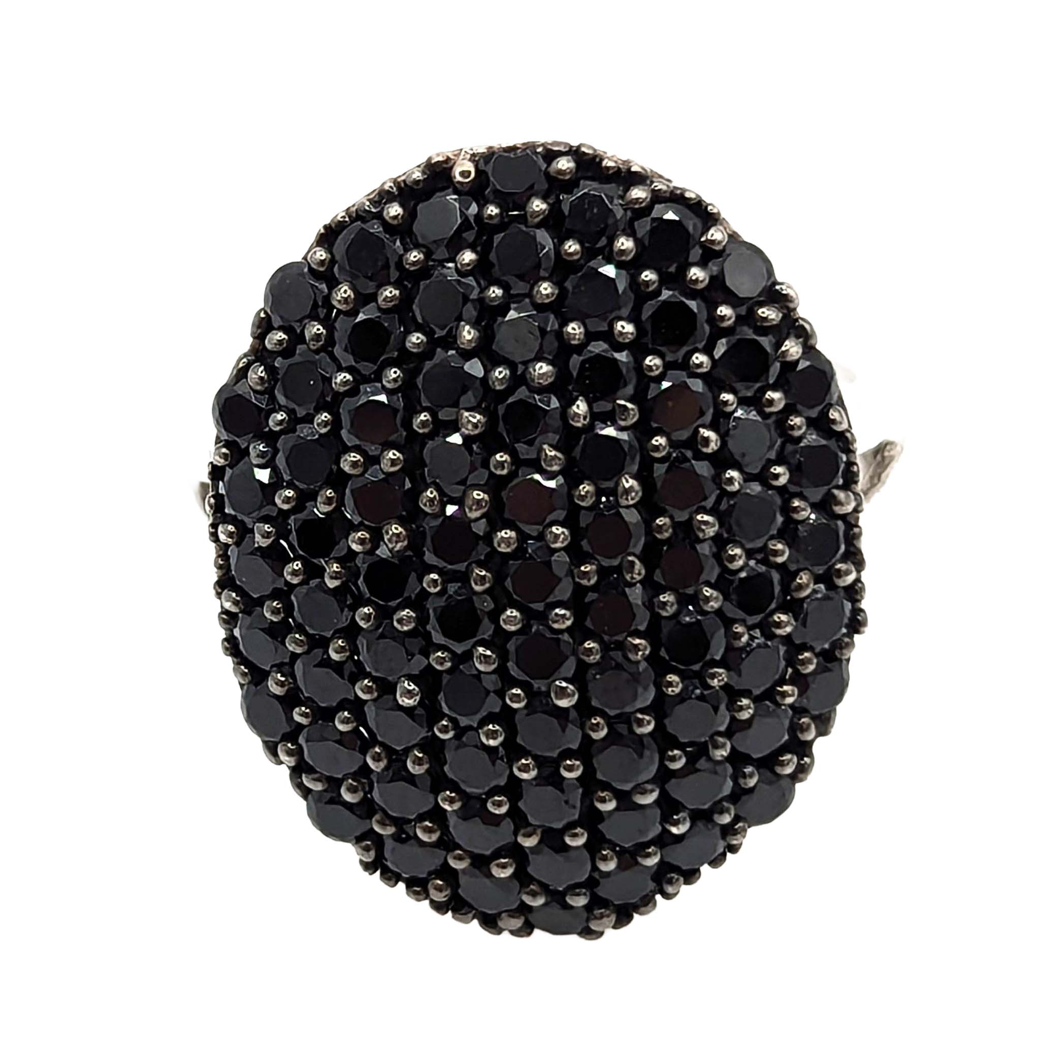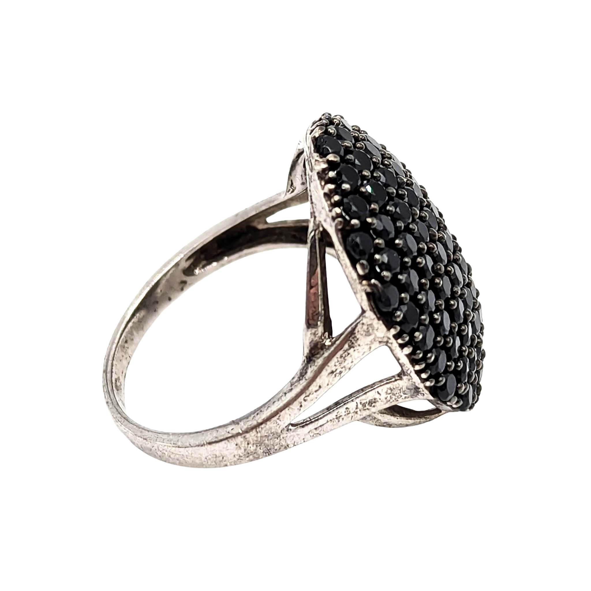 Sterling Silver Black Tourmaline Oval Cluster Ring Signed KHR .925 Size 7.5 4.2g