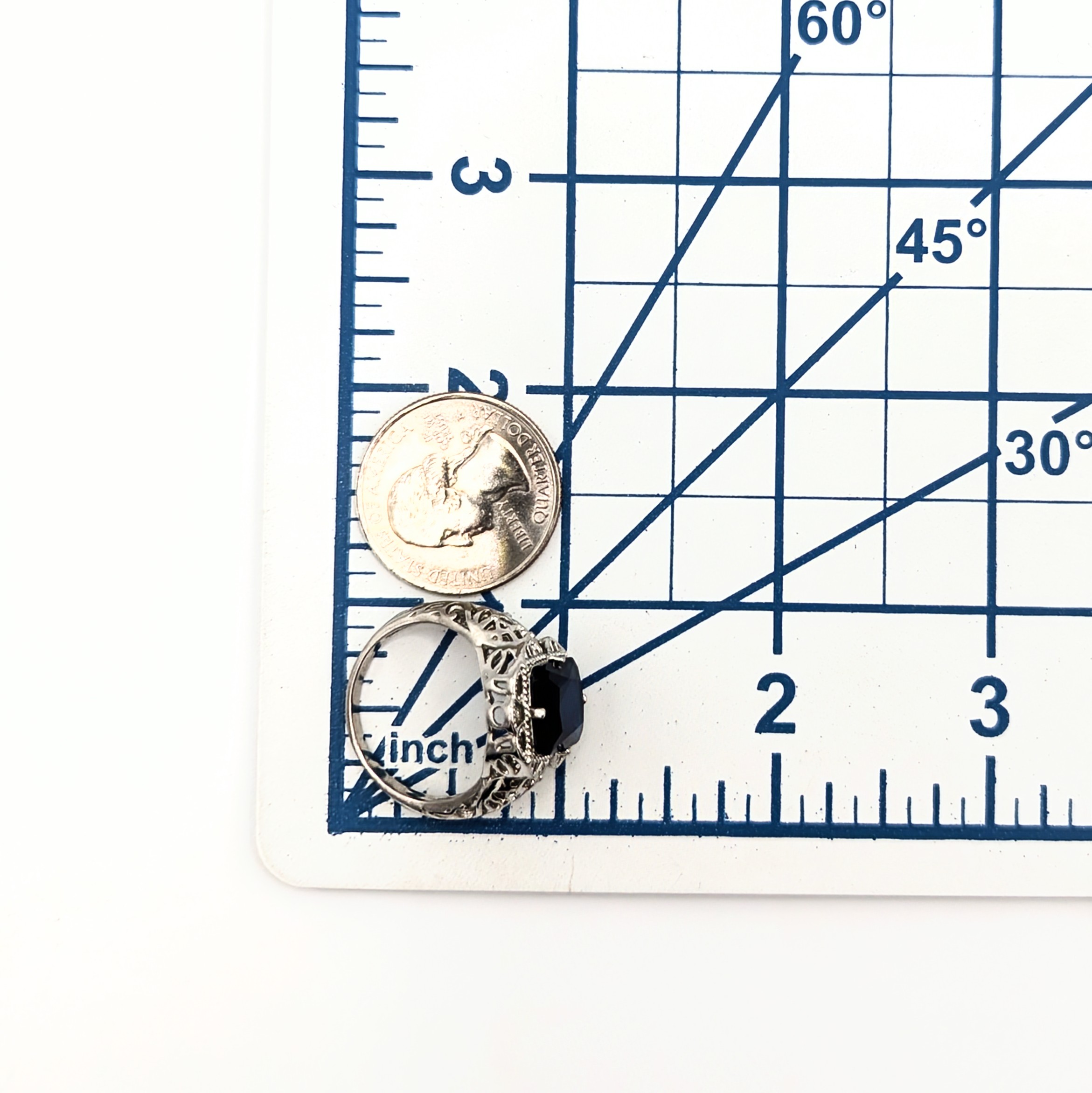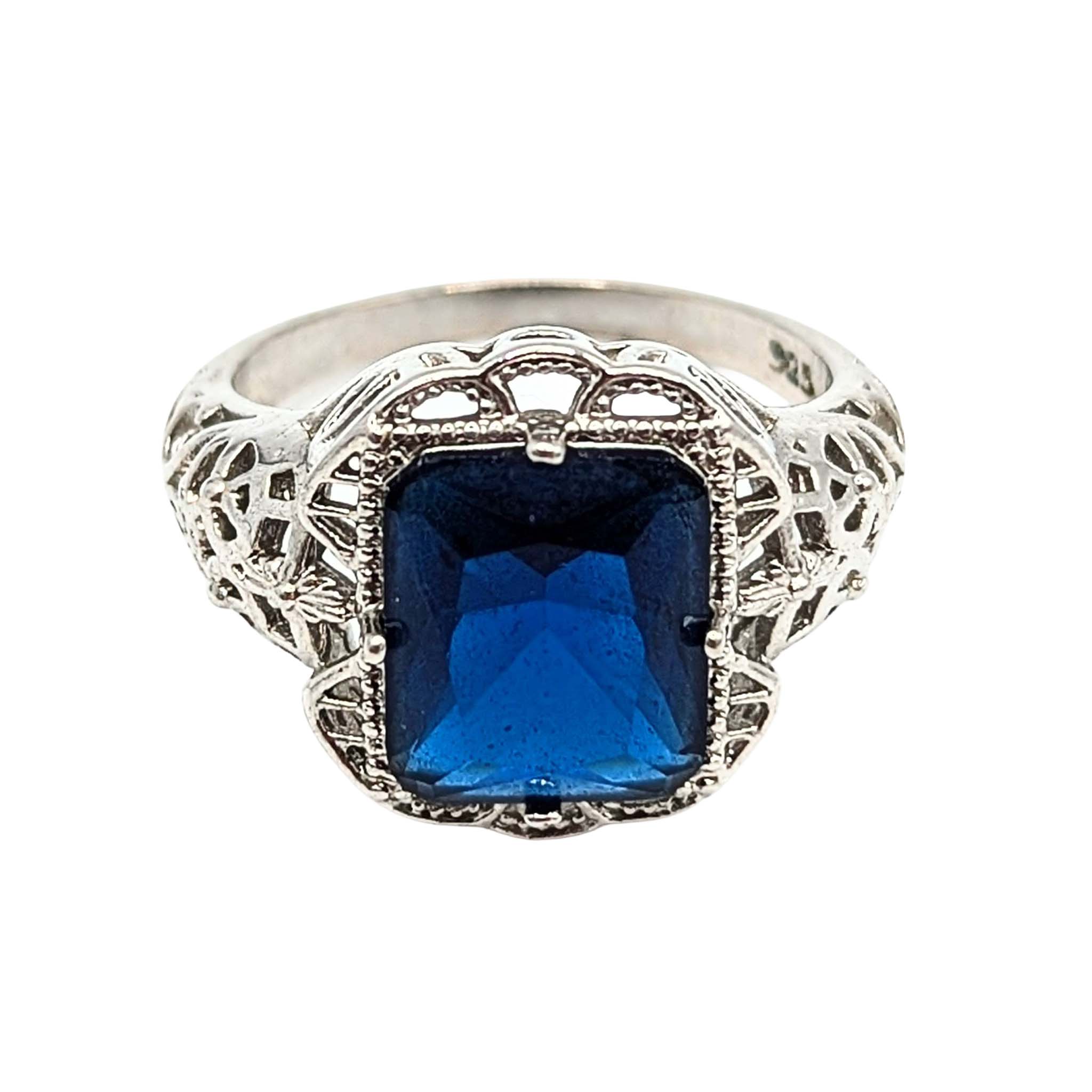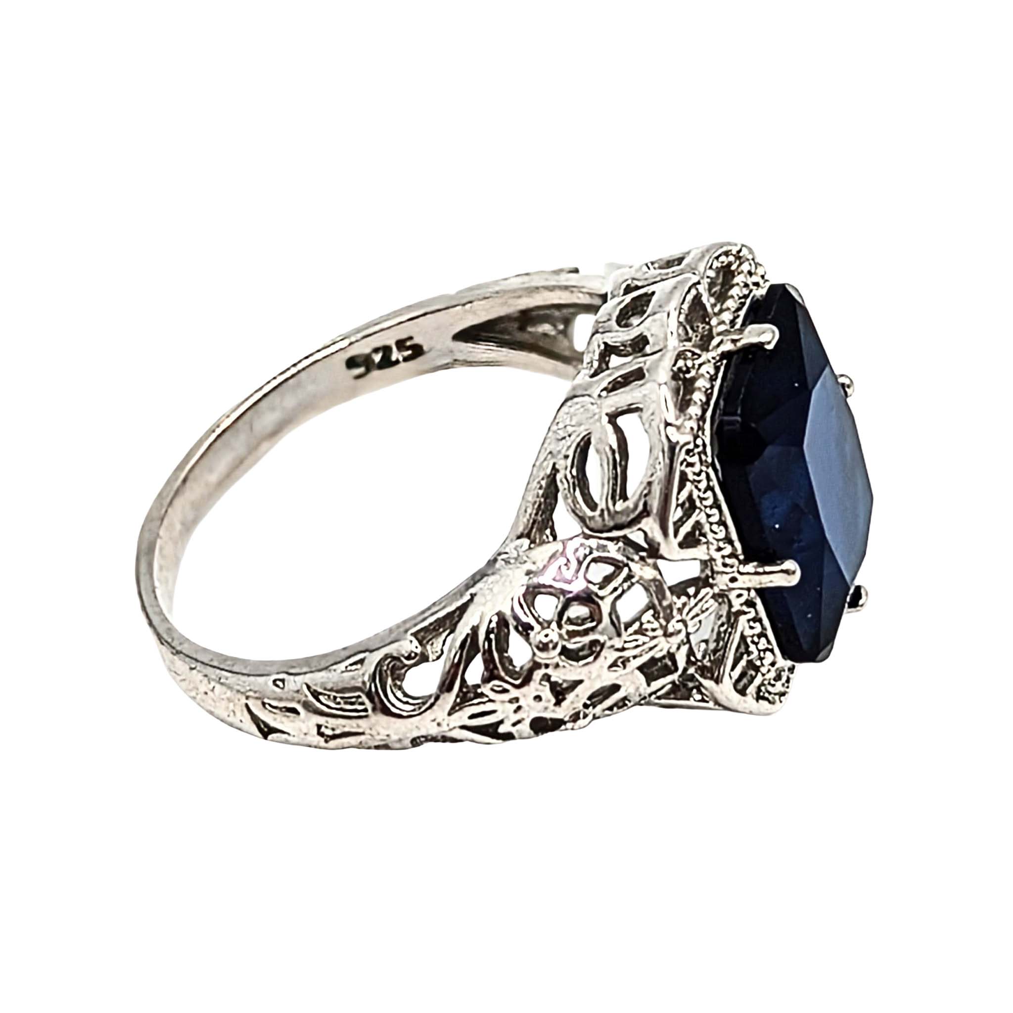 Sterling Silver Blue Stone Filigree Ring Size 9.75 5g