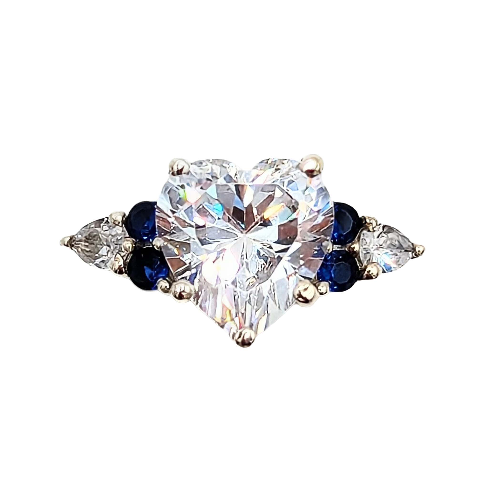 Sterling Silver Rhinestone Heart Ring Size 6.5 4.6g