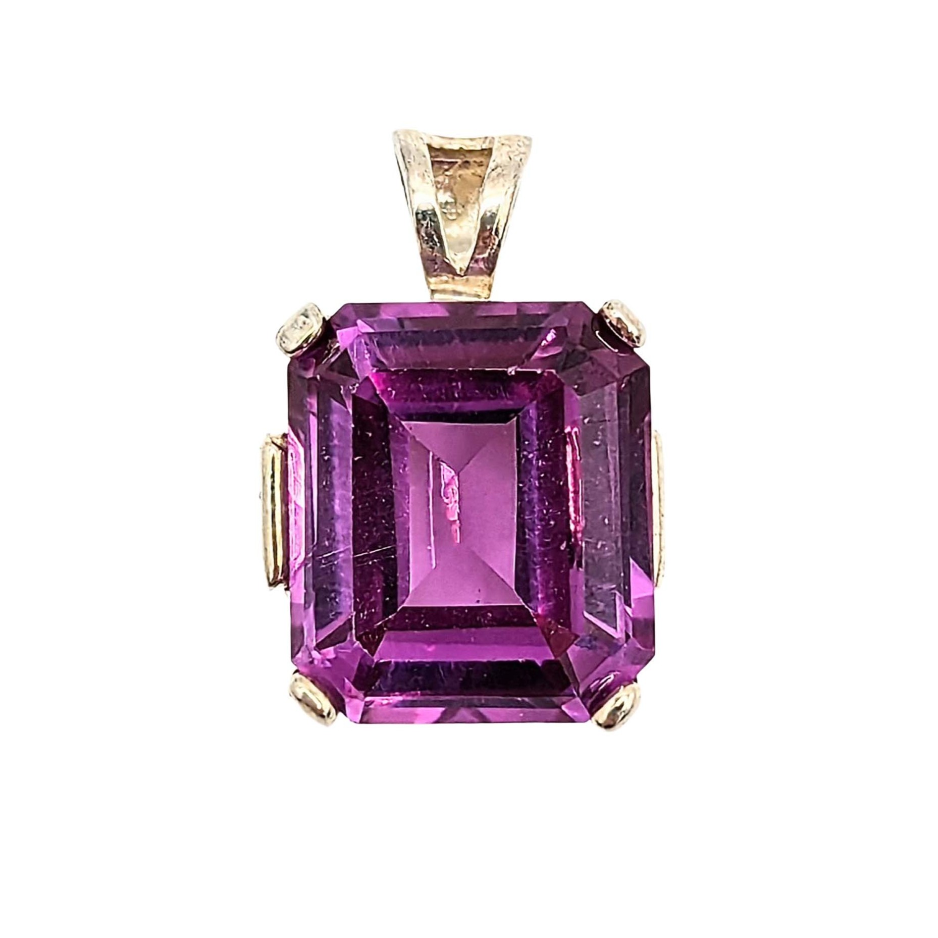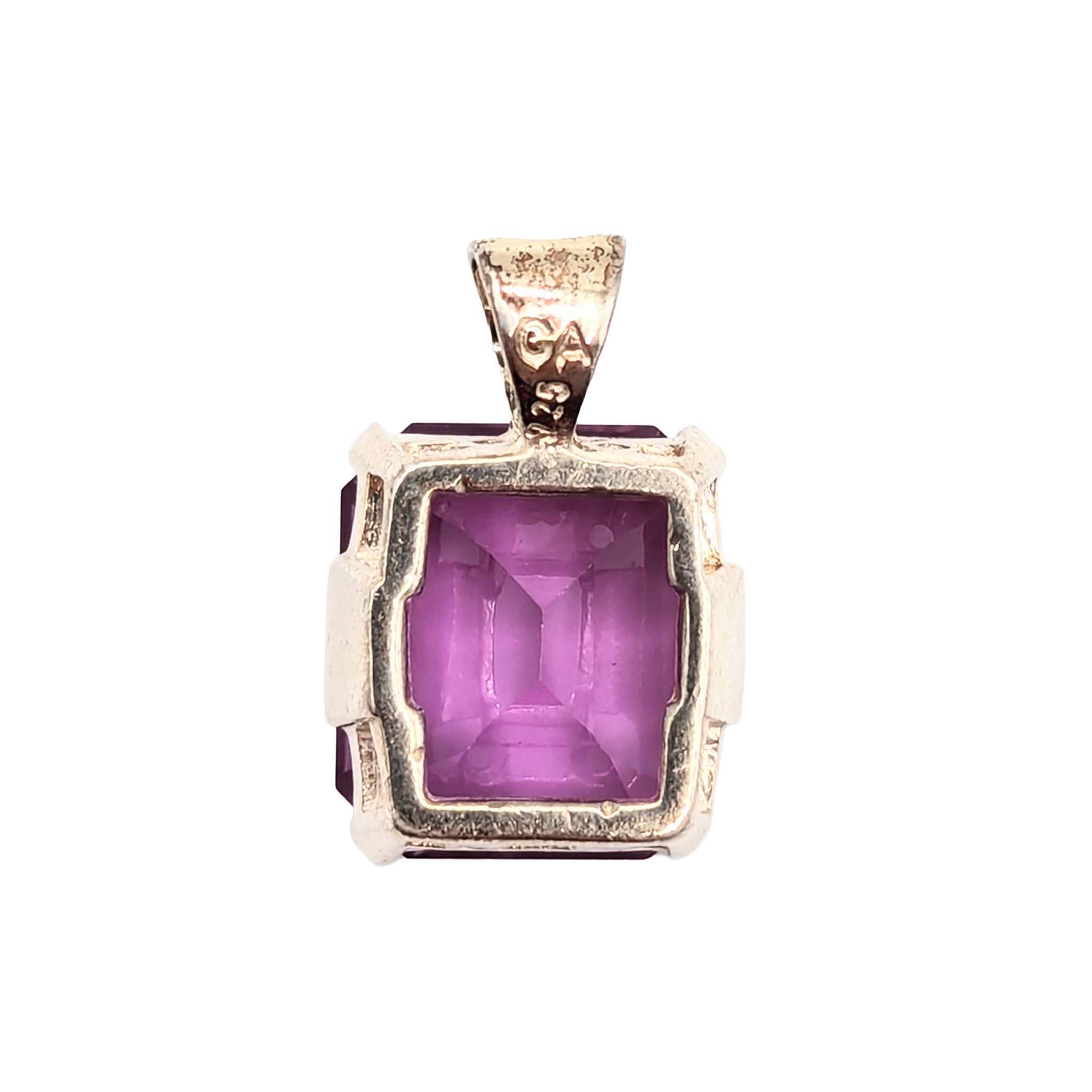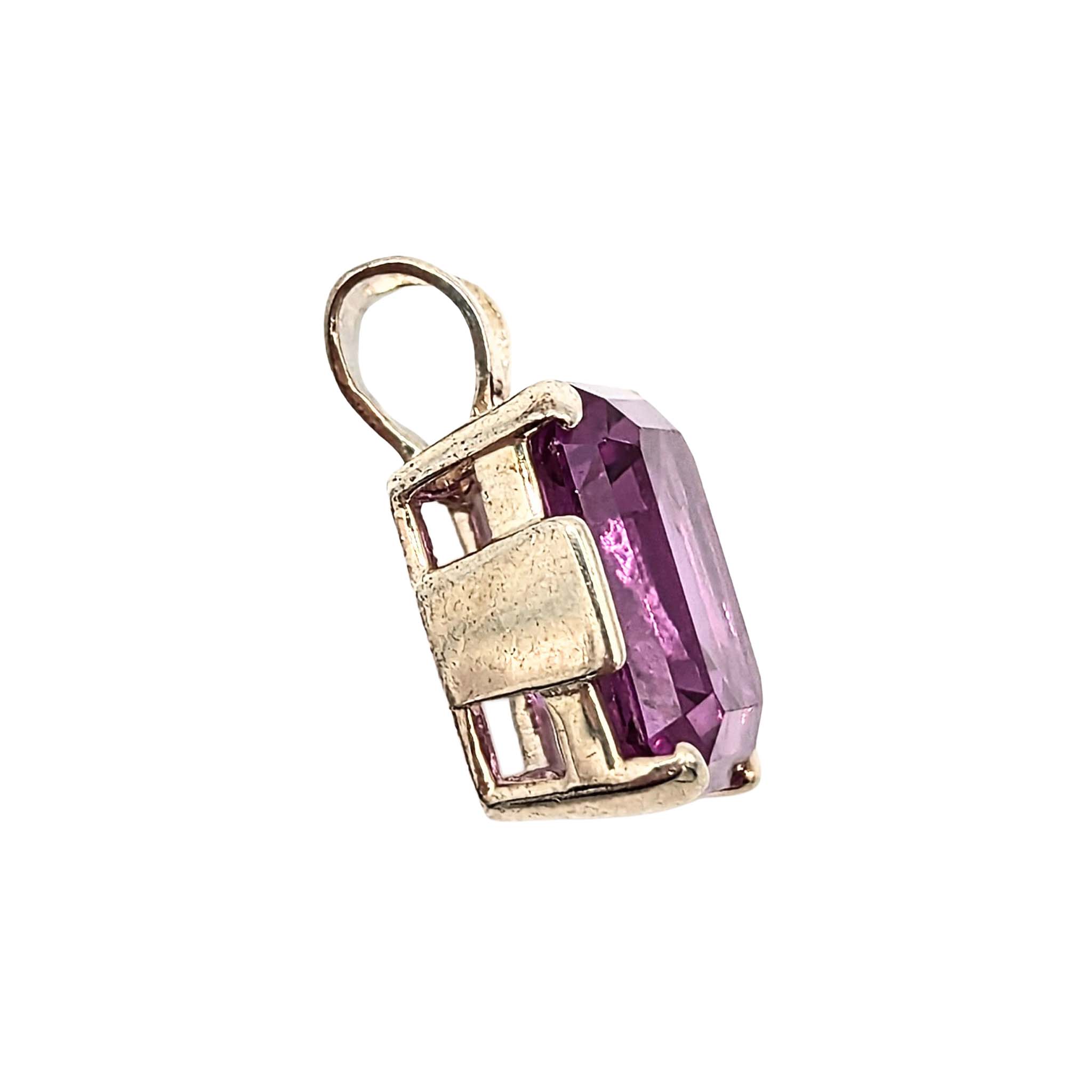 Sterling Silver Pink Gemstone Emerald Cut Pendant Tests as Sapphire Signed CA .925 4.9g