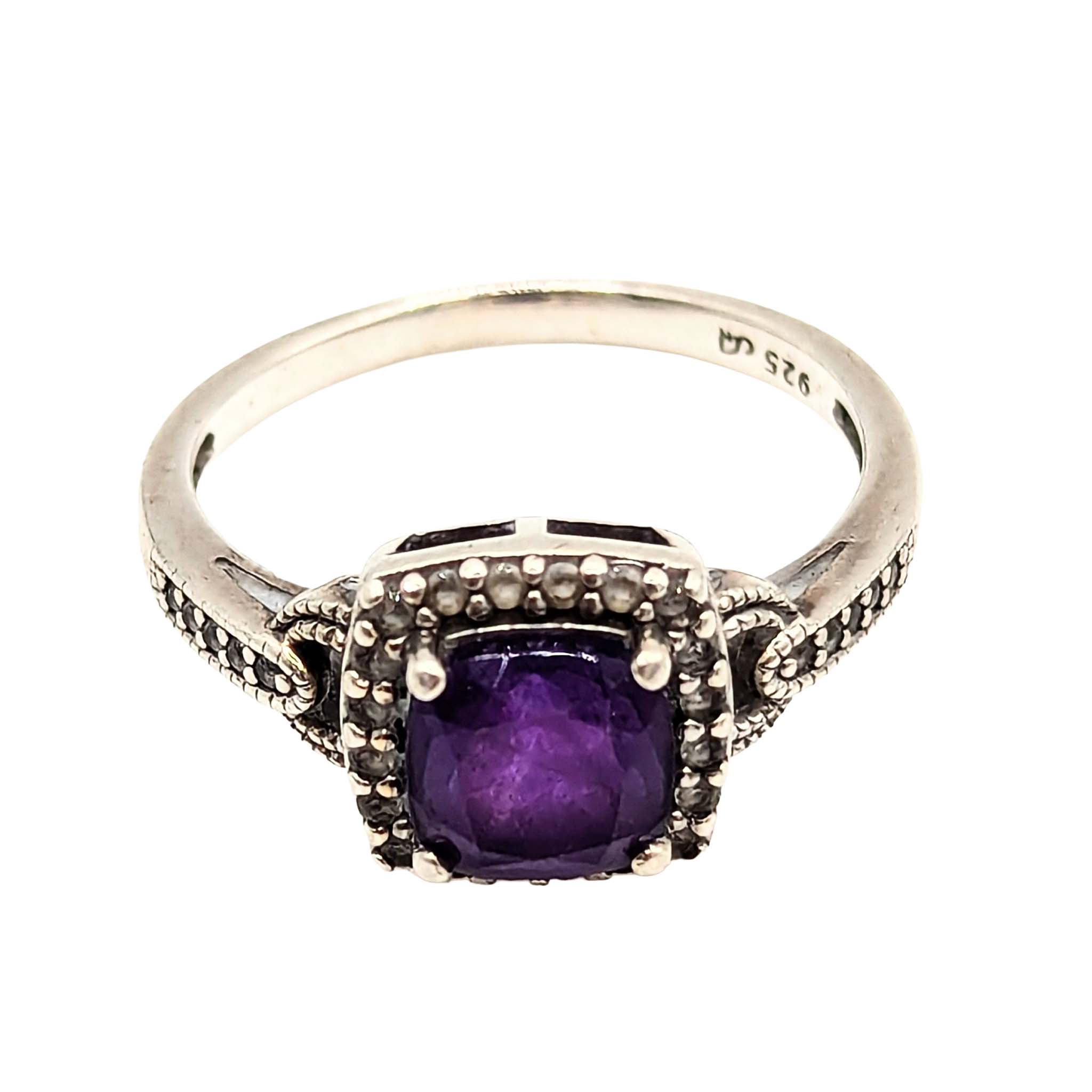 Sterling Silver Amethyst CZ Ring Signed JA .925 Size 8 3.4g