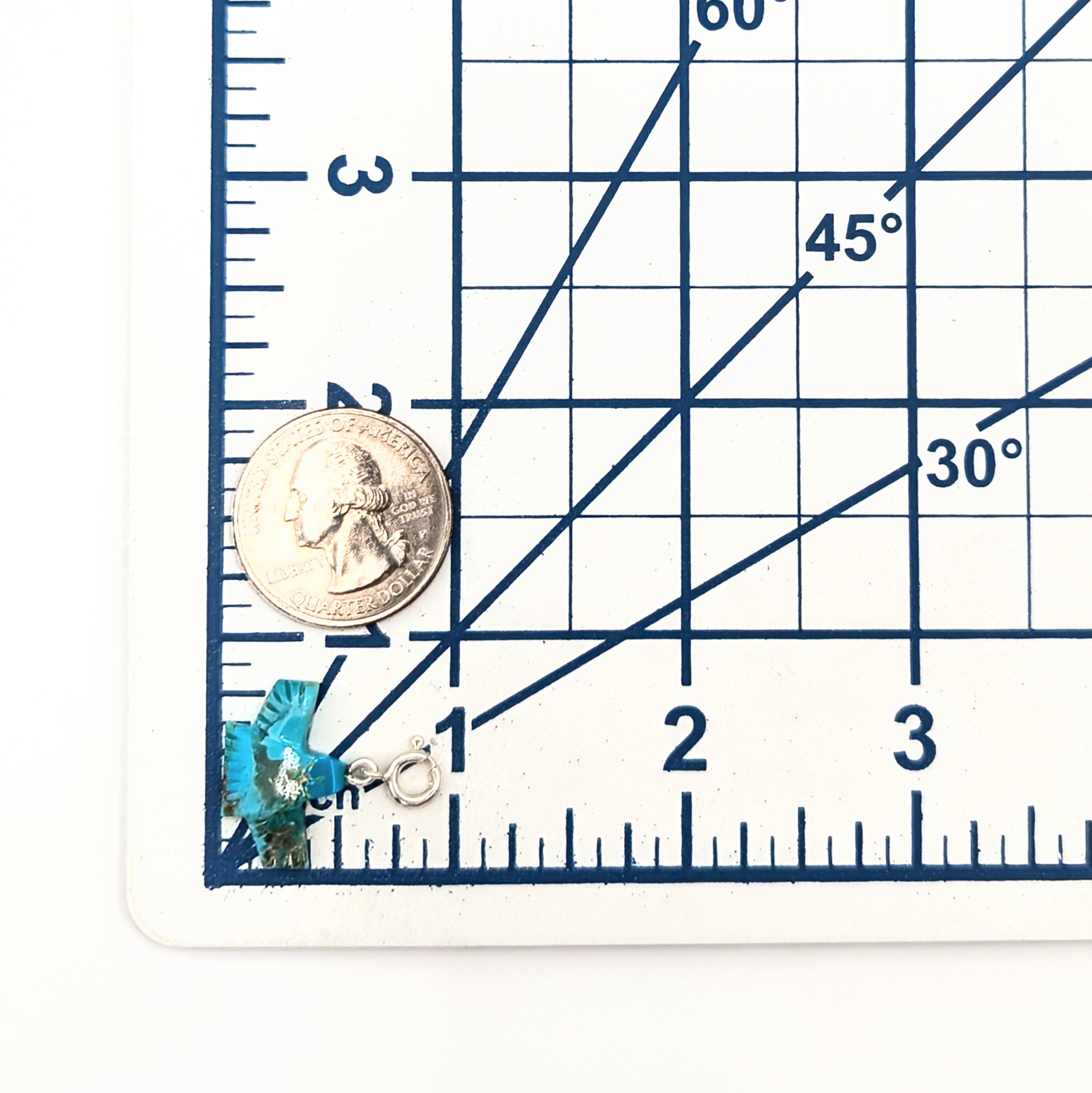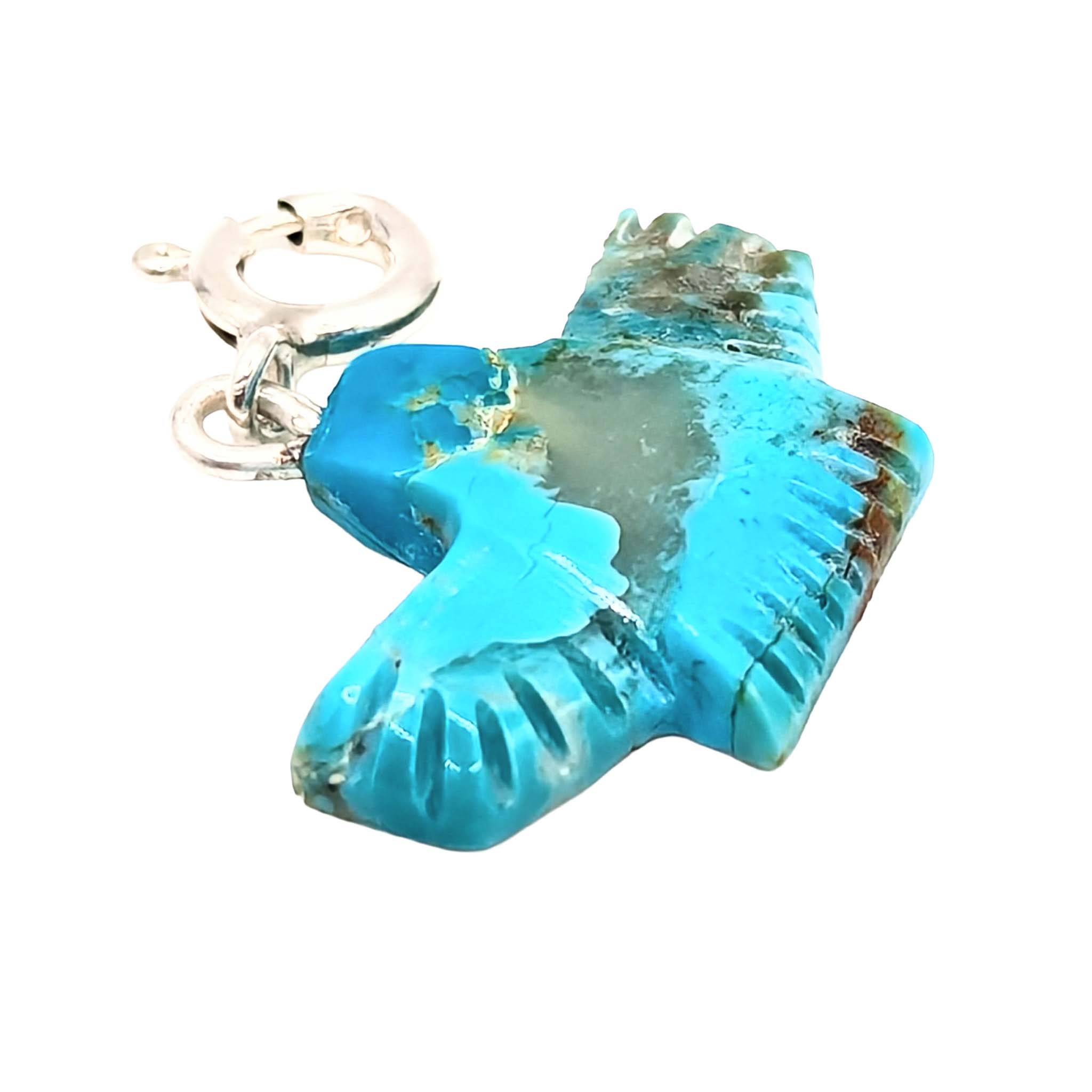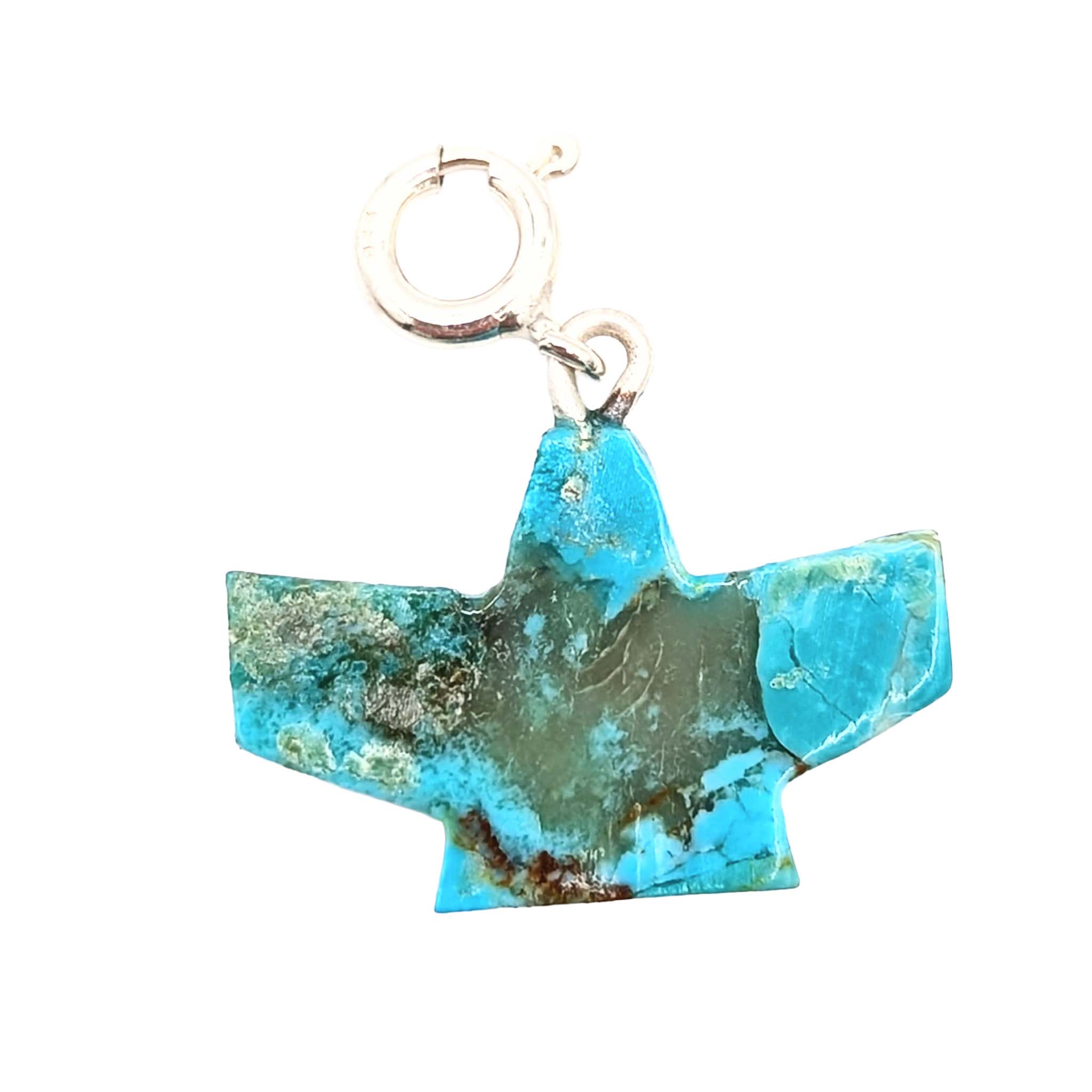 Native Hand Carved Ice Blue Dhalia Turquoise Sterling Silver Knifewing Figure Charm 1.2g