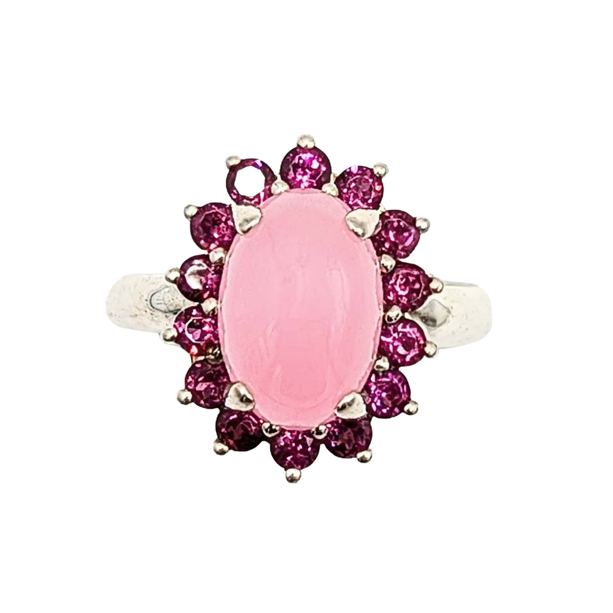 Sterling Silver Rose Quartz Pink Tourmaline Oval Ring Signed Size 5.75 4.3g