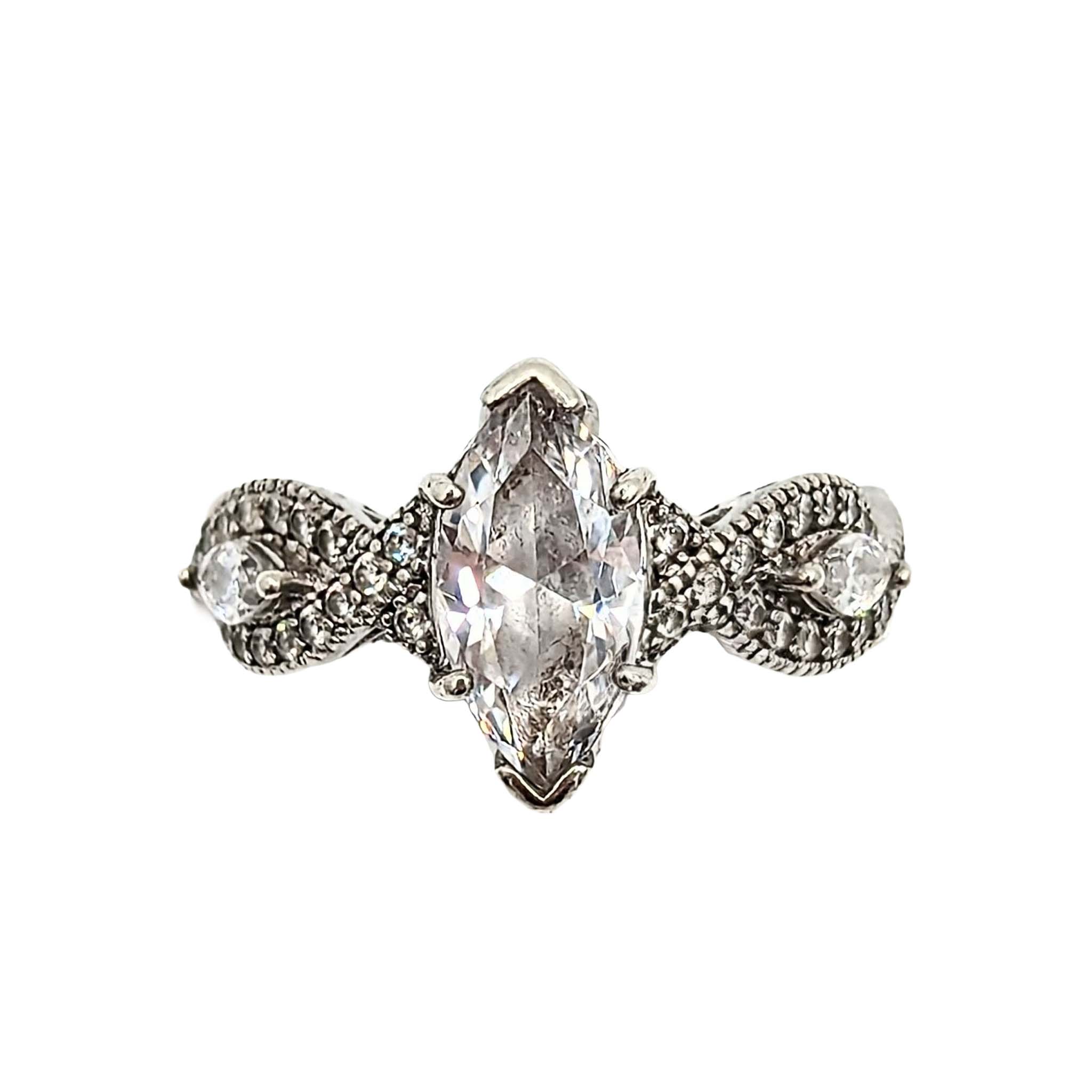 Sterling Silver CZ Marquise Cut Ring Signed JCL .925 Size 6.75 5.5g