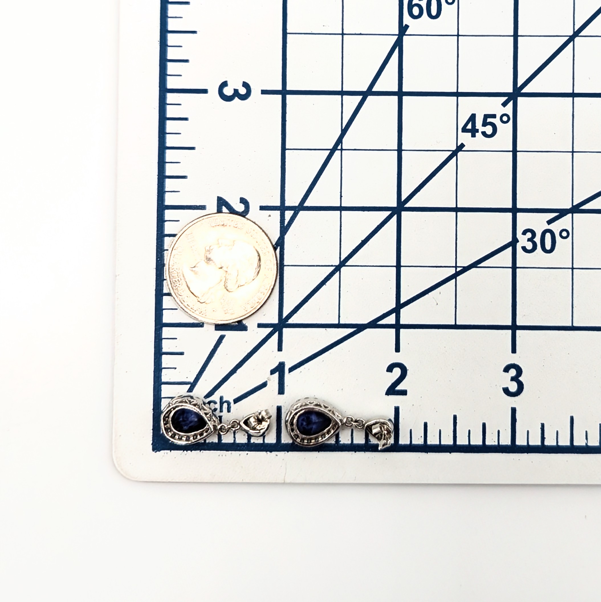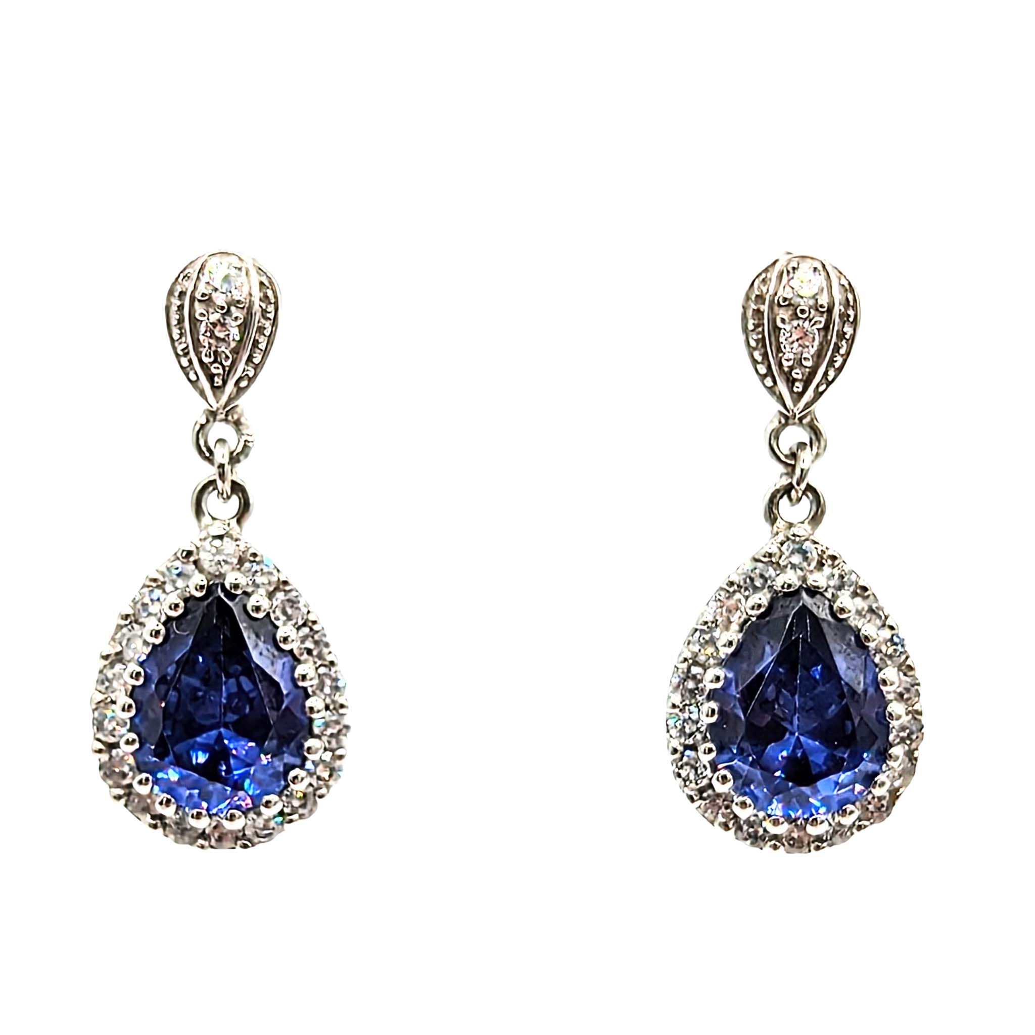 Sterling Silver CZ Drop Stud Earrings Signed 5.2g