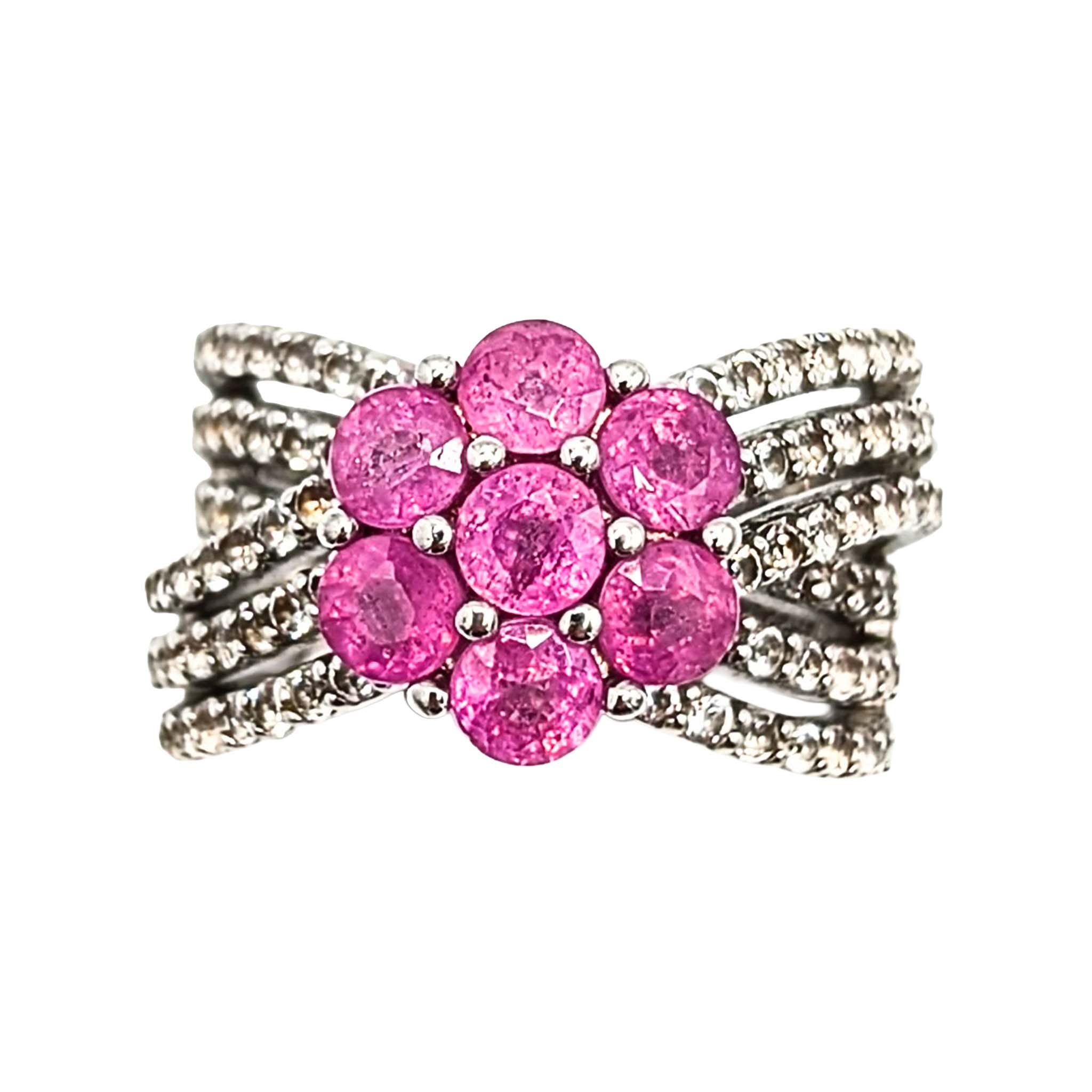 Sterling Silver Ruby White Topaz Cluster Ring Signed RSI .925 Size 7.5 11.2g