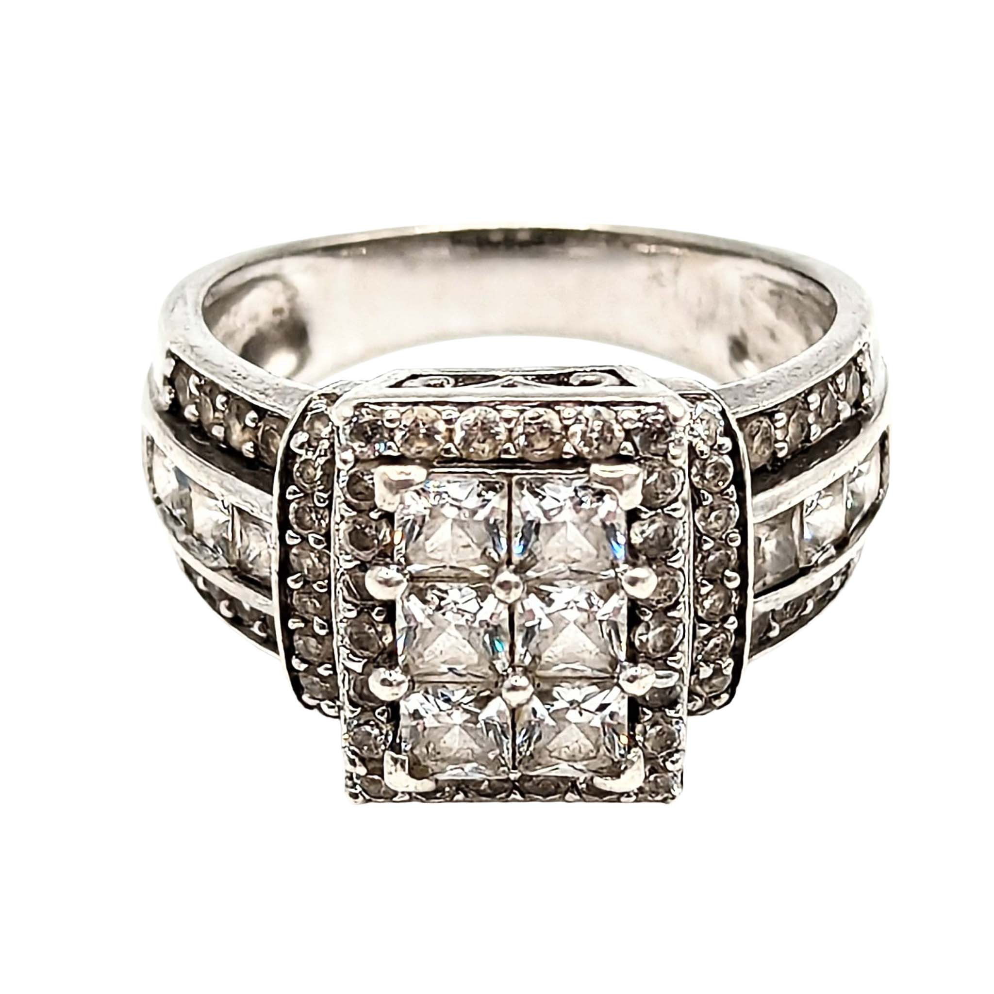 Sterling Silver CZ Rectangle Cluster Ring Signed SG .925 Size 7.75 6g