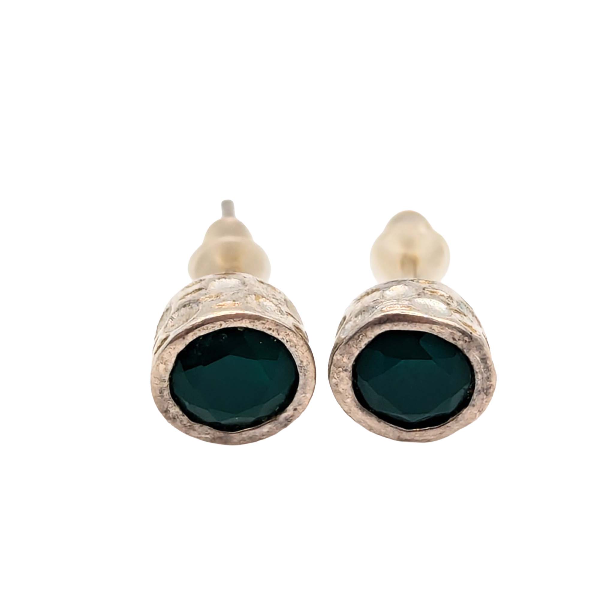 Sterling Silver Emerald Stud Earrings Signed AV .925 1.9g