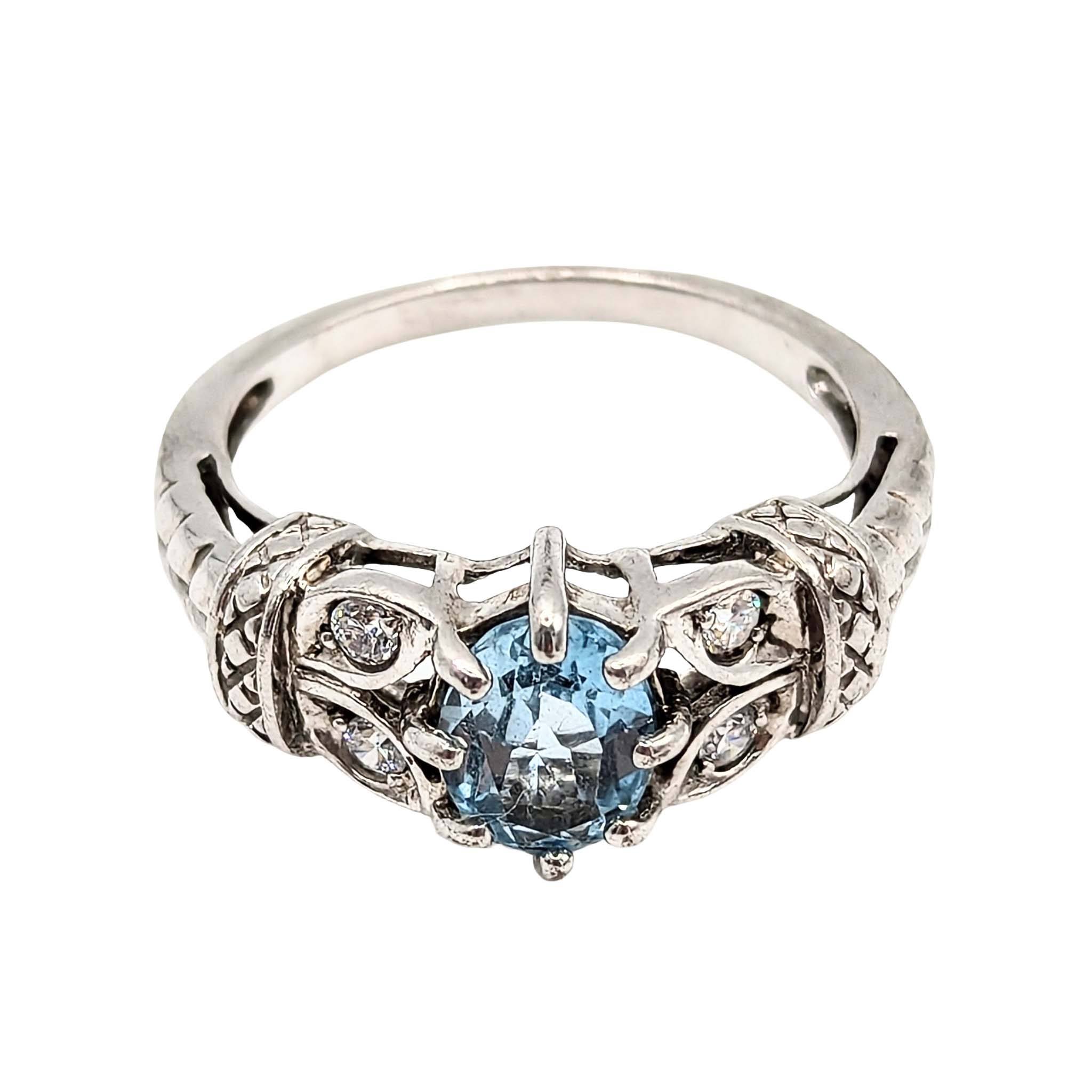Sterling Silver Topaz CZ Oval Ring Signed RJ .925 Size 7.5 3.4g