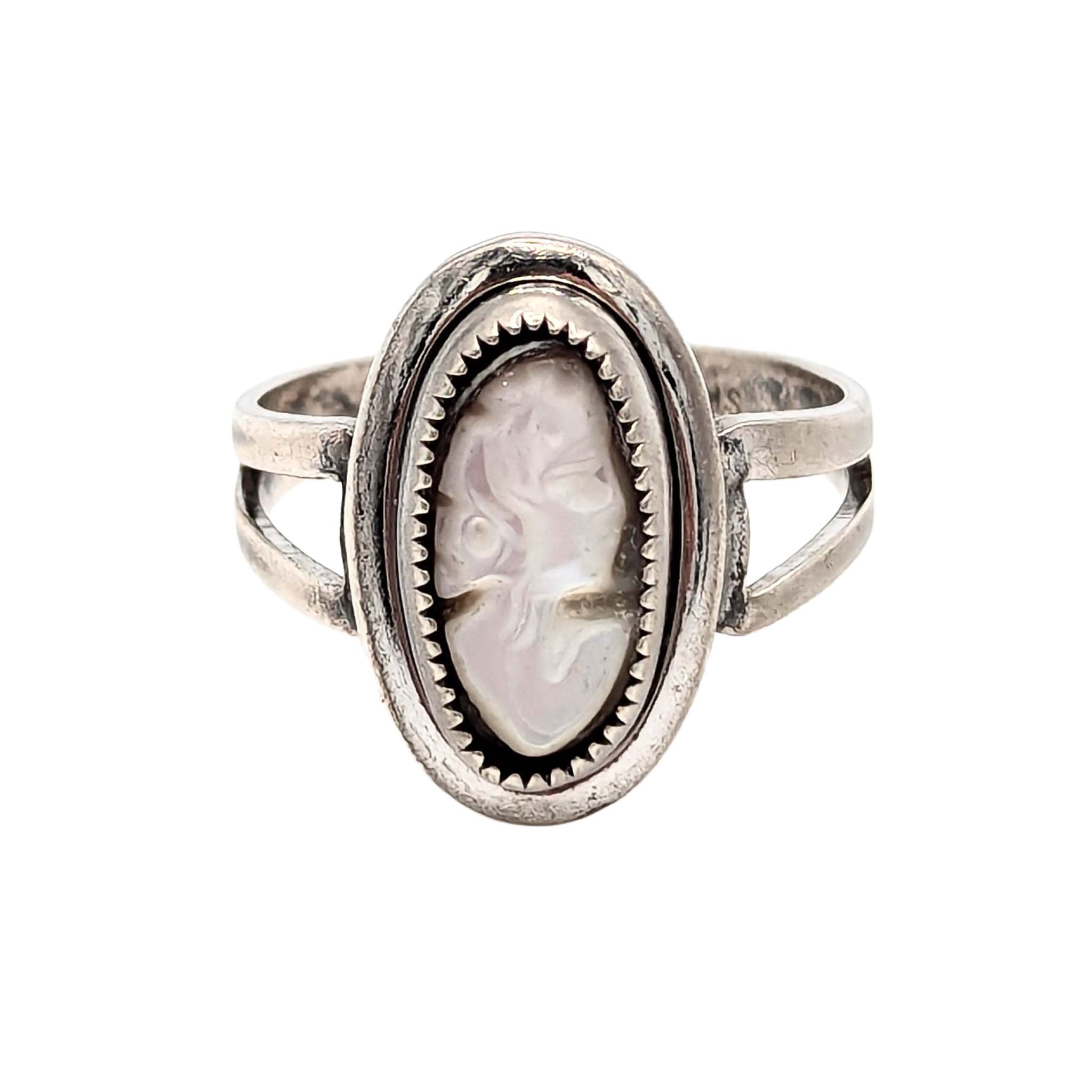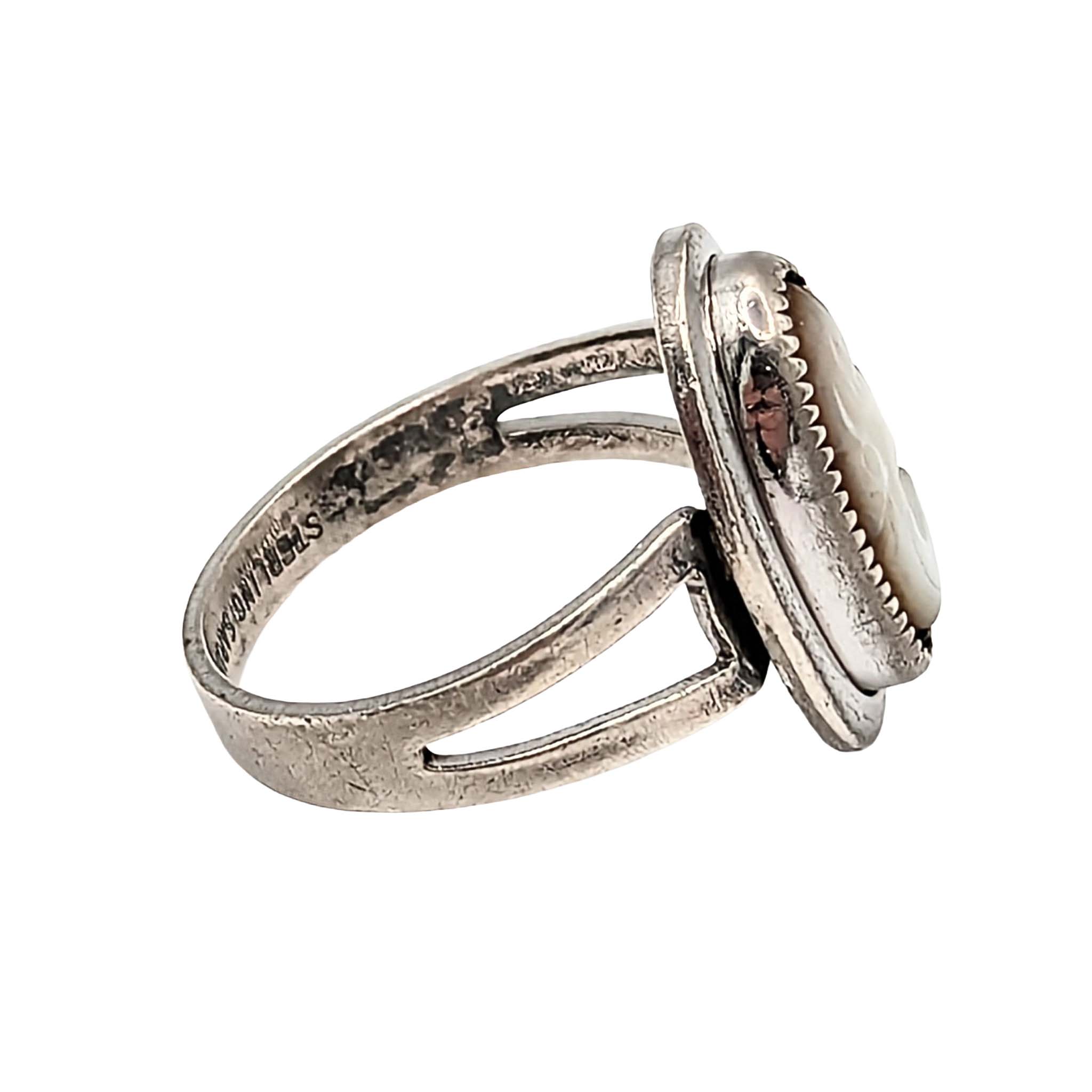 Sarah Coventry Sterling Silver Abalone Carved Cameo Ring Signed Size 6.75 3.4g
