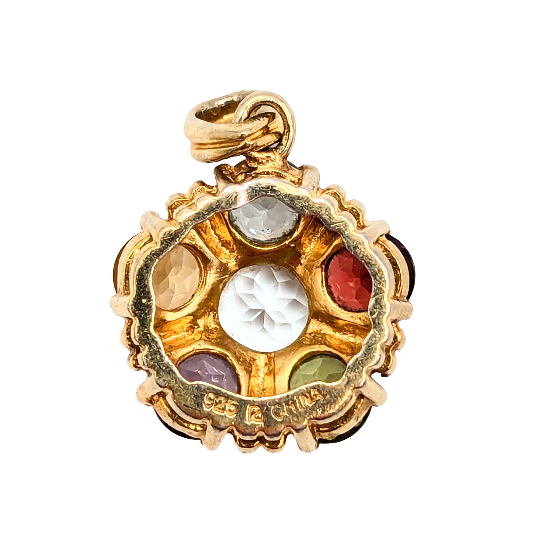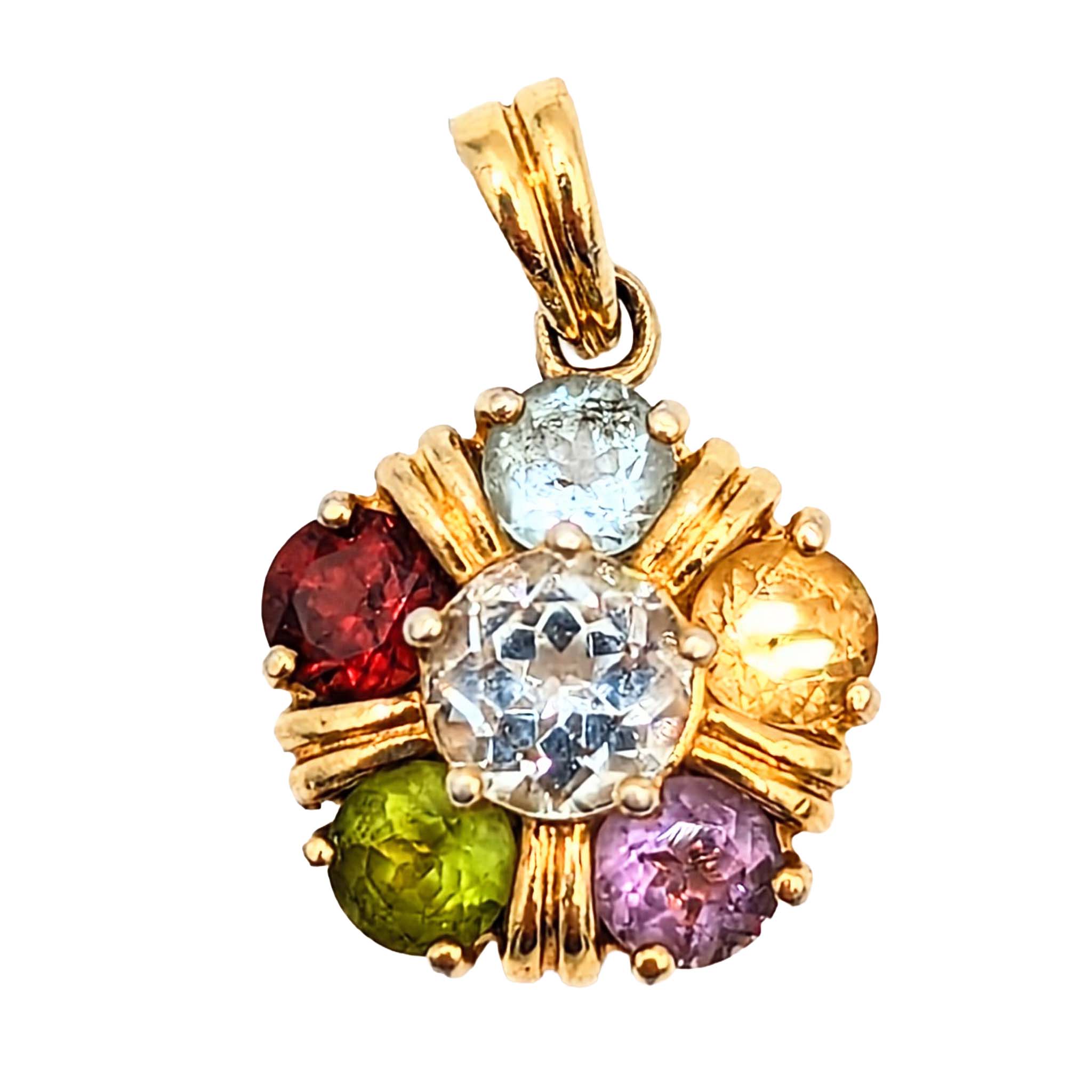 Ross Simons Sterling Silver Gold Over Garnet Amethyst Citrine Peridot Topaz Cluster Pendant Signed 4.4g