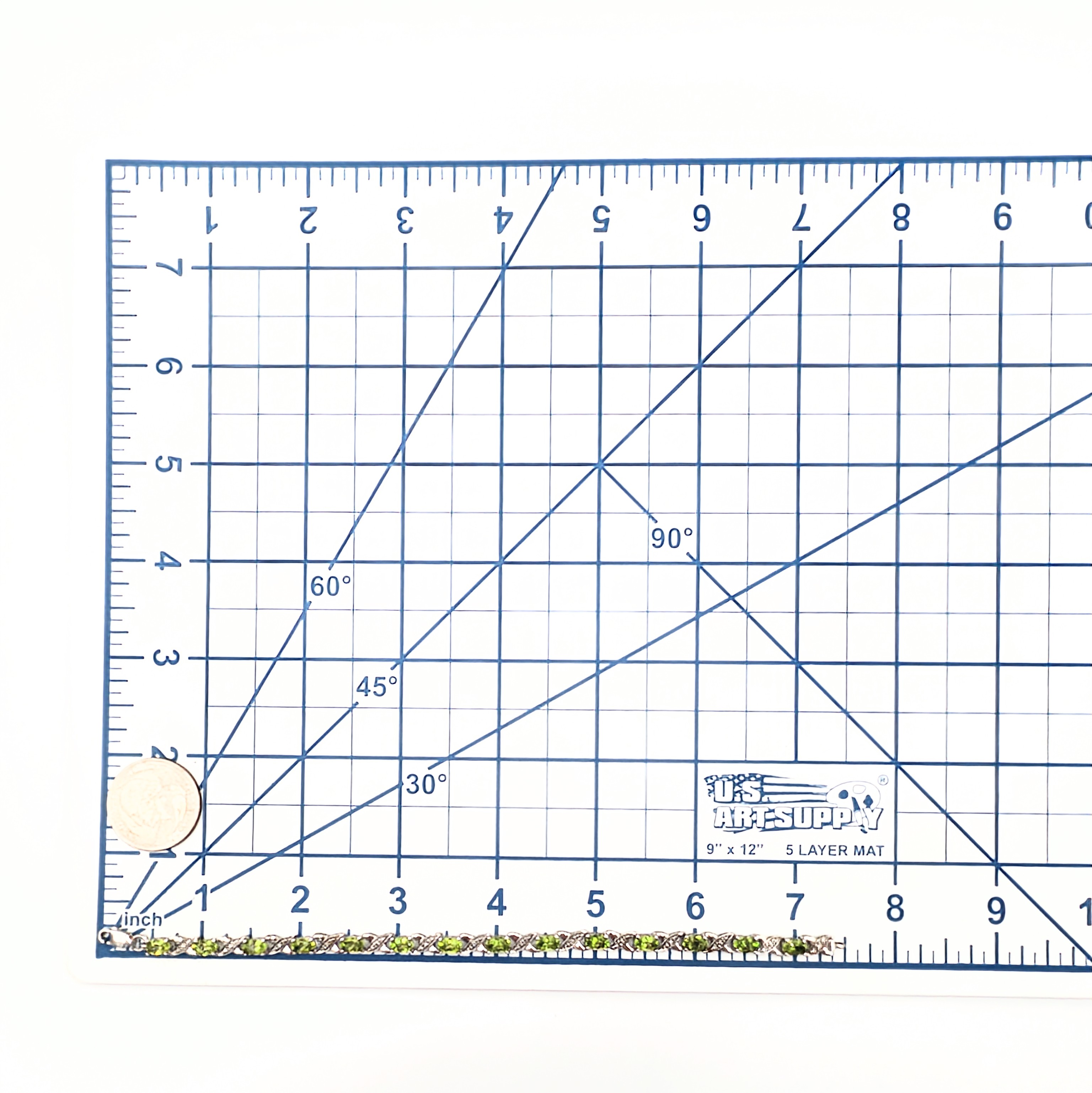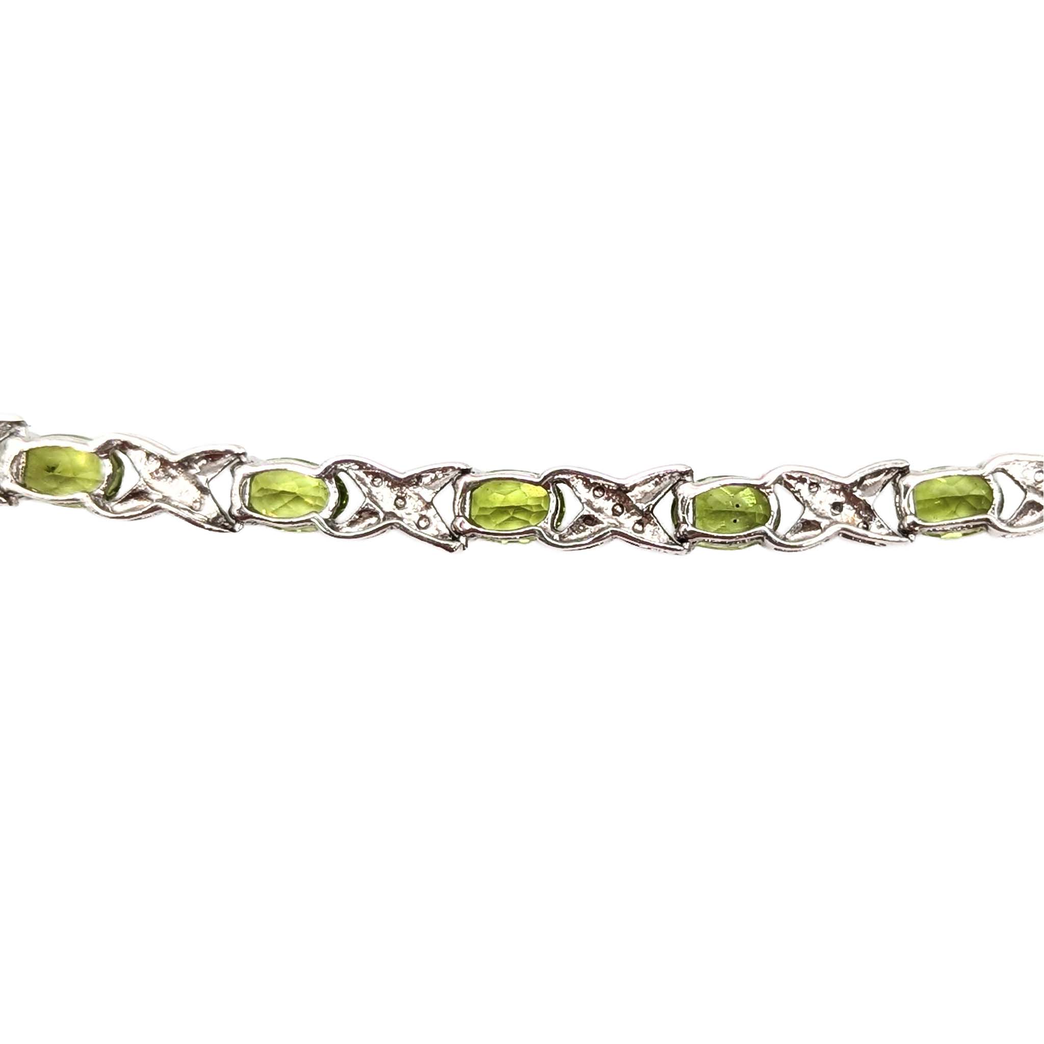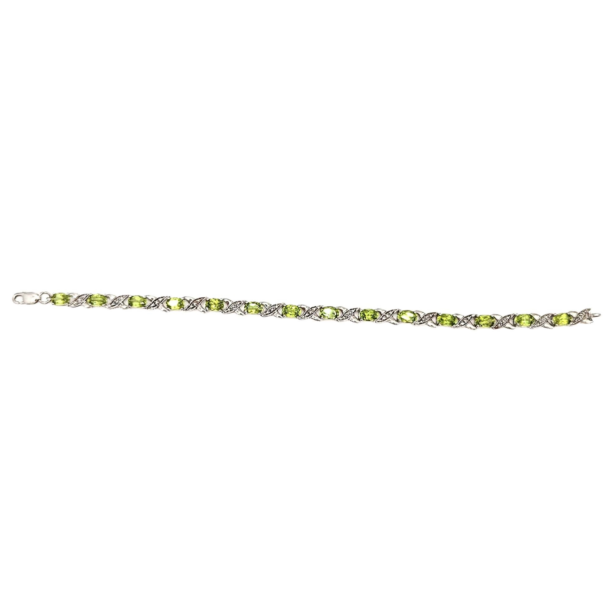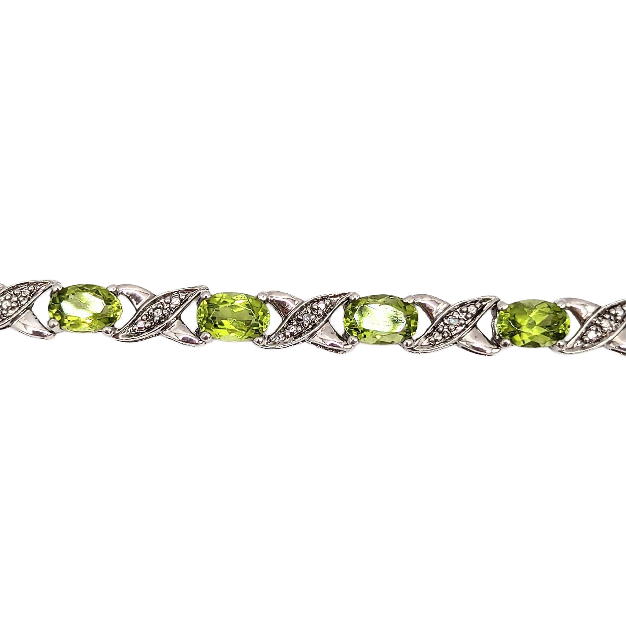 Sterling Silver Peridot Diamond Tennis Bracelet Signed 8.5in Length 7.7g