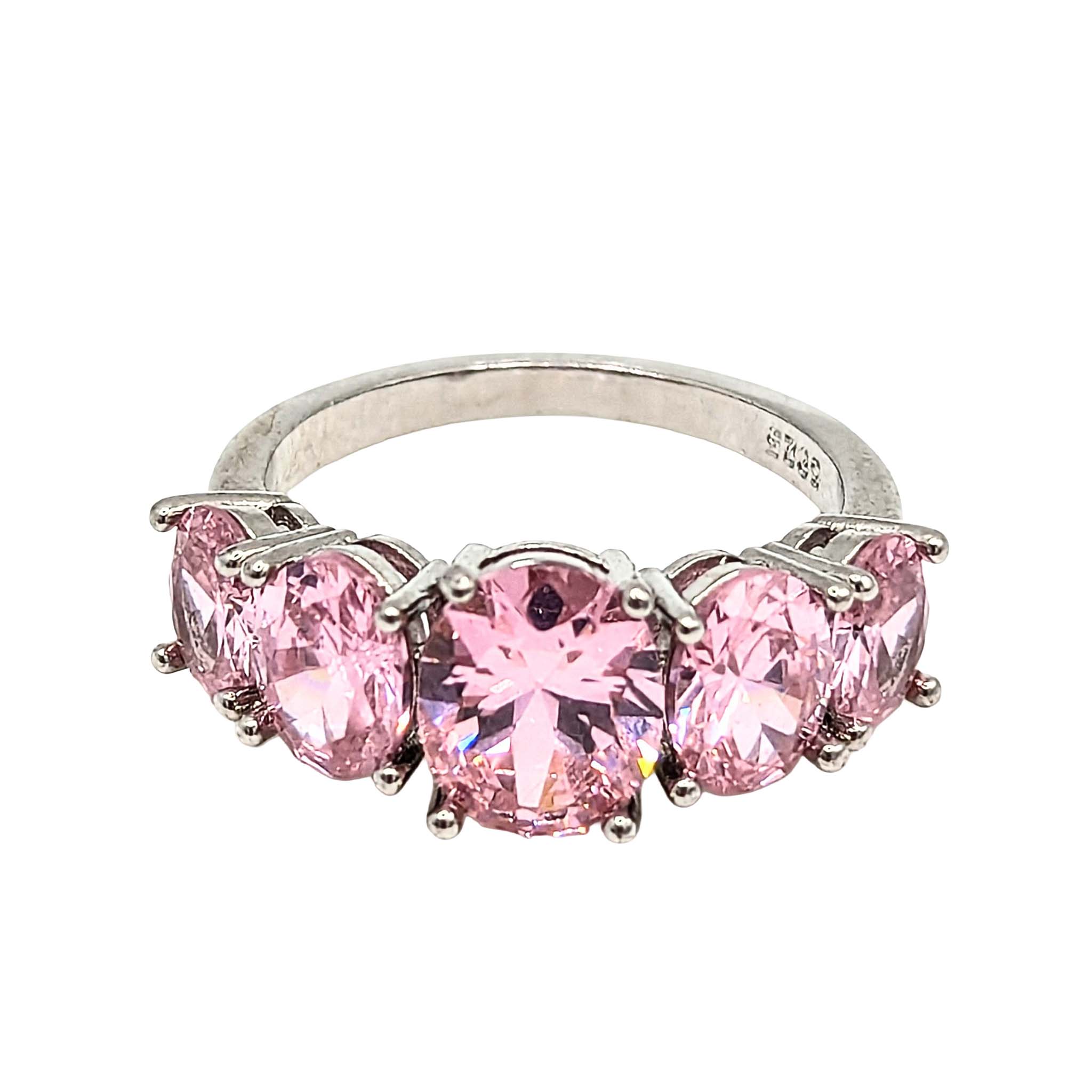 Sterling Silver Pink Tourmaline 5 Stone Ring Signed S .925 Size 9.75 5.6g