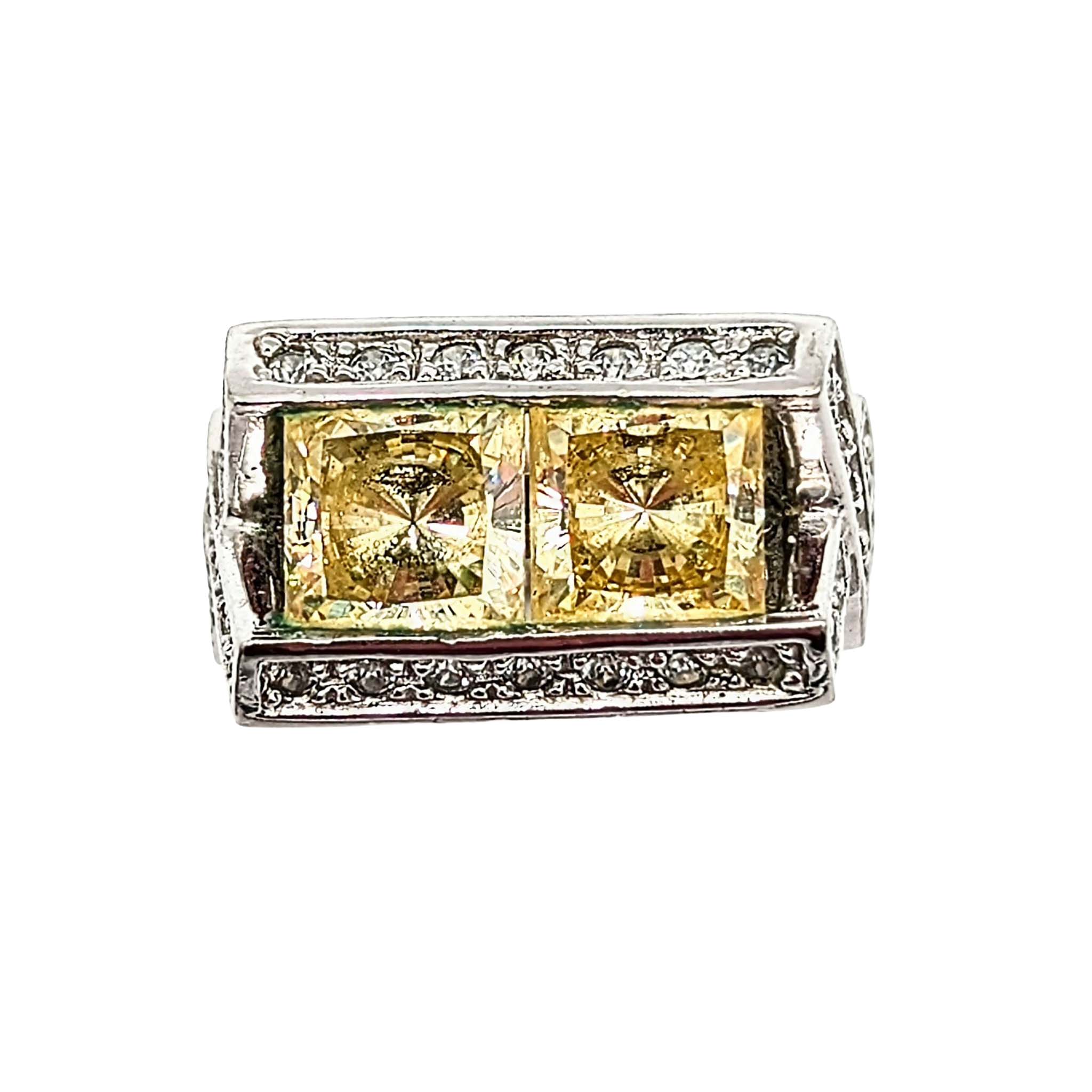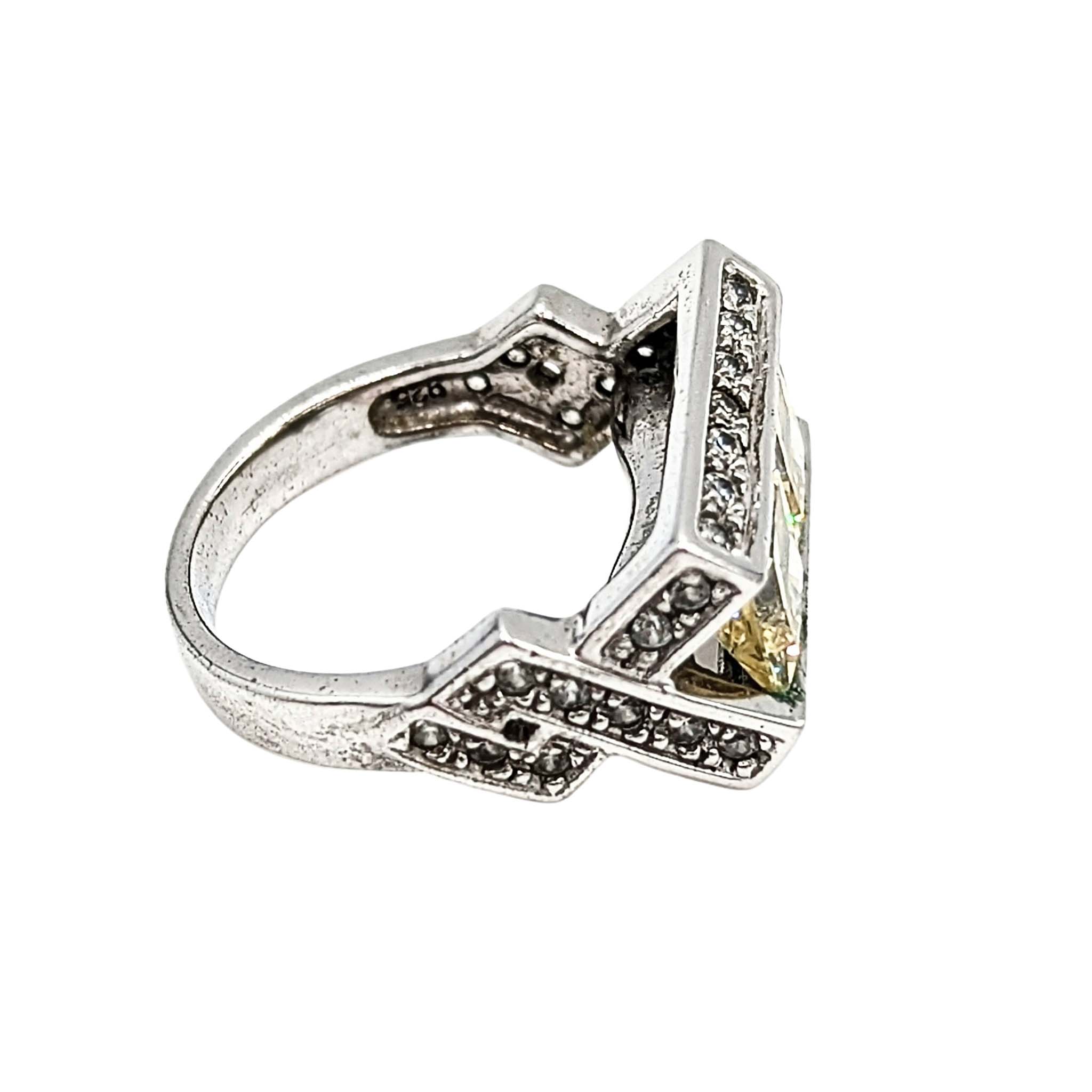 Sterling Silver Yellow CZ Double Stone Ring with X Shoulder Details Signed Size 7.75 7.7g