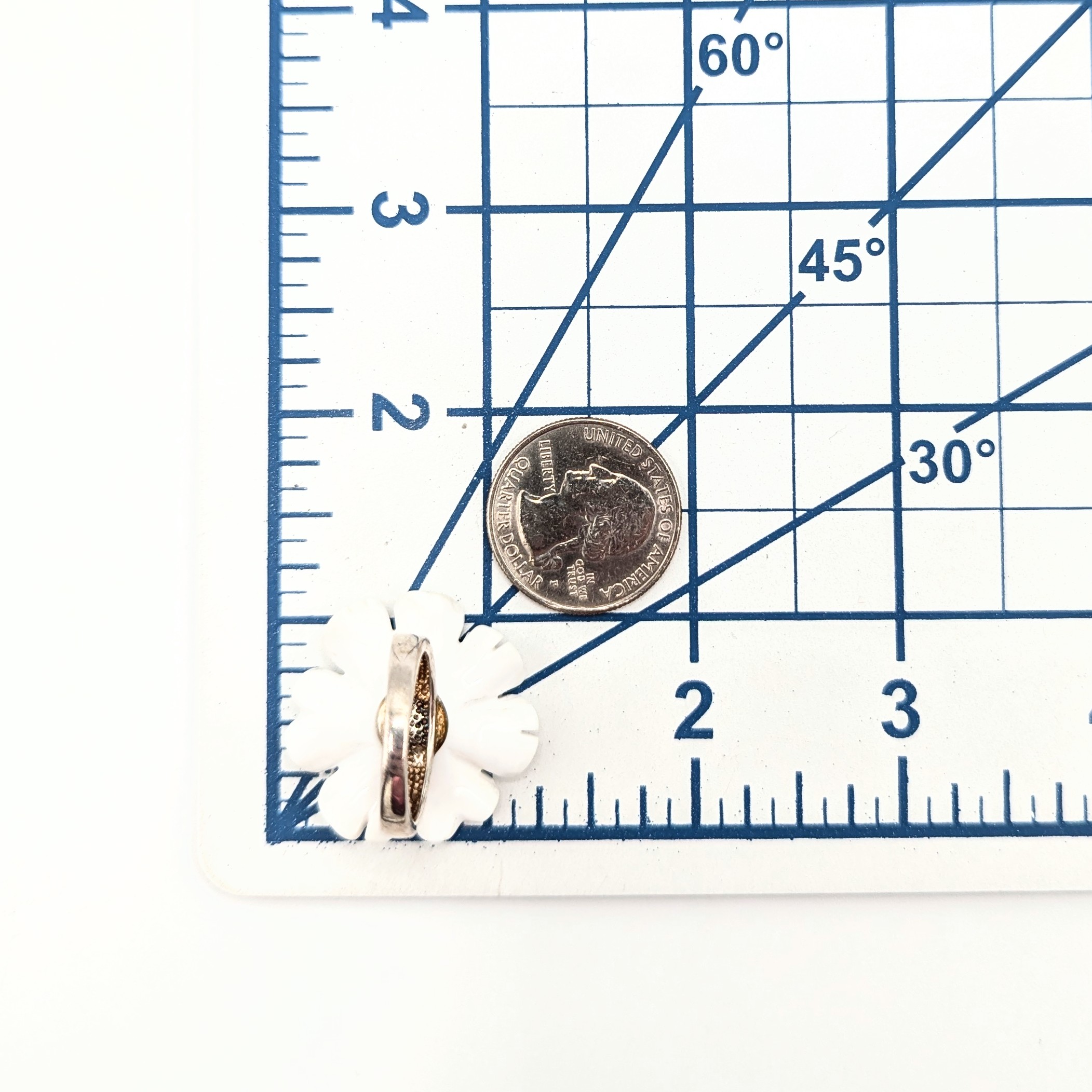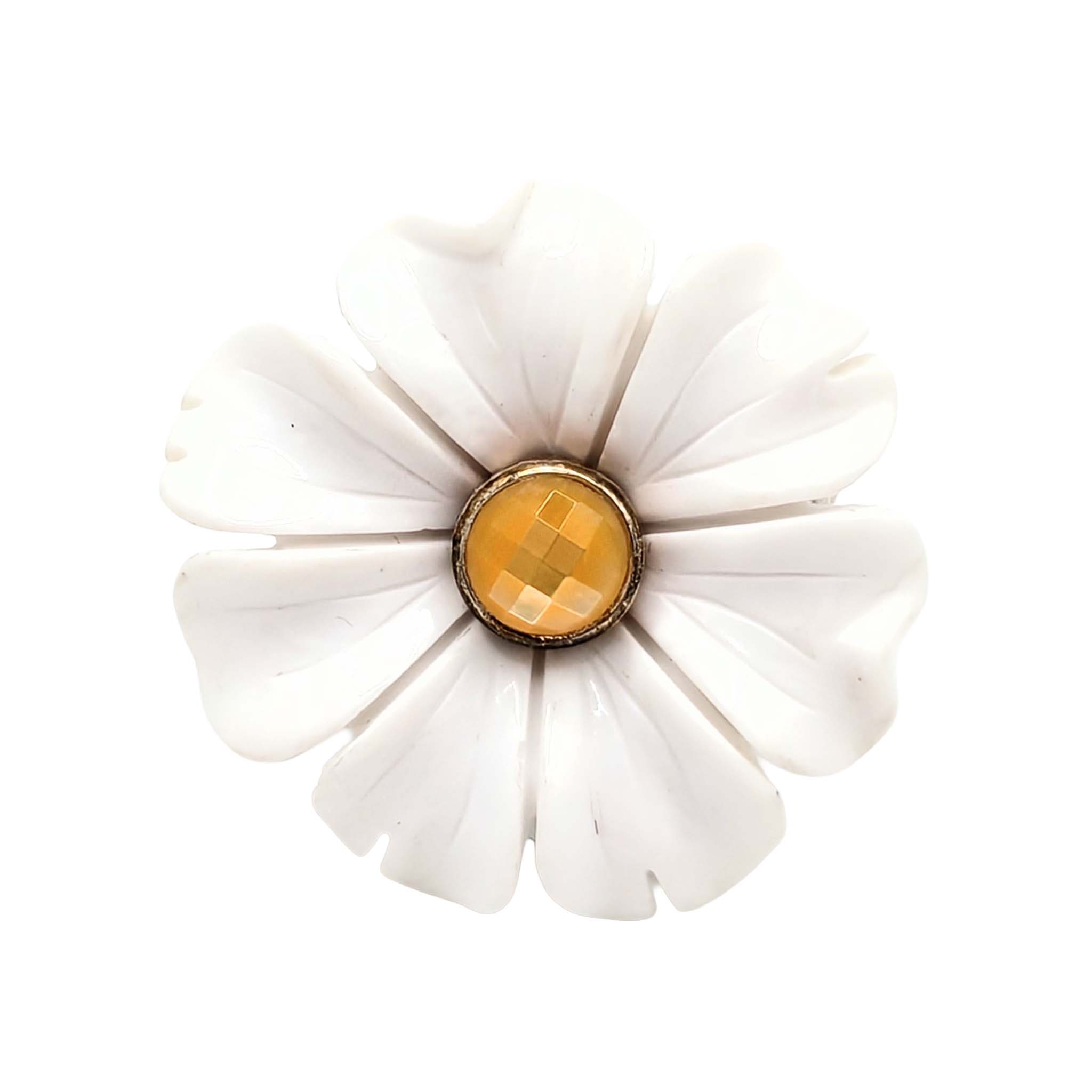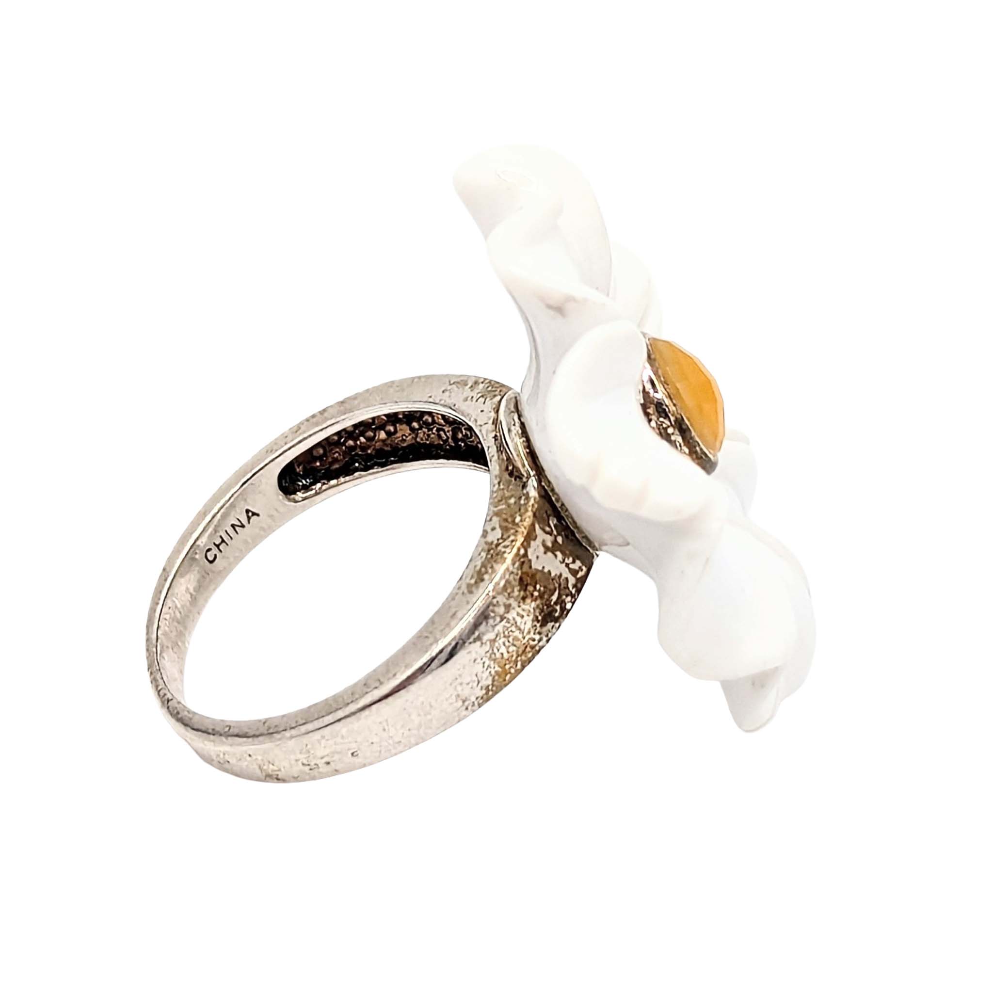 Sterling Silver CZ Center White Flower Ring Signed WK .925 Size 7.5 9g