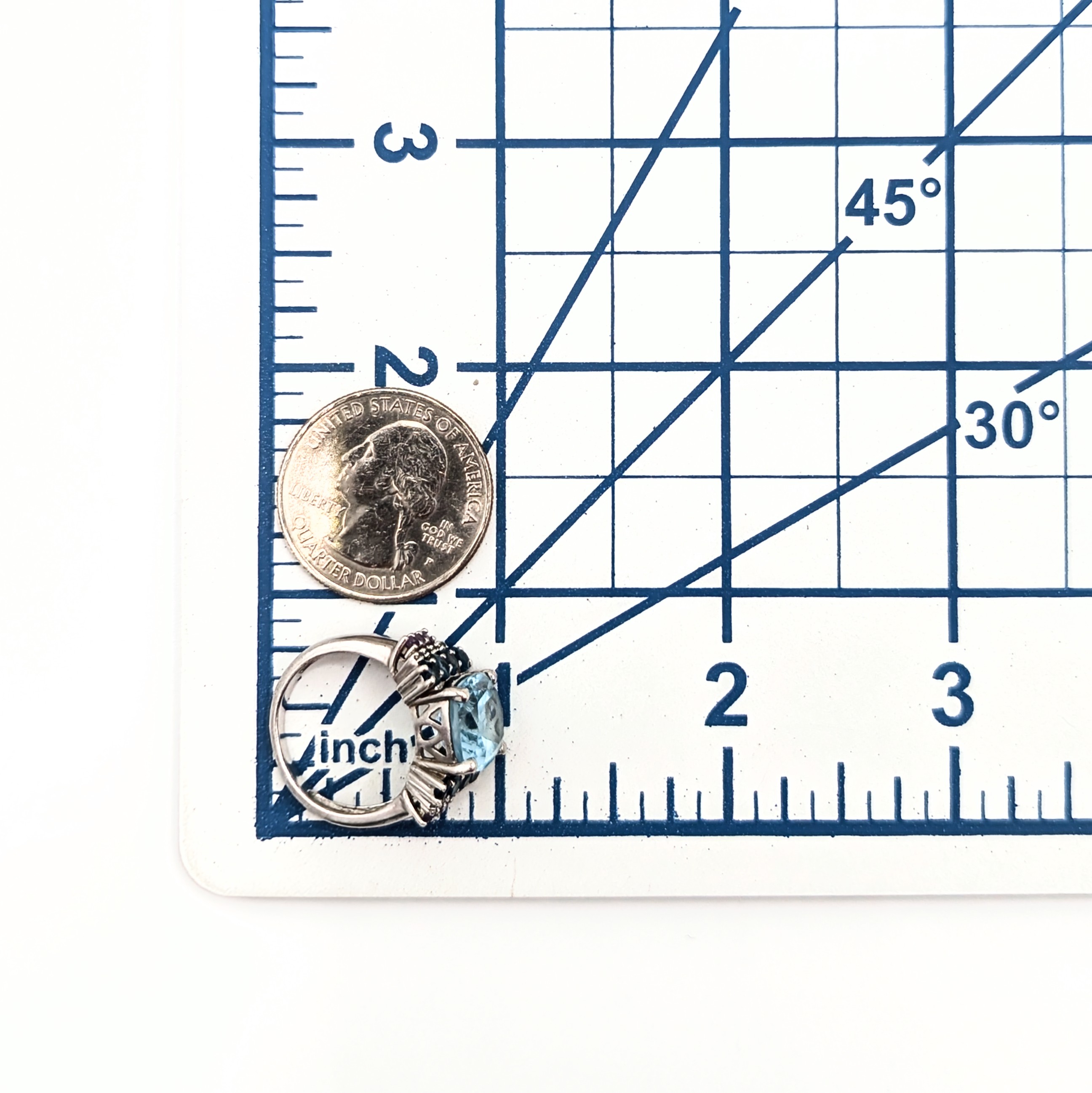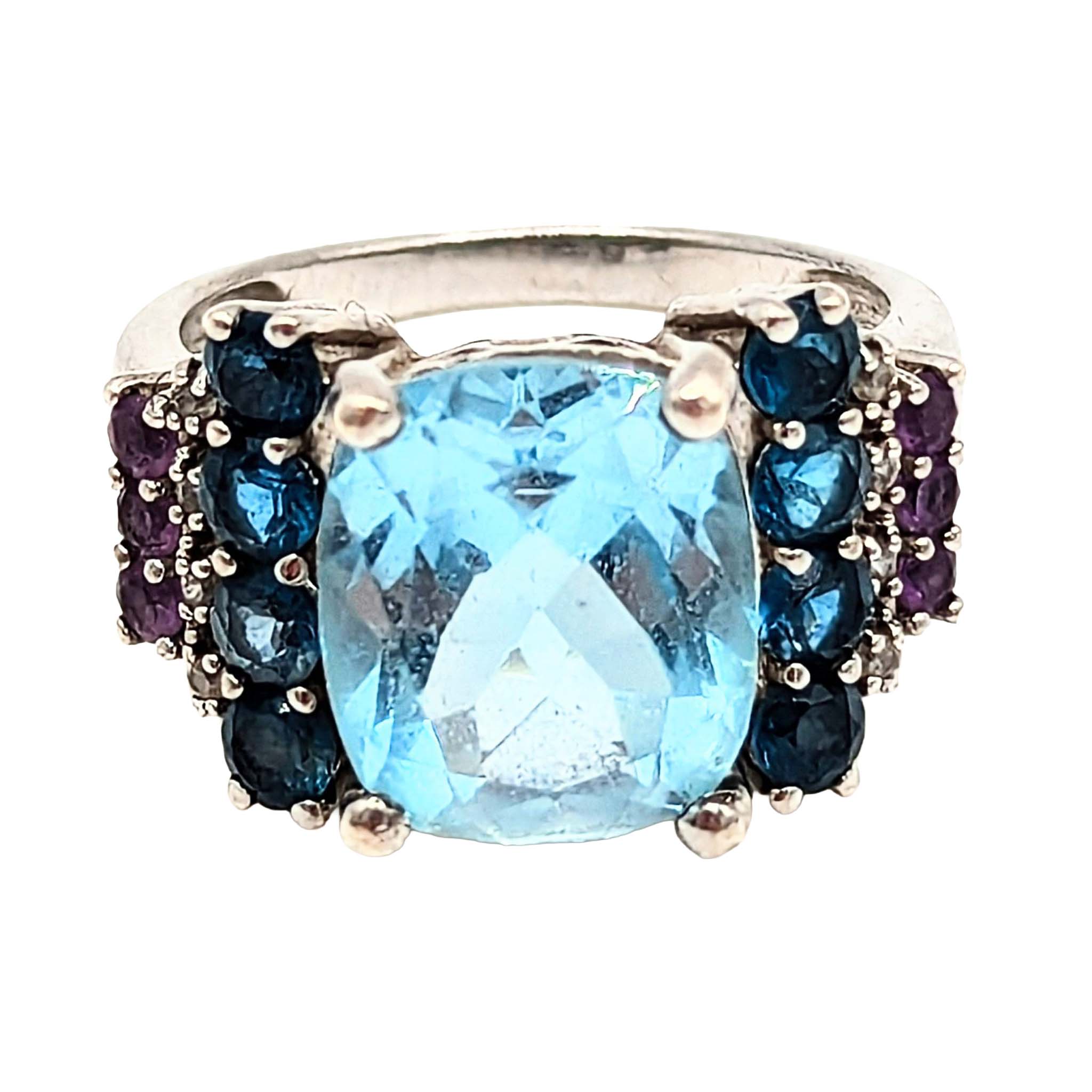 Kit Heath Sterling Silver Topaz Tourmaline Iolite Rectangle Ring Signed Size 6.75 5.7g