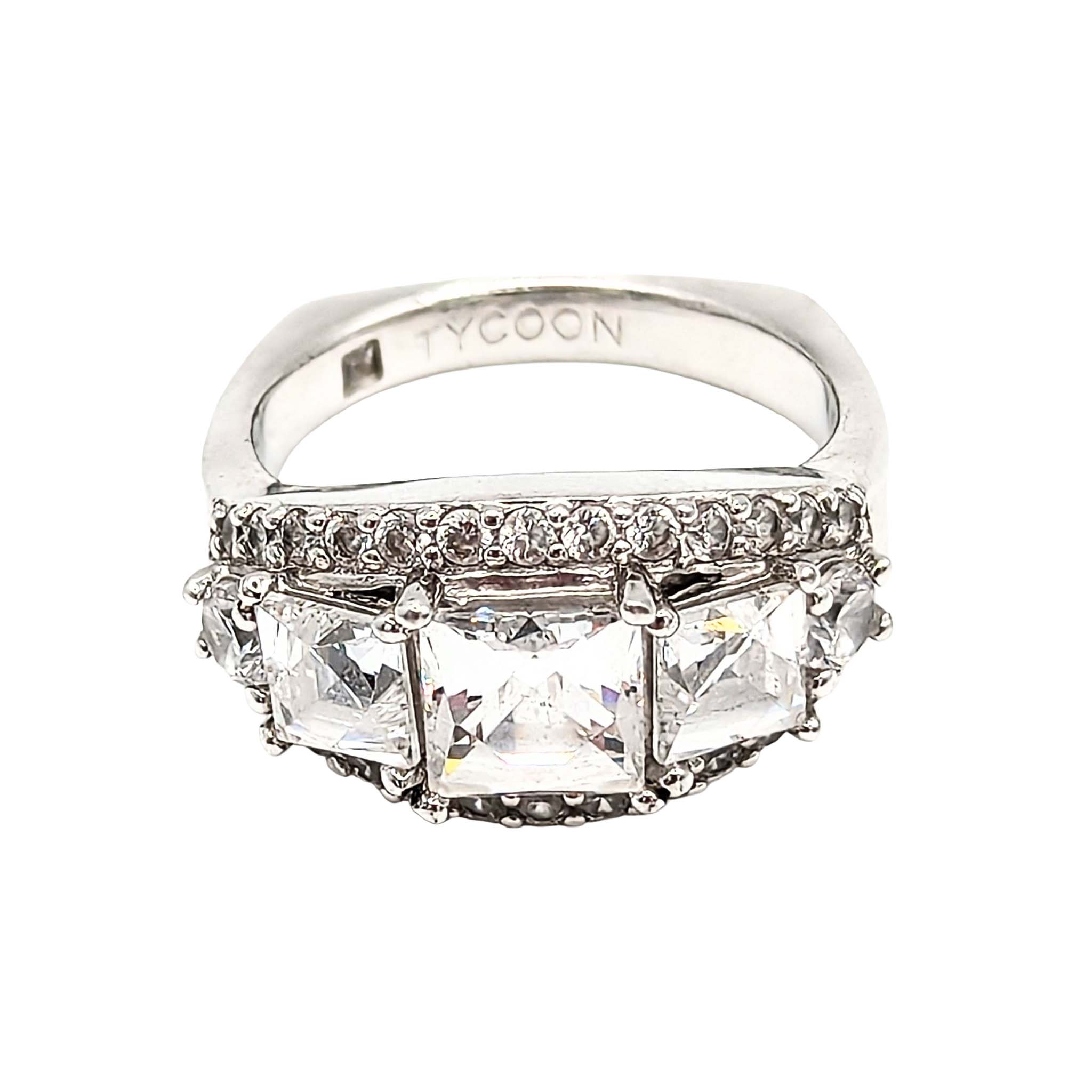 Tycoon Sterling Silver CZ 3 Stone Square Band Ring Signed Size 7.75 7.8g