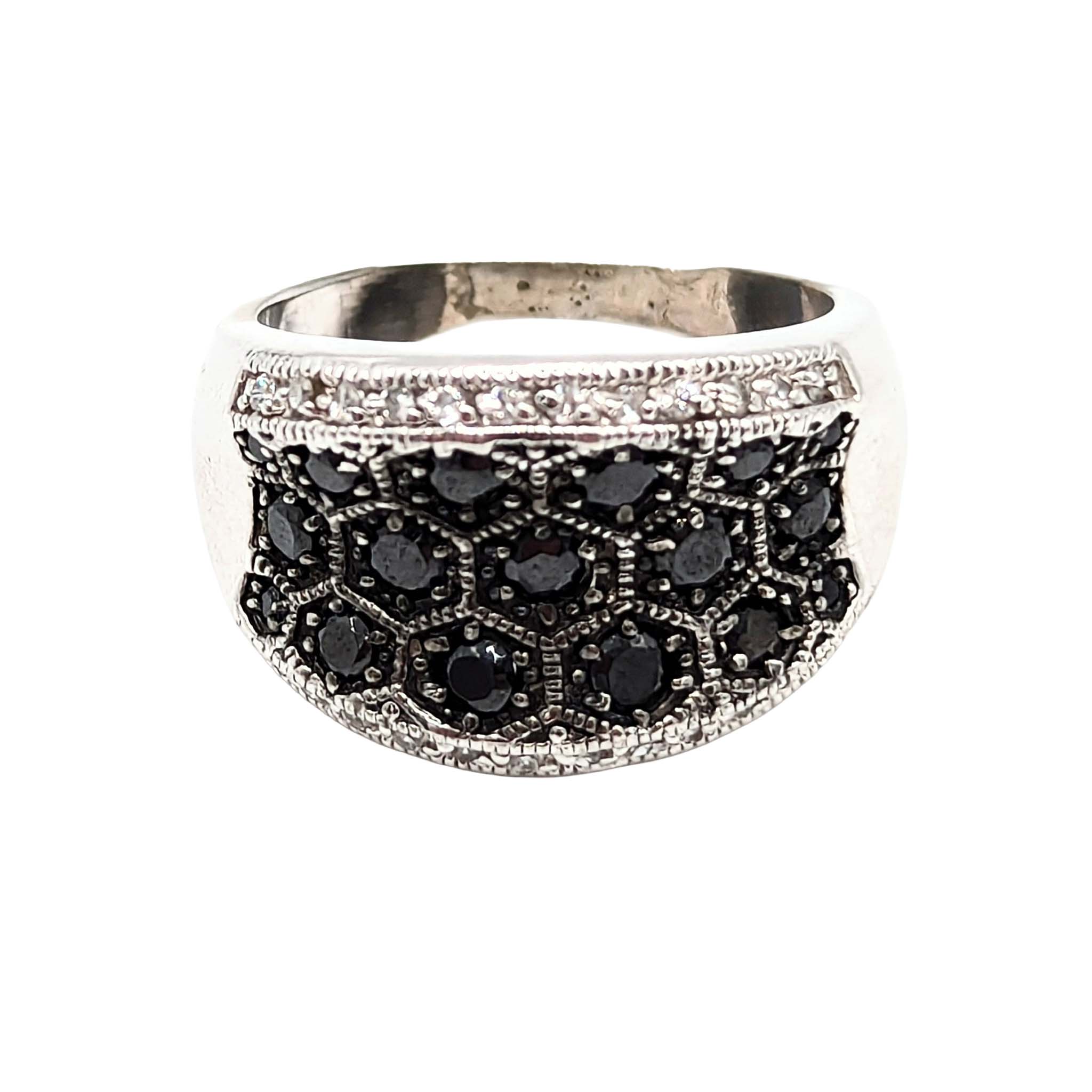 Sterling Silver Black White CZ Honeycomb Band Ring
