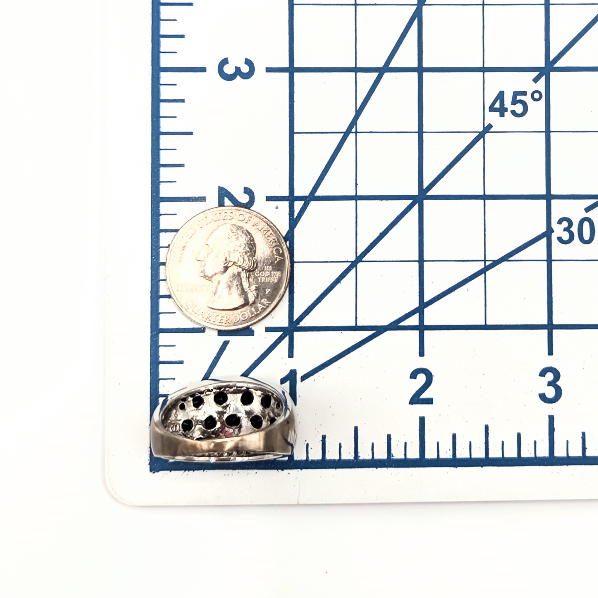 Sterling Silver Black White Honeycomb Band Ring Signed RR Size 11.5 11.2g