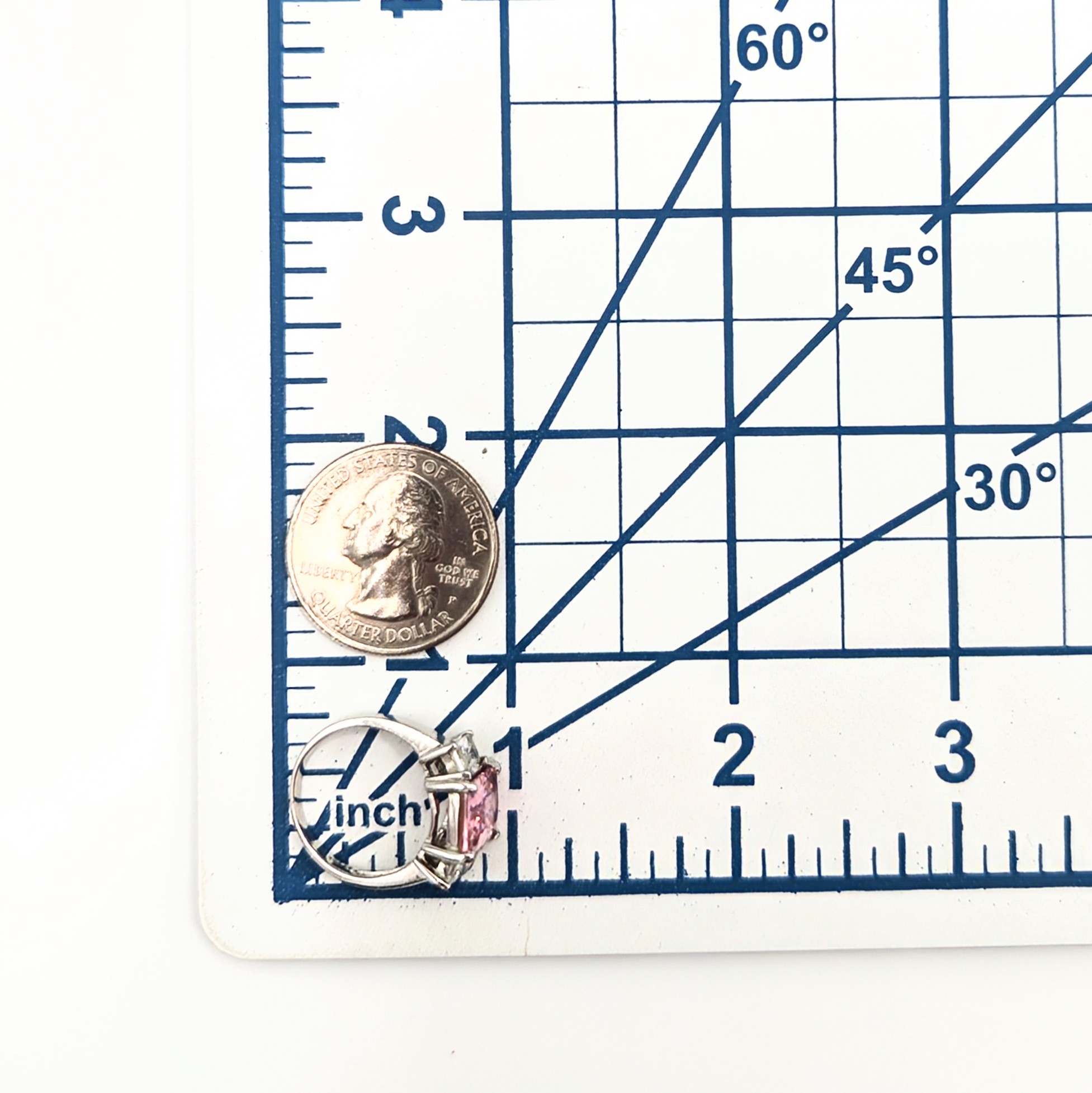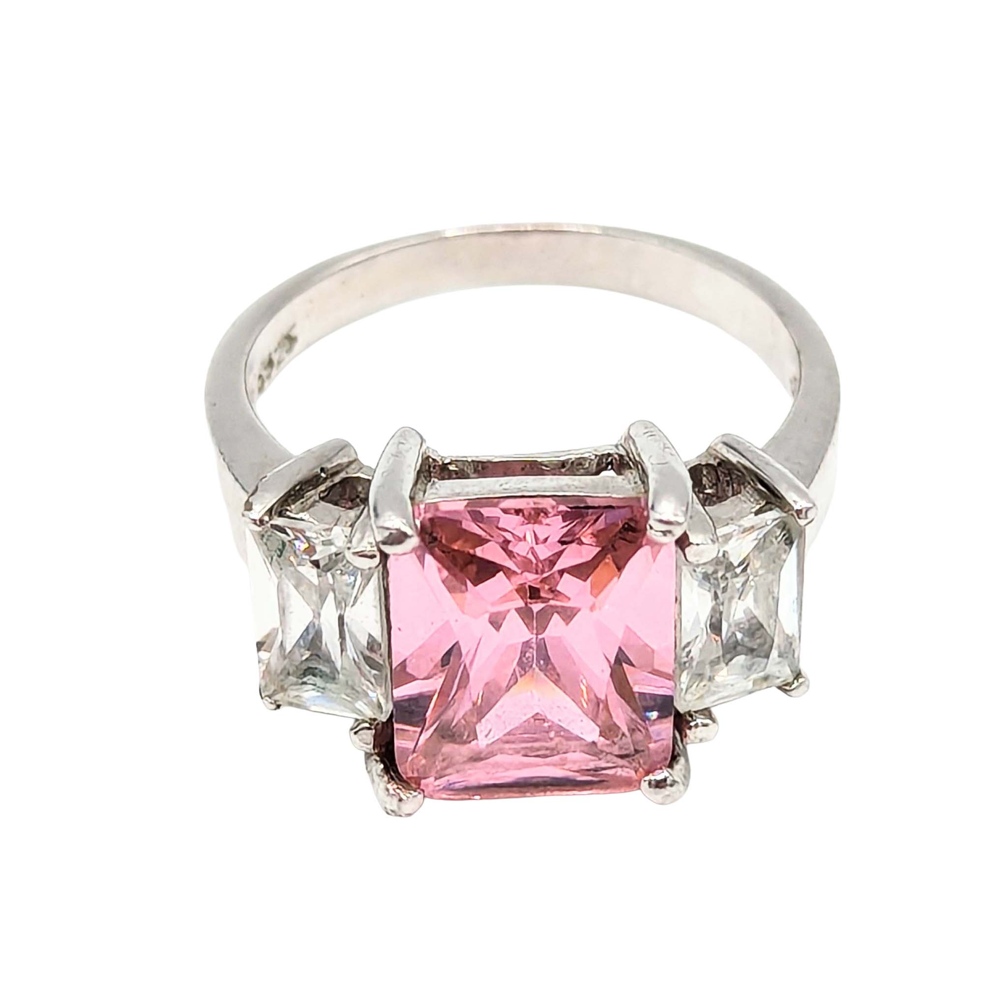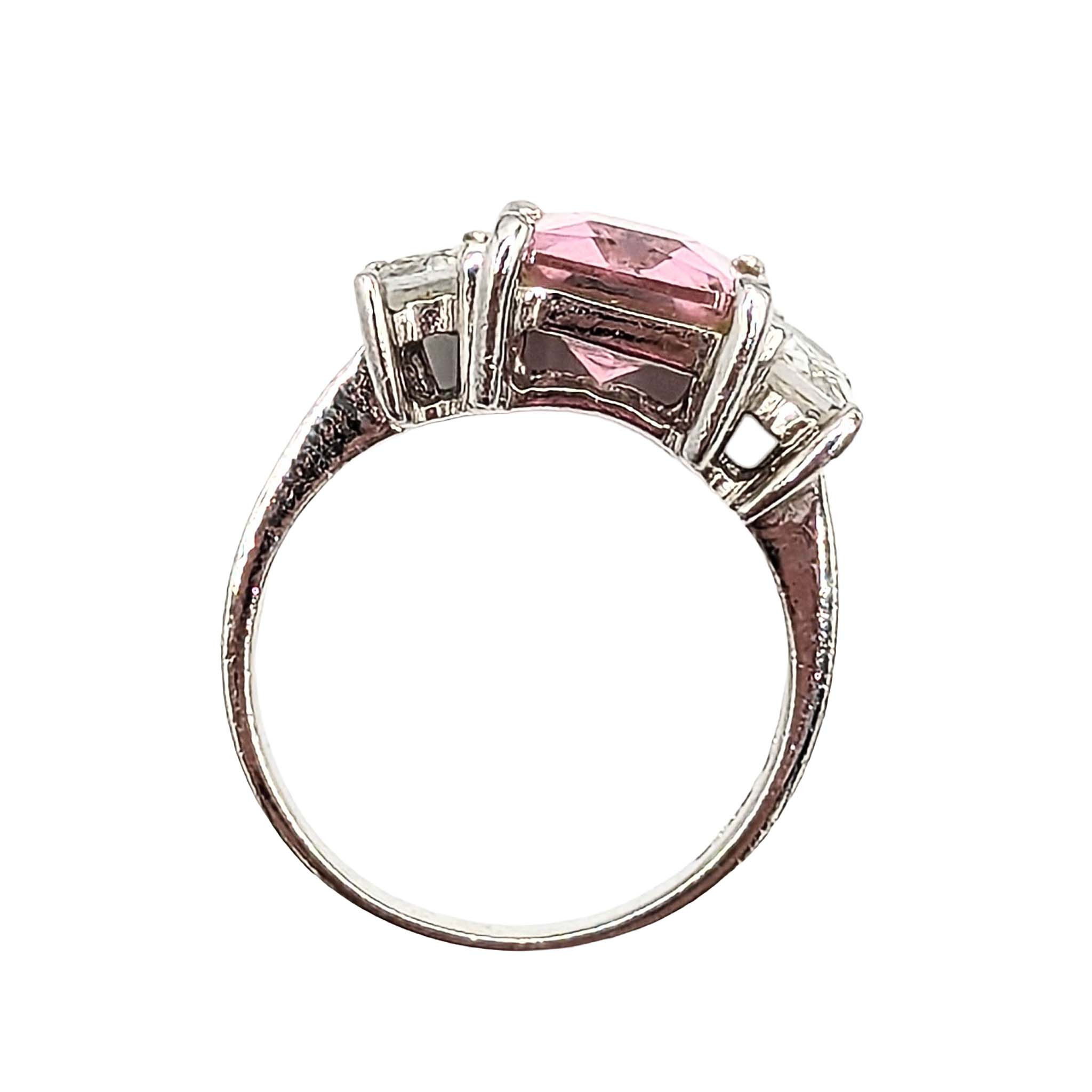 Sterling Silver Pink Tourmaline CZ Ring Size 7.5 4.1g