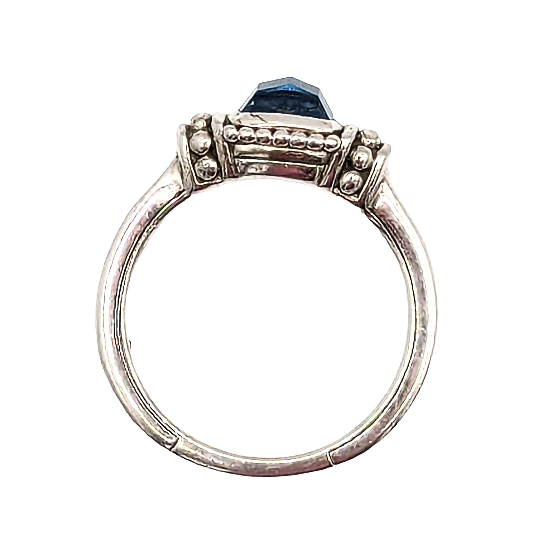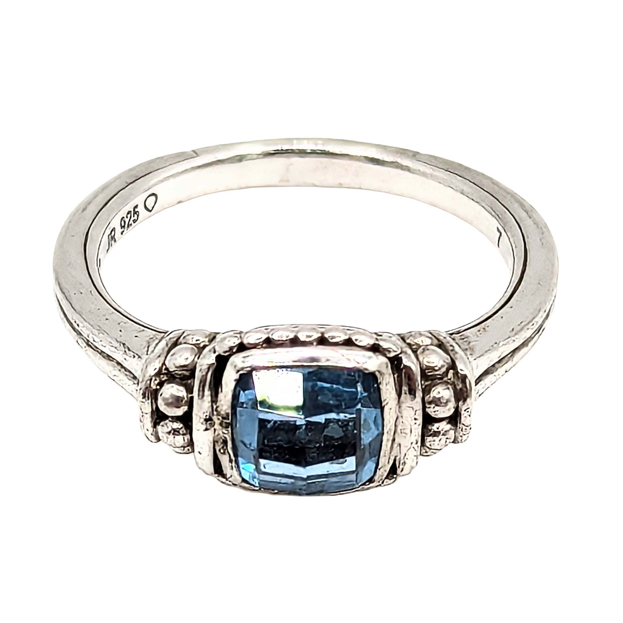 Sterling Silver Cushion Cut Blue Topaz Ring Signed JR .925 Size 6.75 3.5g