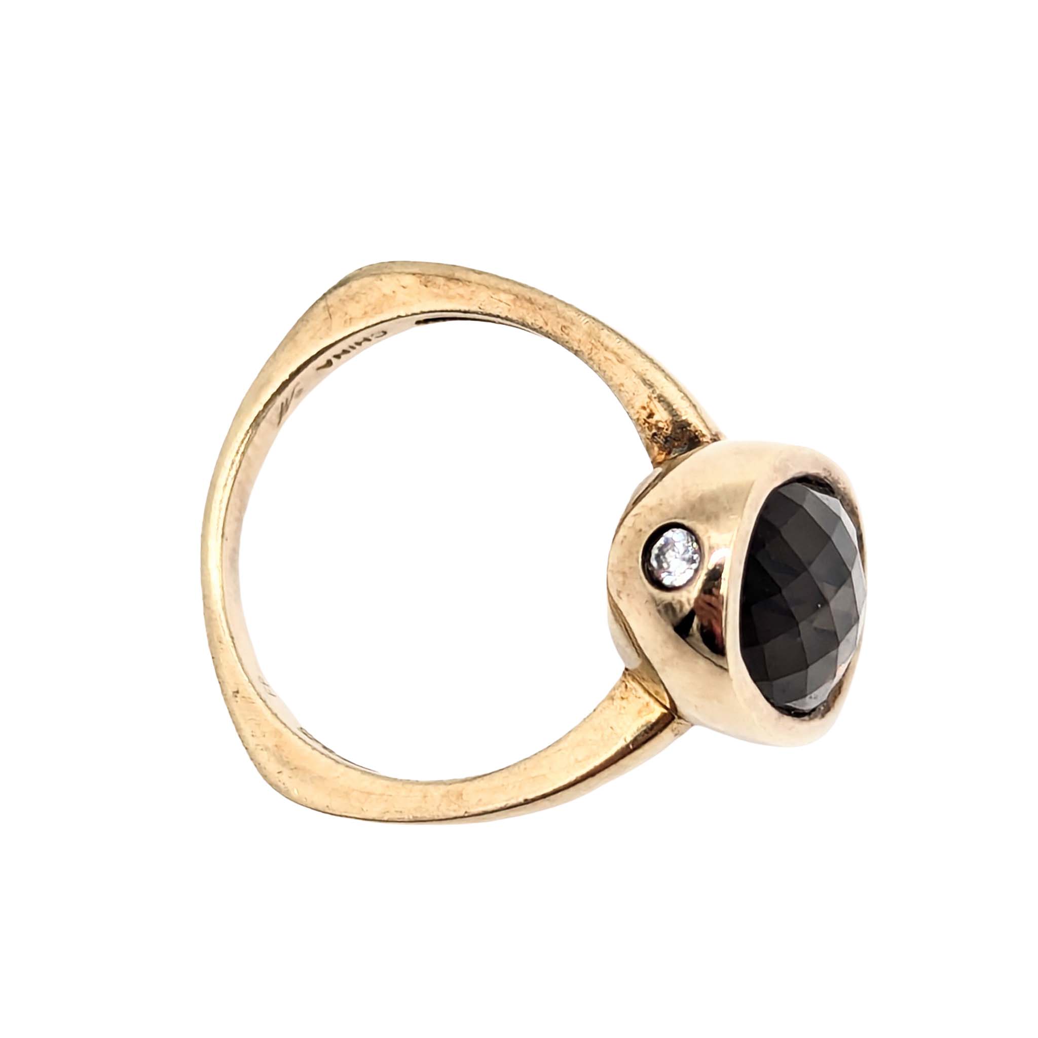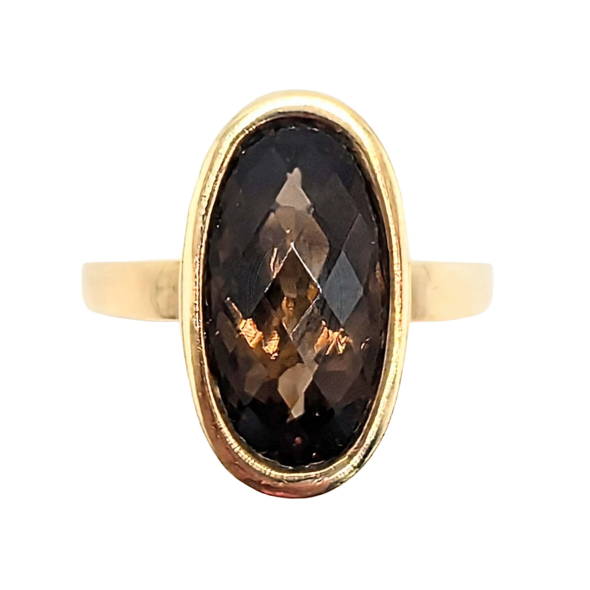Gold Over Sterling Silver Smokey Quartz CZ Detail Cushion Cut Ring Signed FP .925 Size 7.5 6.8g