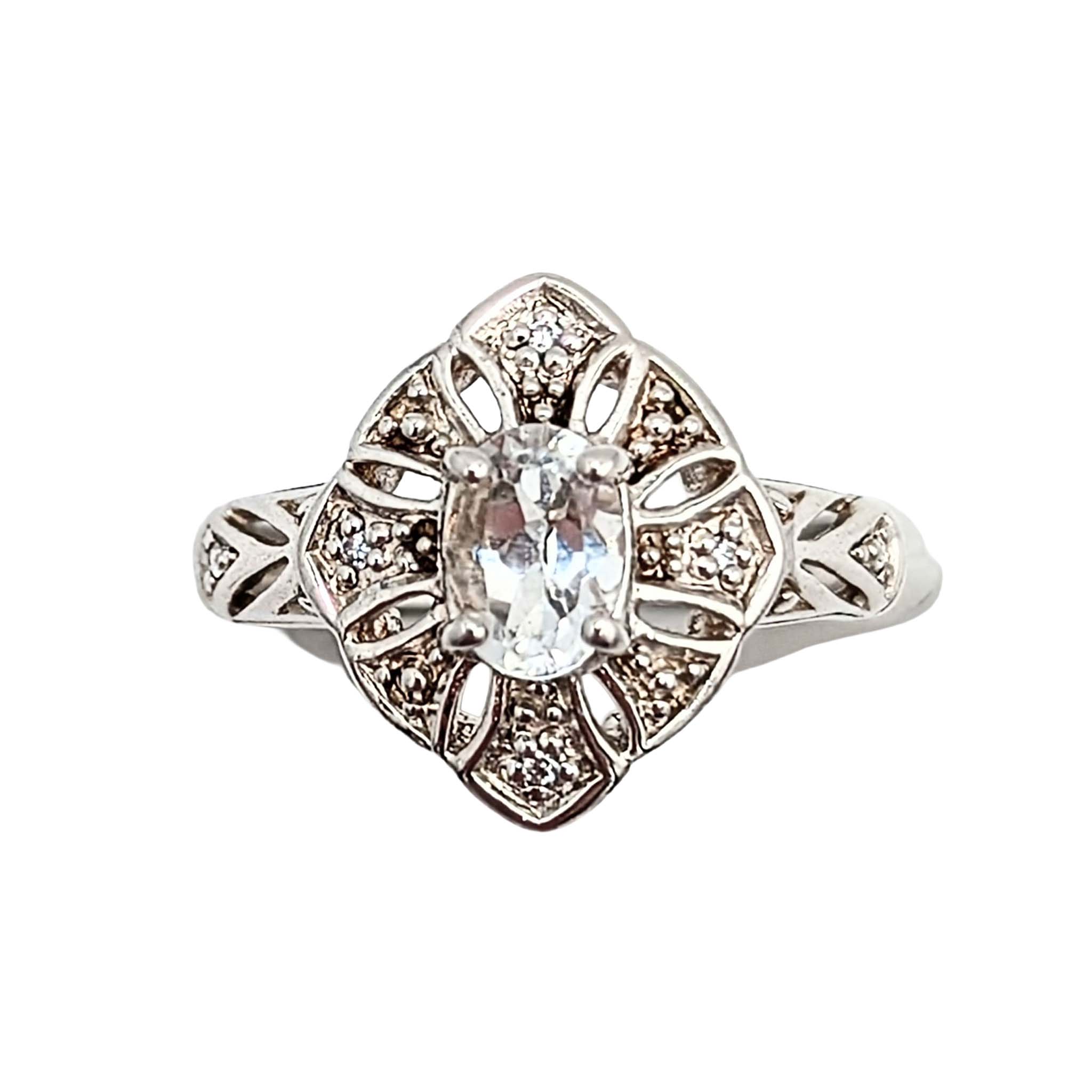 Sterling Silver White Topaz Shield Ring Signed RJB Size 7.5 3.6g