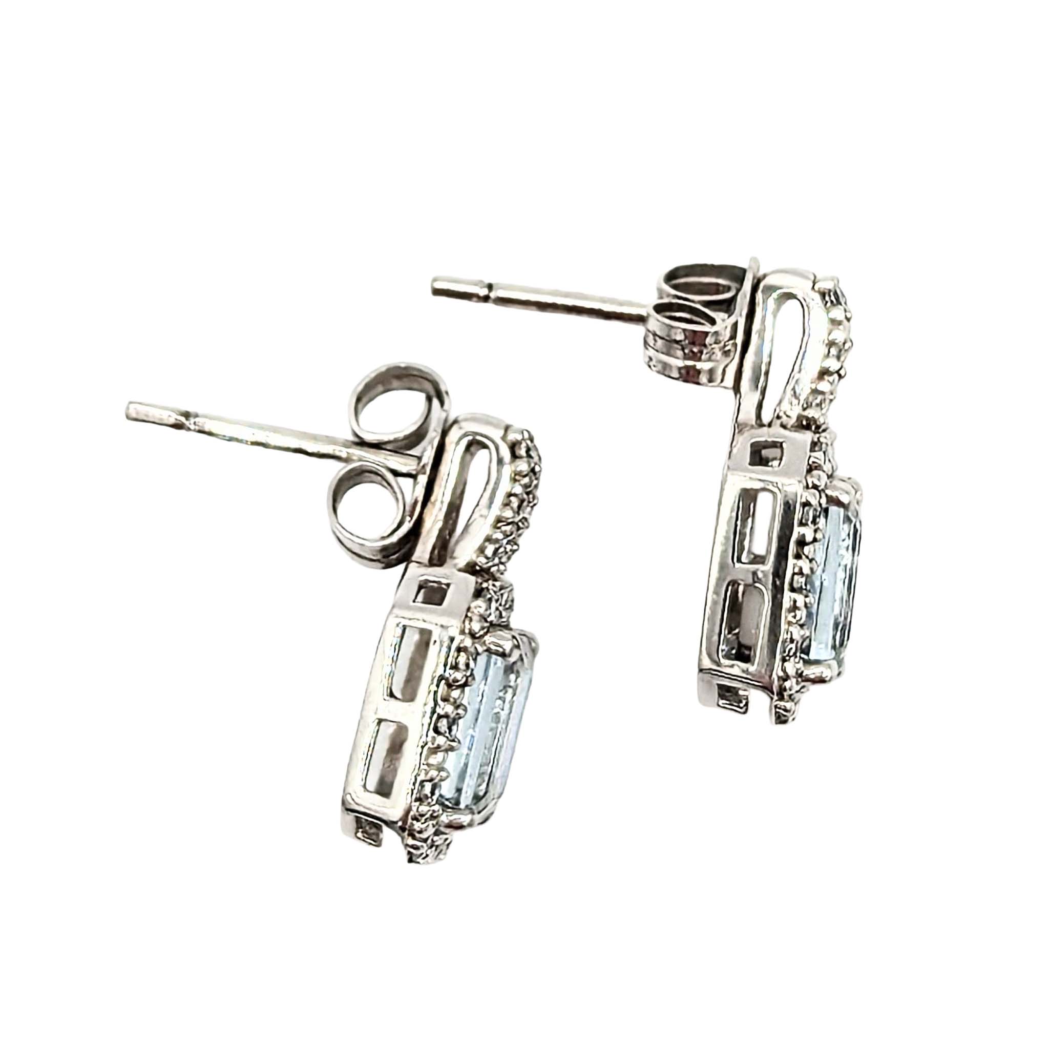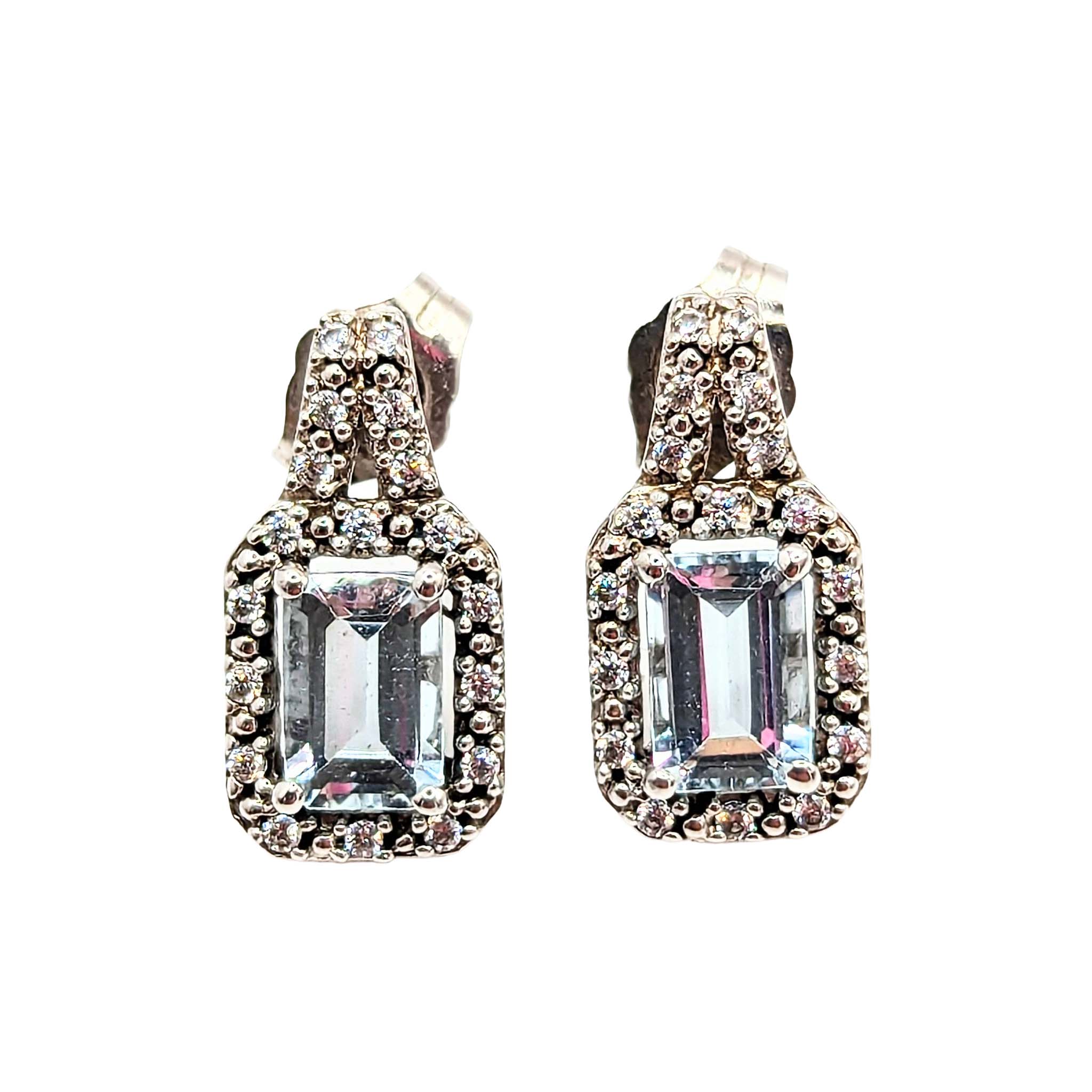 Sterling Silver Aquamarine CZ Stud Earrings Signed JH .925 2.1g