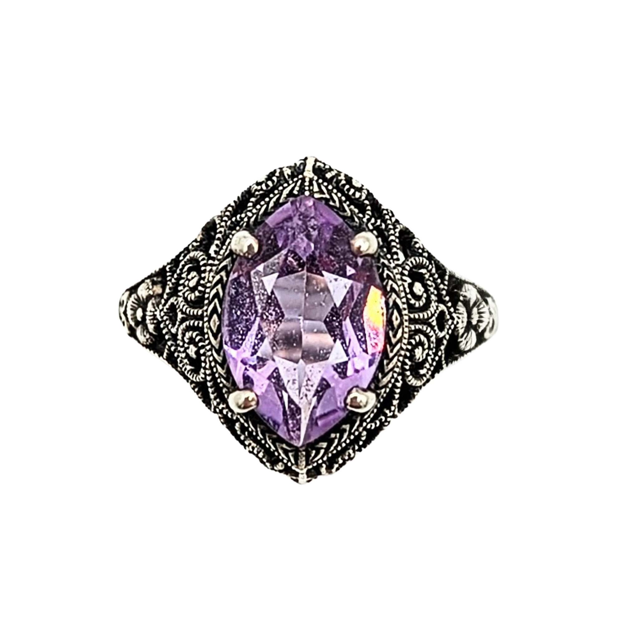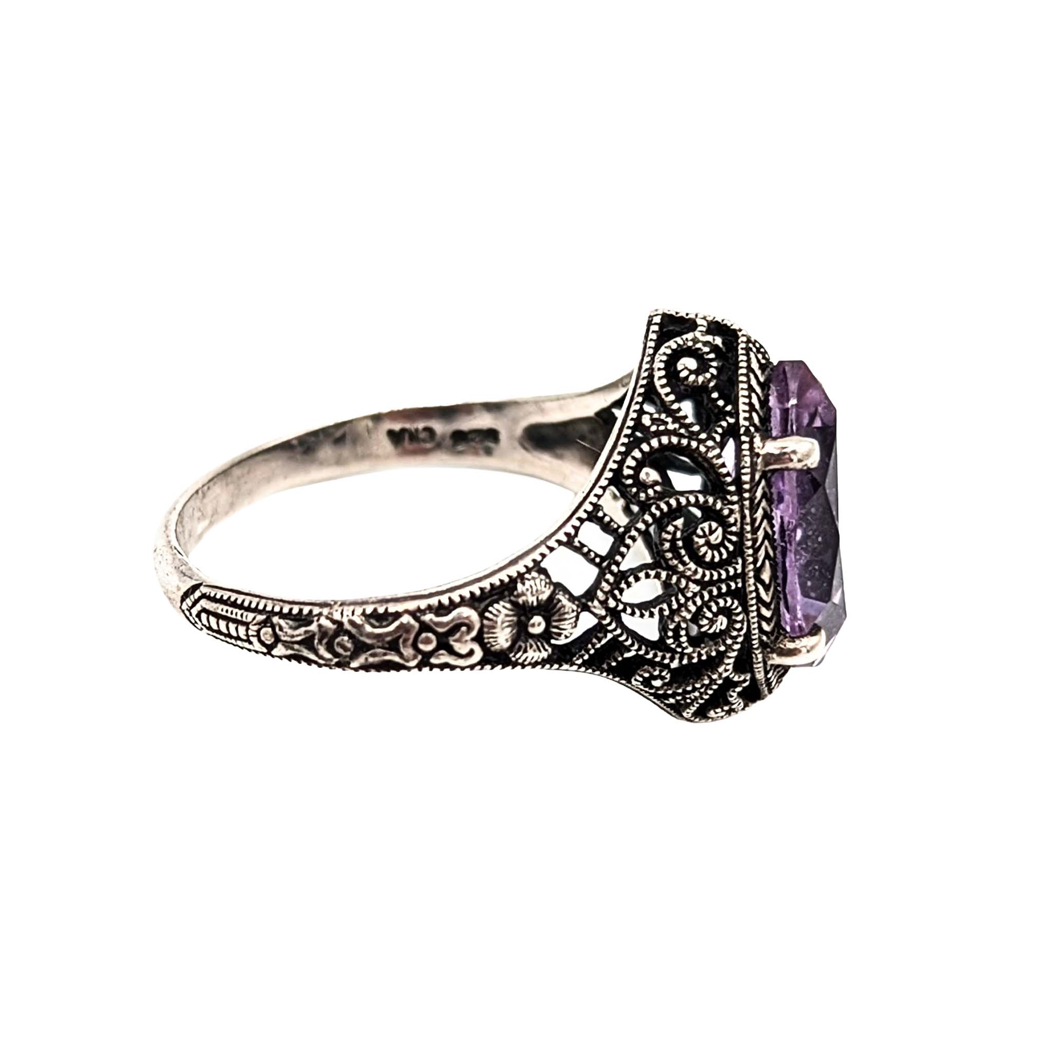 Sterling Silver Amethyst Filigree Ring Signed CNA .925 Size 8.75 3.5g