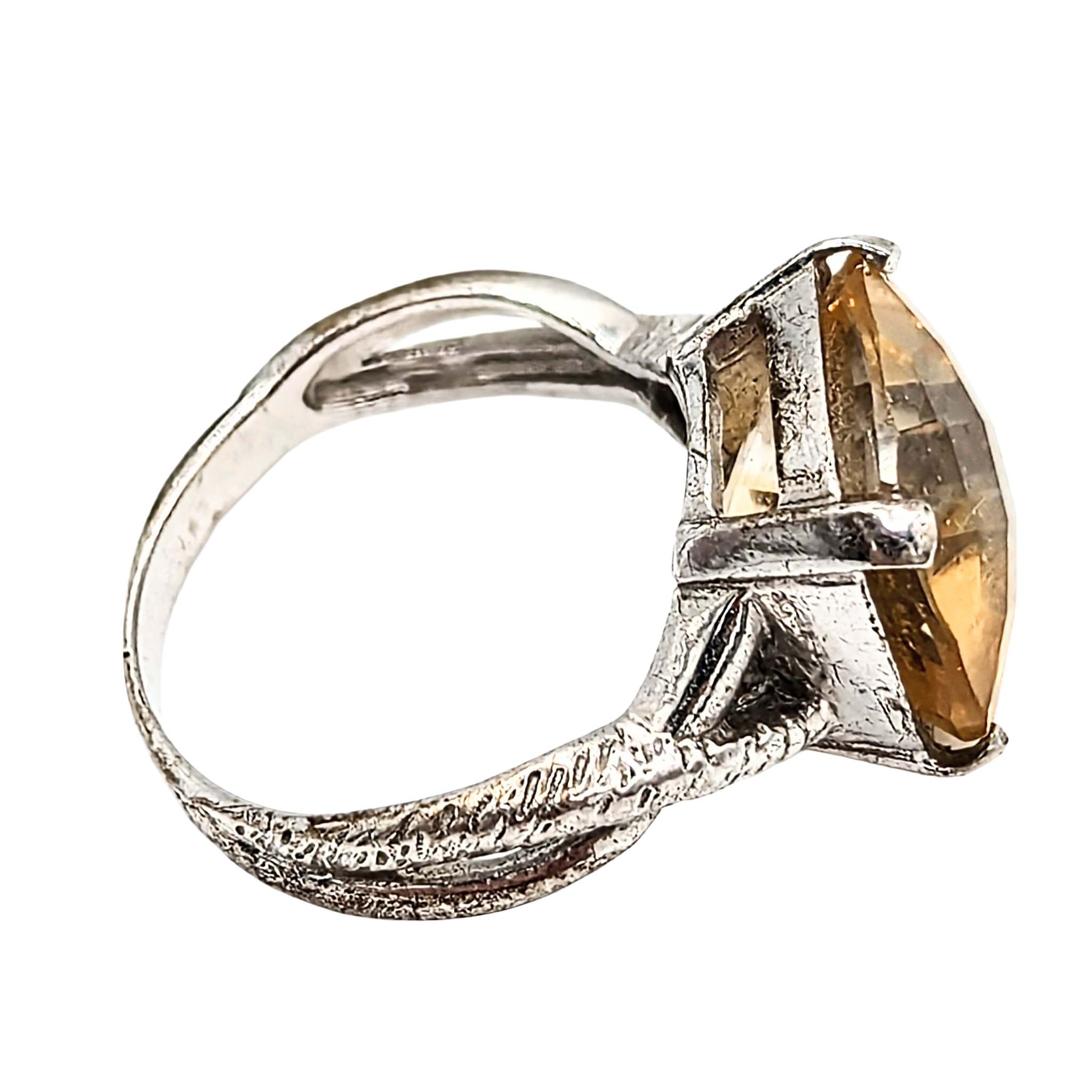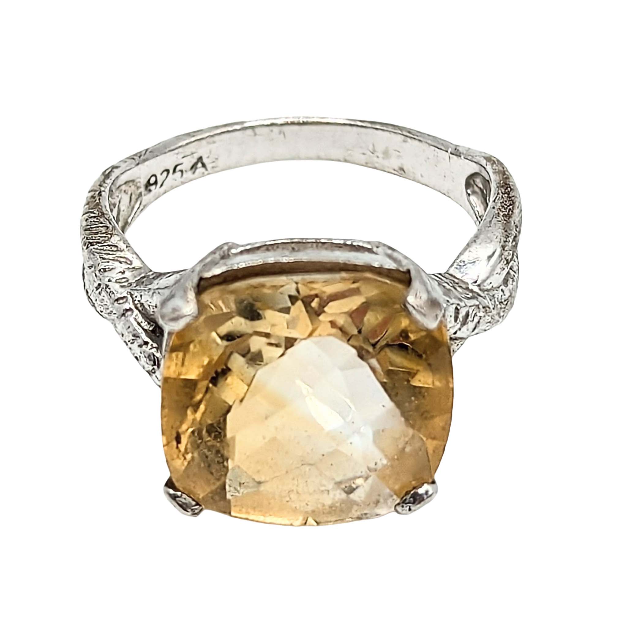 Sterling Silver Citrine Cushion Cut RIng SIgned A Size 5.25 4.5g