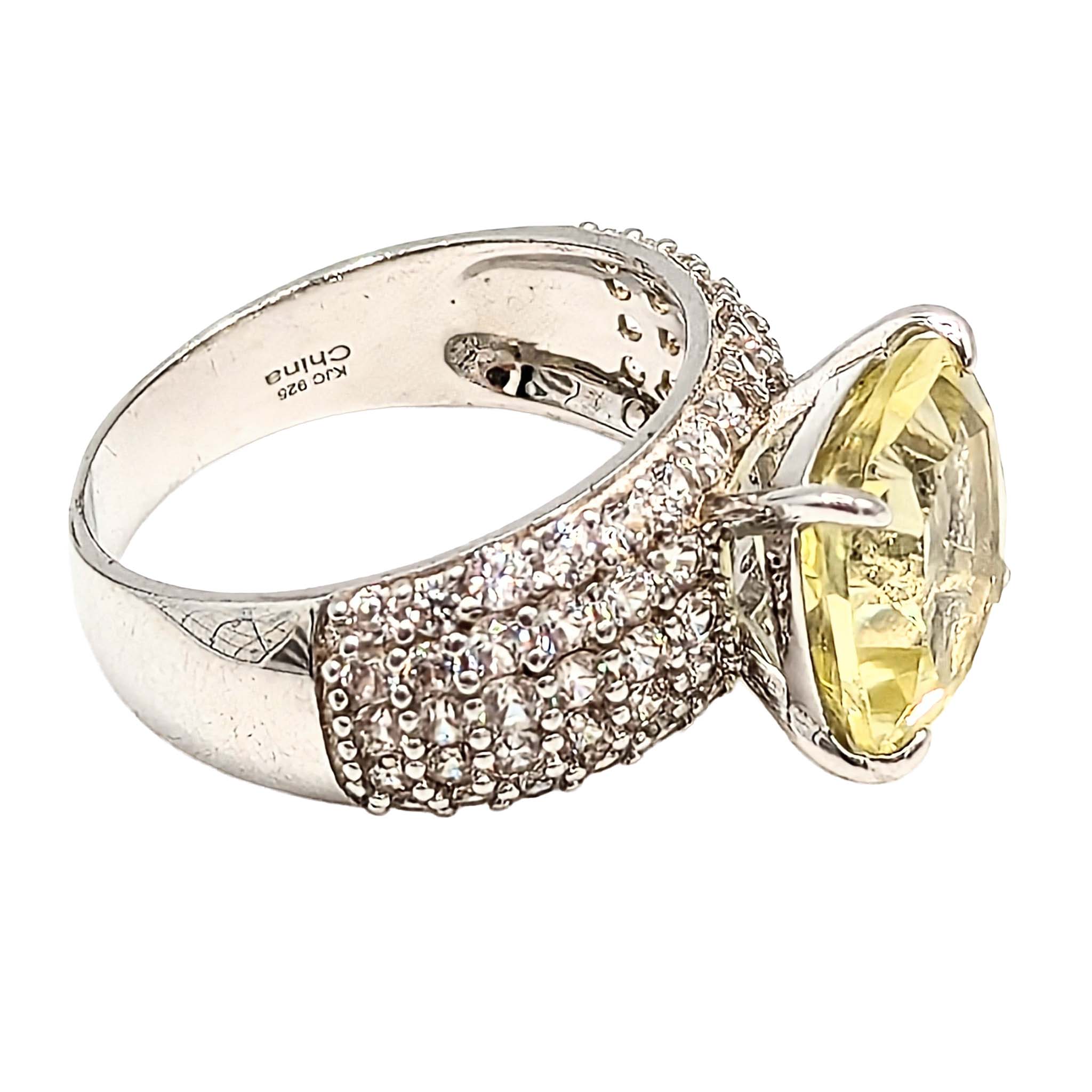 Sterling SIlver Citrine White Topaz Pave Ring Signed KJC Size 9.5 7.2g