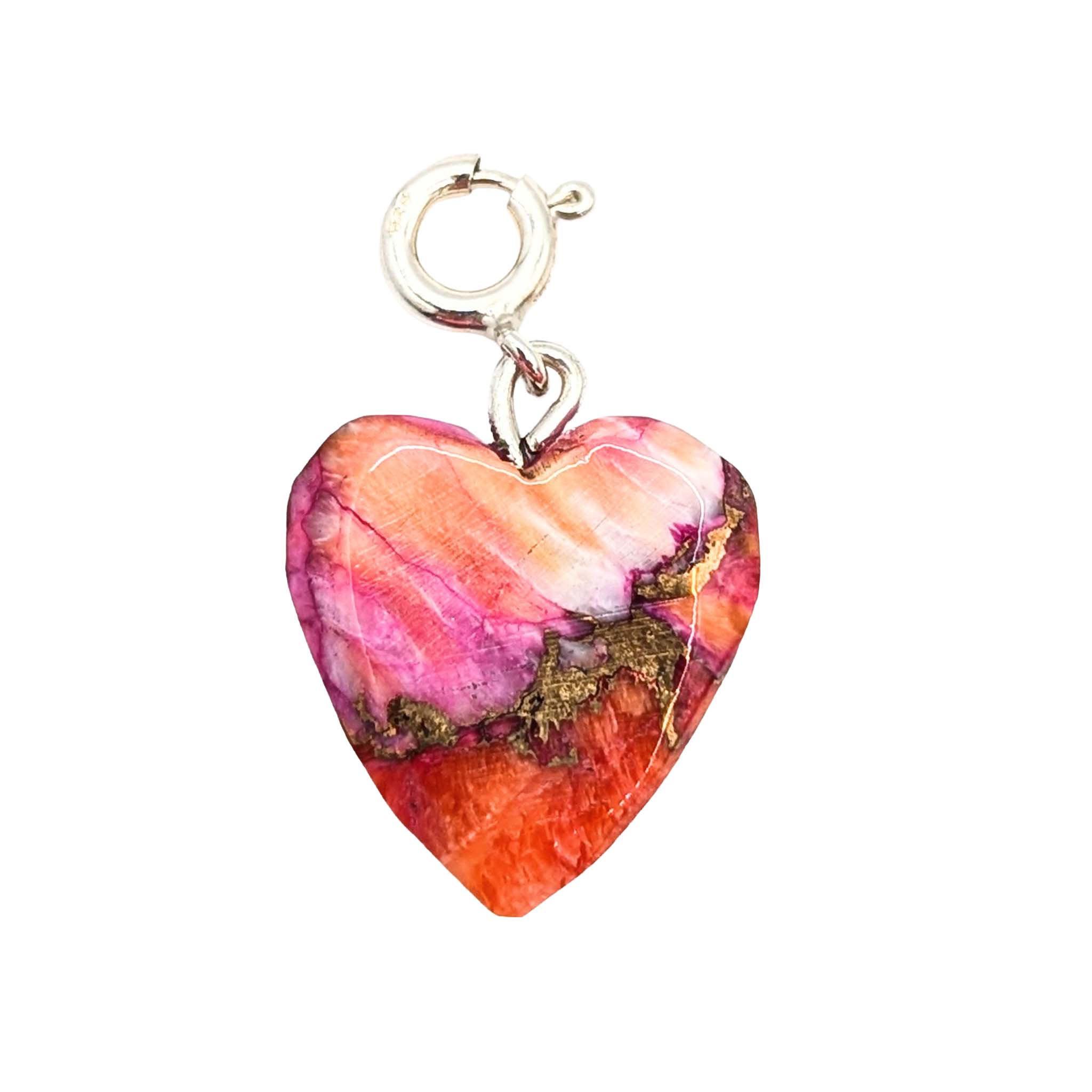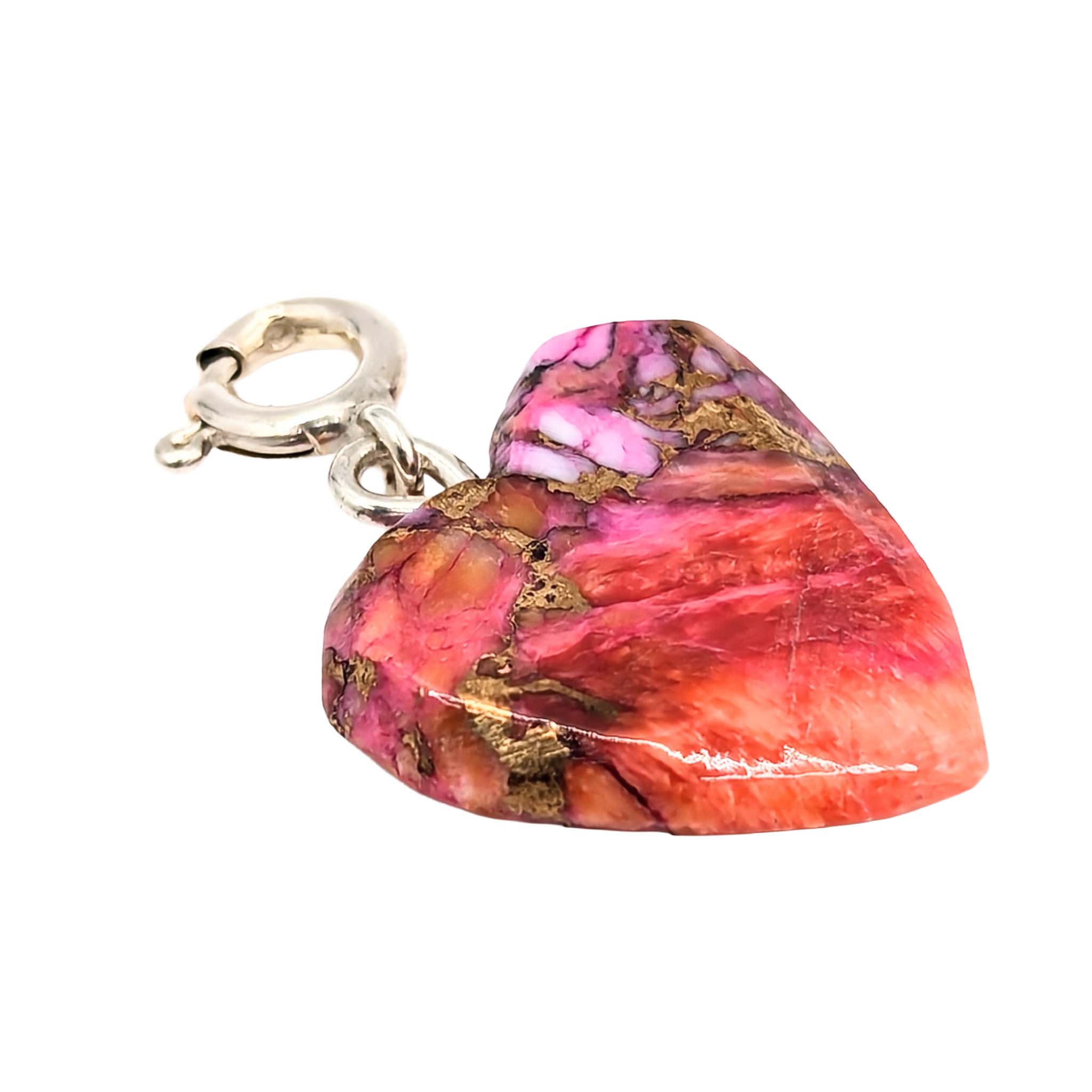 Native Hand Carved Pink Dhalia Turquoise Sterling Silver Heart Charm1.8g
