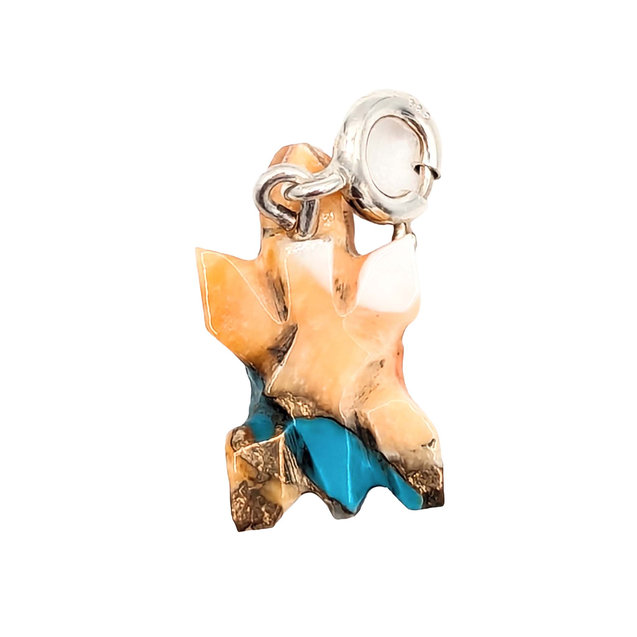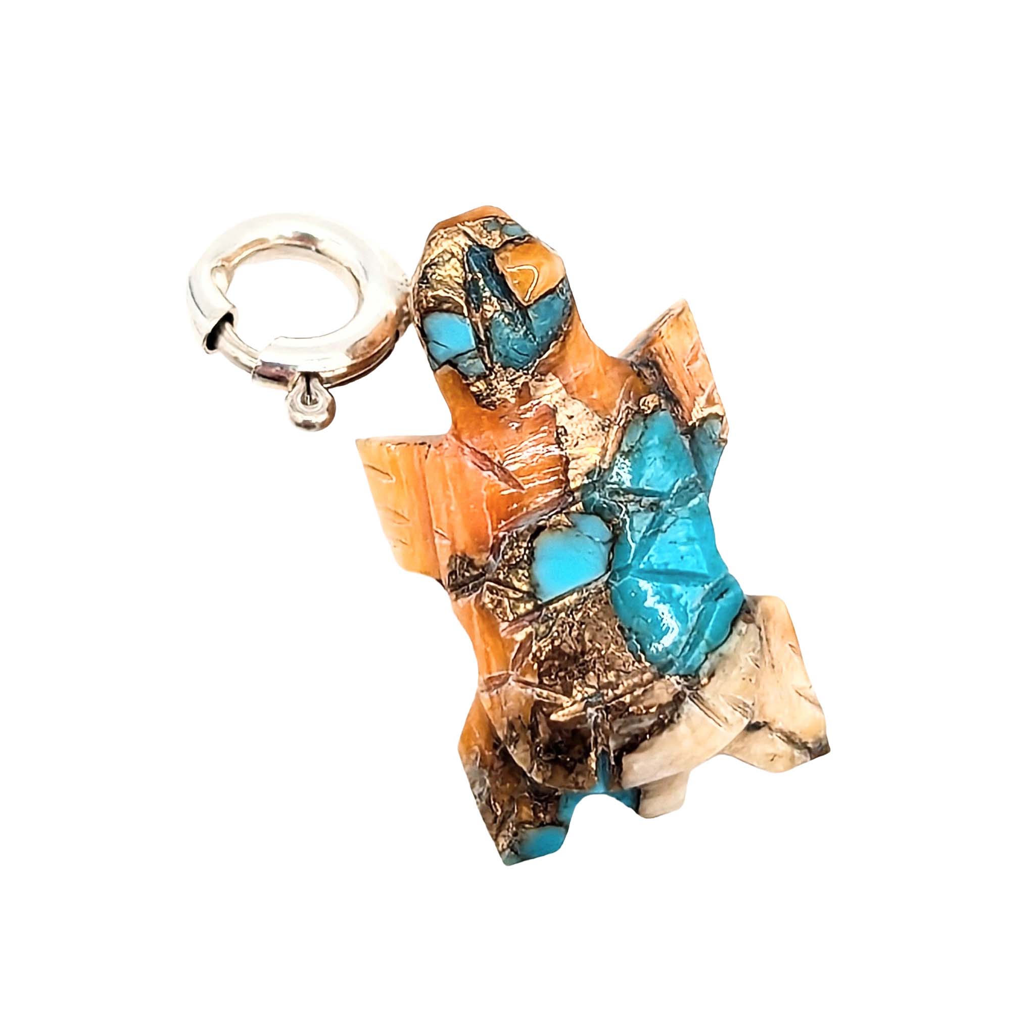 Native Hand Carved Spiny Mojave Turquoise Sterling Silver Turtle Charm